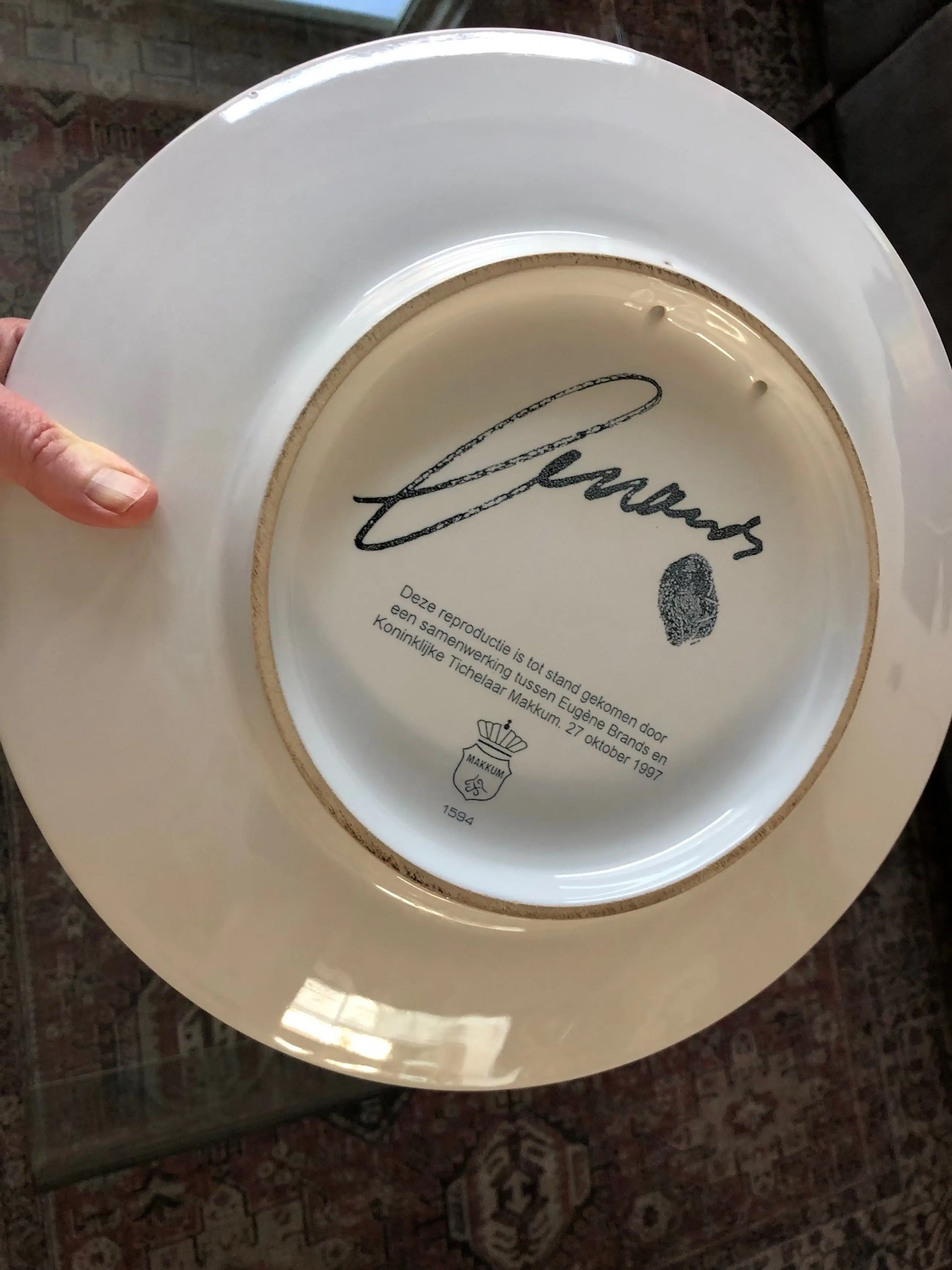 sierbord reproductie tot stand gekomen door een samenwerking tussen Eugene Brands en Koninklijke Tichelaar Makkum 27 oktober 1997 Op de foto staan er twee. Hiervan wil ik er 1 verkopen