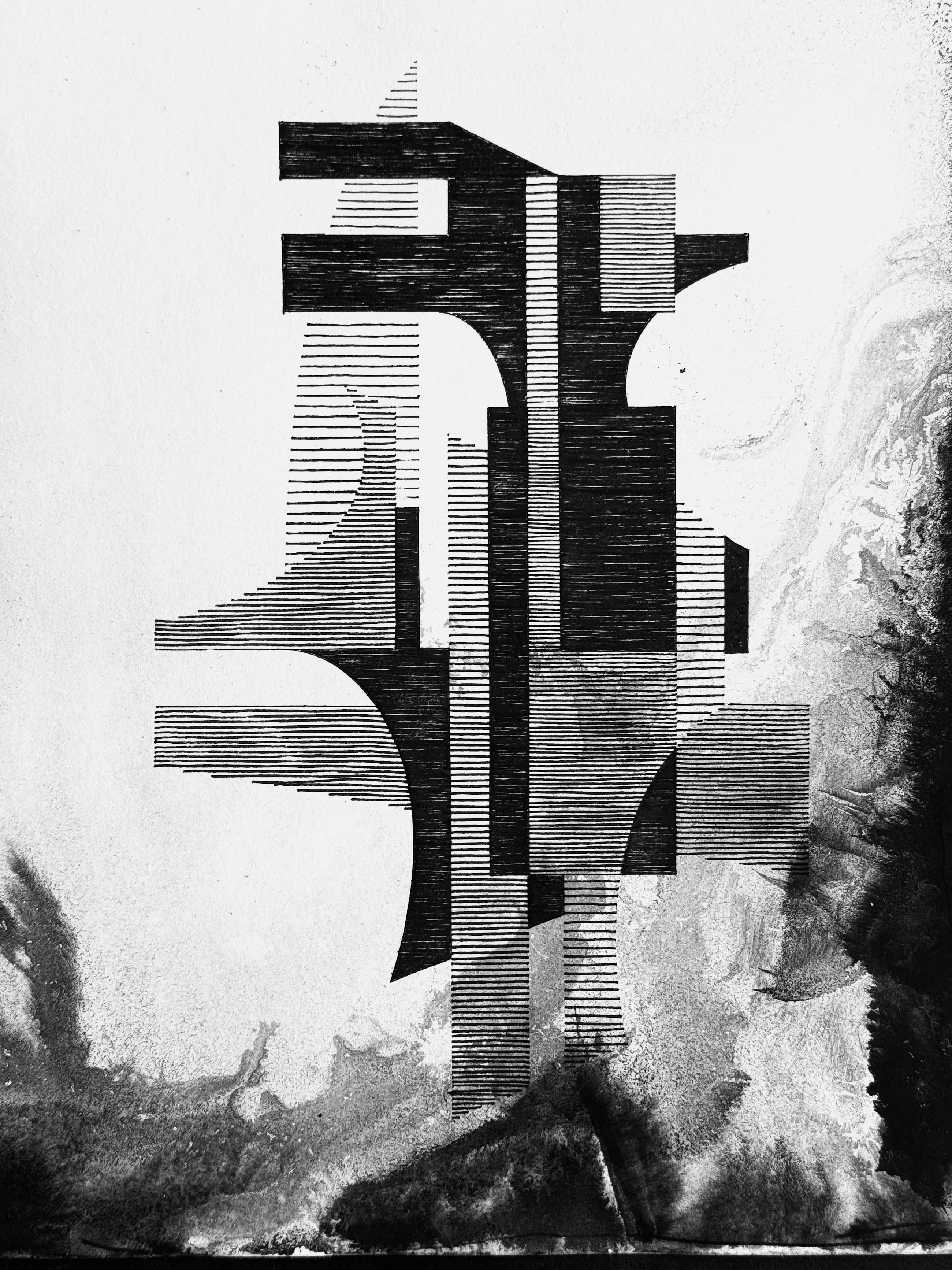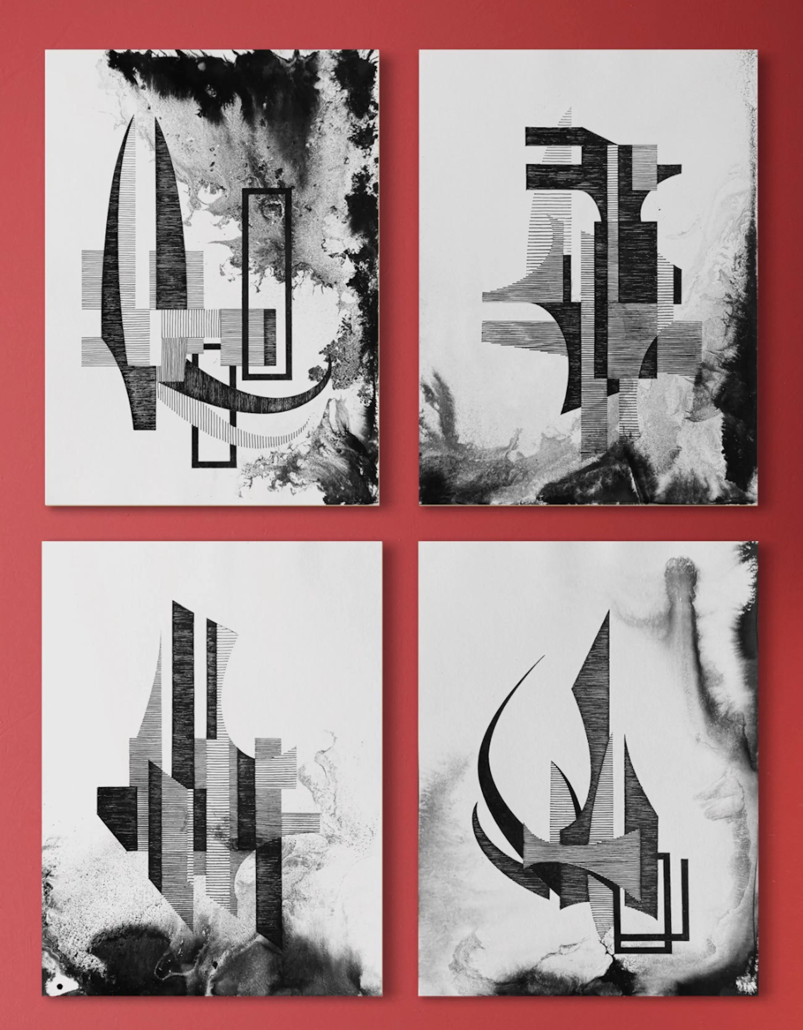 Ik bied u een prachtige serie van 4 zeldzame abstracte geometrische composities in inkt aan van de kunstenaar Eugène Eechaut (1928-2019)