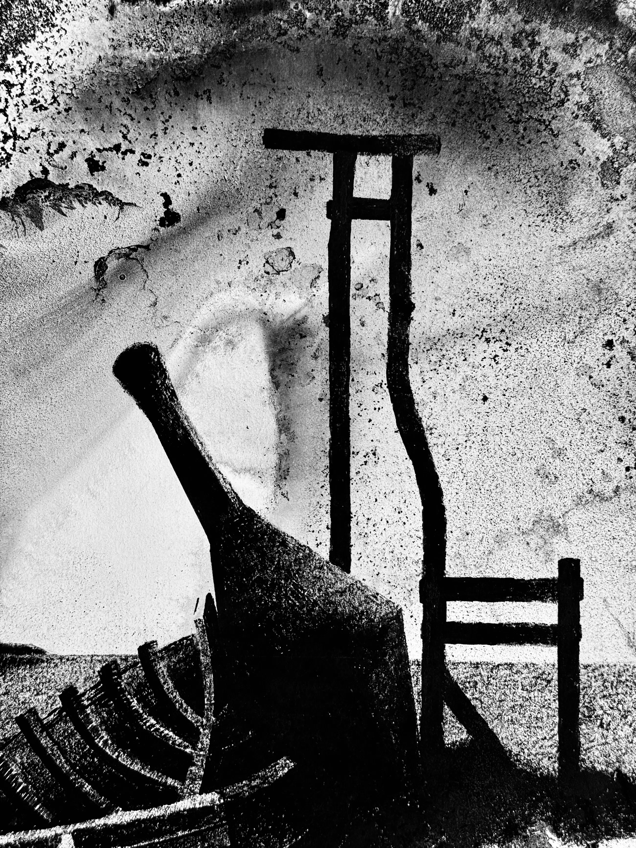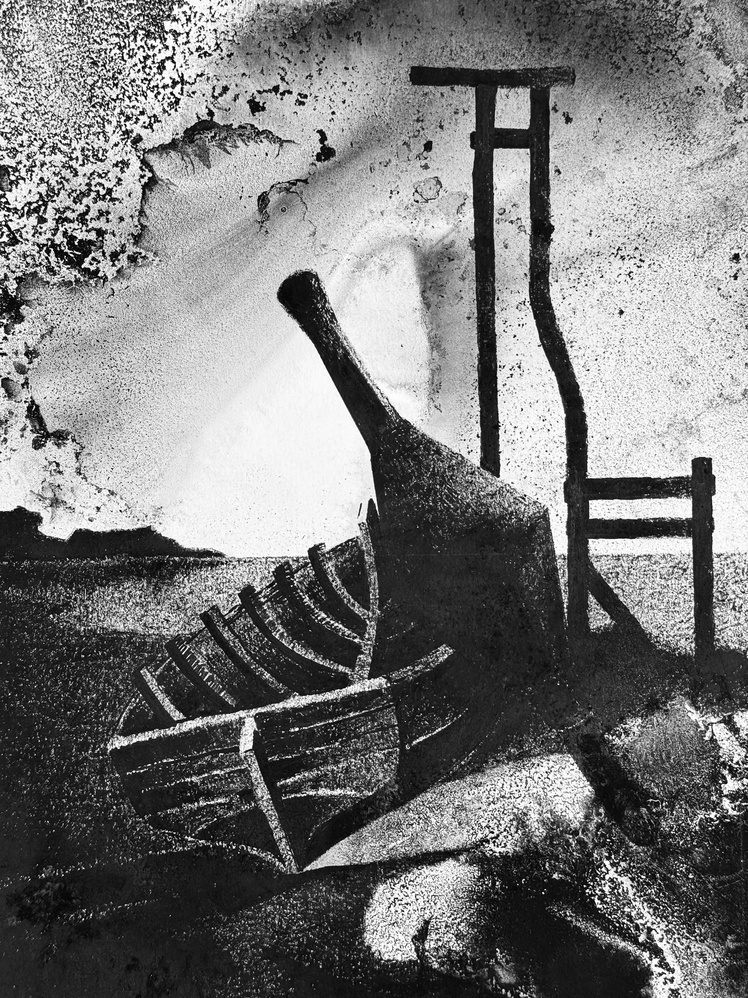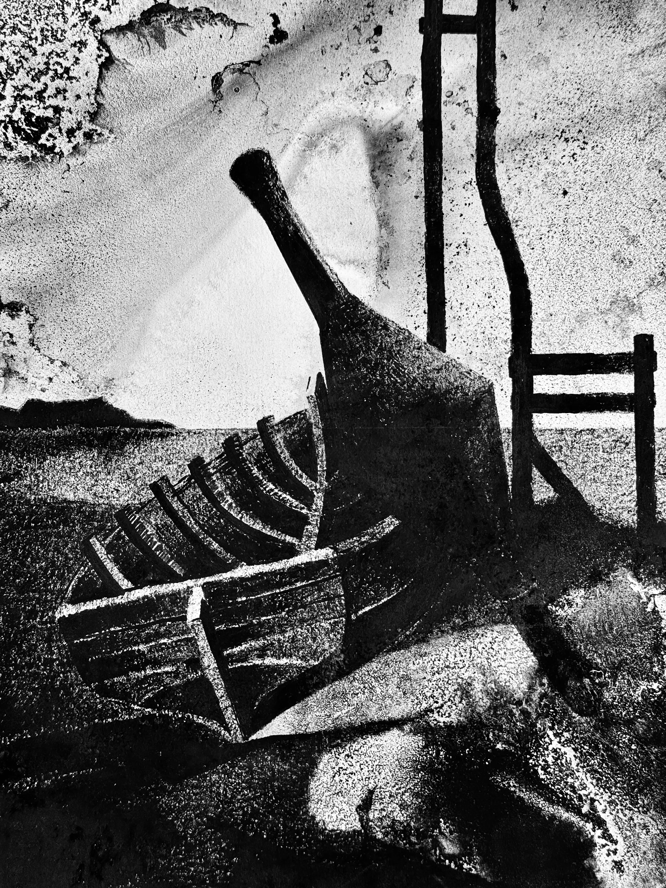 Prachtig schilderij van een gestrande boot in de haven, gedateerd 1990, door de kunstenaar Eugène Eechaut (1928-2019)