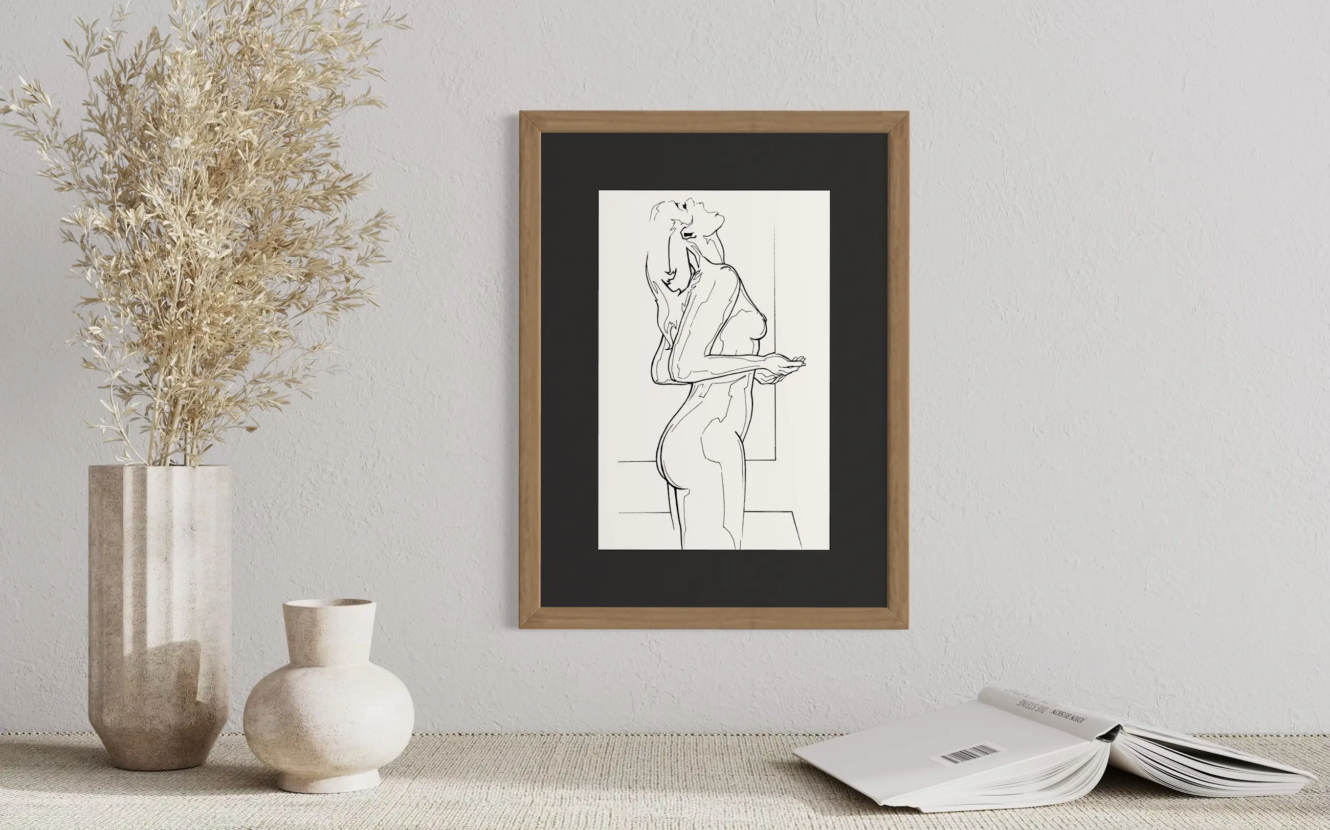 Wordt verkocht met een moderne zwarte mat en een eenvoudig frame