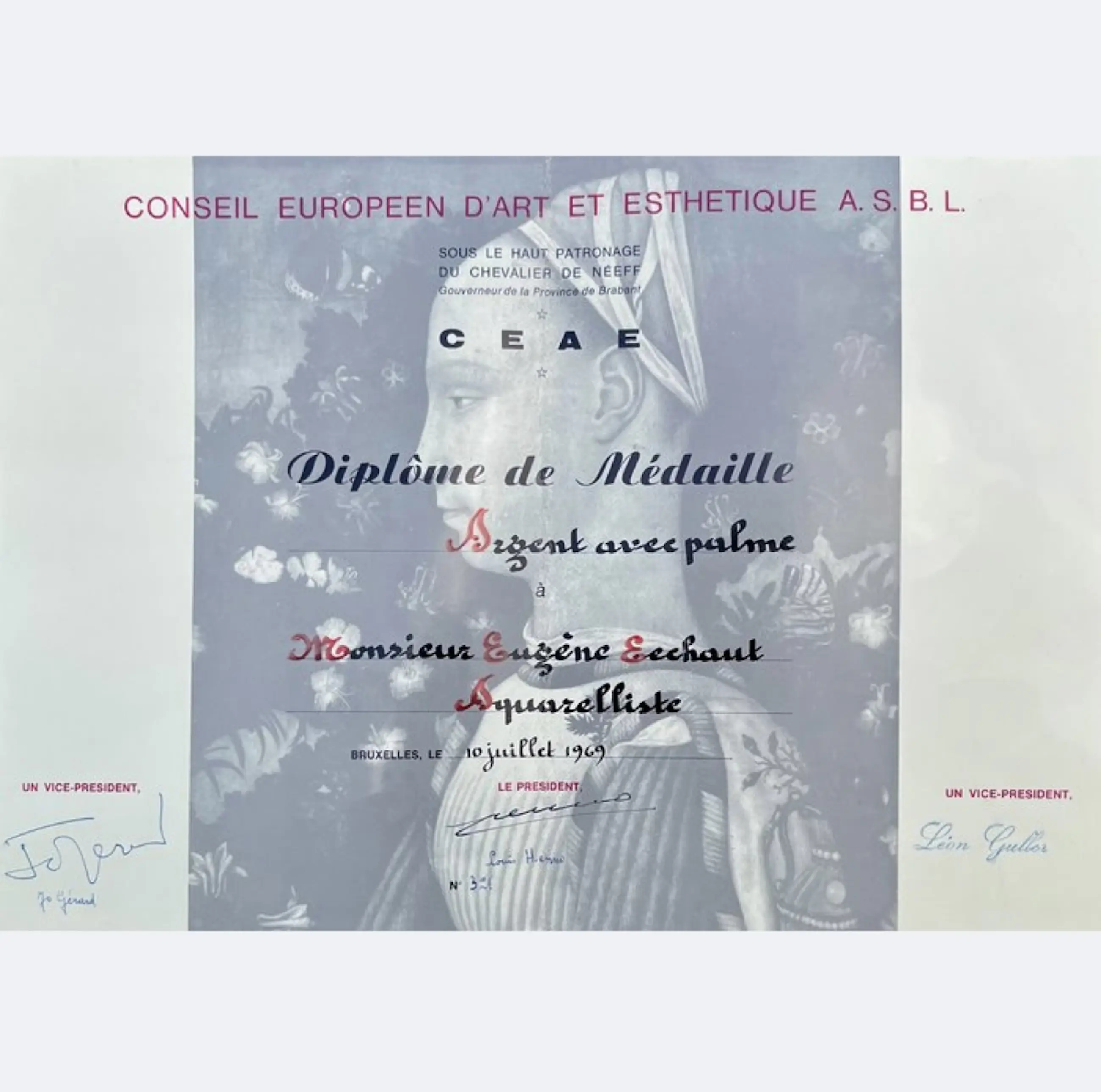 Eechauts artistieke reis begon erkenning te krijgen in 1958, toen hij zijn eerste onderscheidingen ontving van het "Europees Centrum voor Kunst en Esthetiek". Vanaf 1968 werkte hij actief samen met de Tamara Pfeiffer Gallery, waar hij zijn werk in de jaren 60 en 70 tentoonstelde. Aanvankelijk gecategoriseerd als "Fantastische Kunst", onderscheidt zijn stijl zich door elegantie en finesse. Zijn fascinerende kleurgebruik versterkt niet alleen zijn onderwerpen, maar trekt de kijker ook mee in hun mysterieuze aantrekkingskracht.
