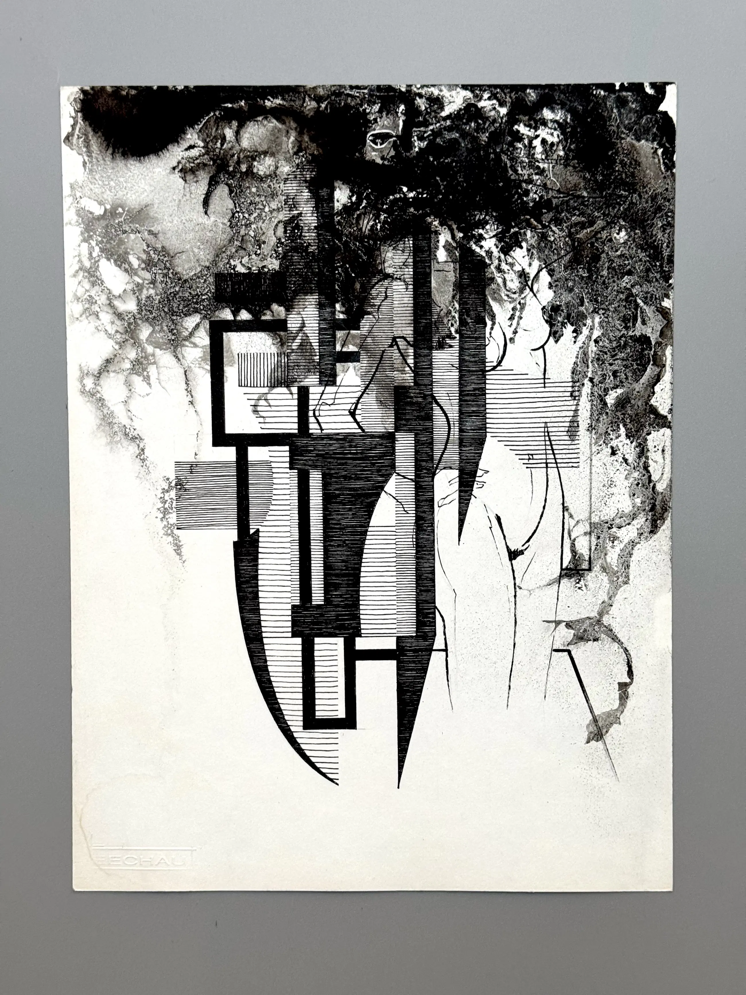 Eechaut ontwikkelde verschillende onderscheidende artistieke stijlen, waaronder unieke inkttechnieken en een herkenbaar kleurenpalet. Zijn werk met collages werd een integraal onderdeel van zijn creatieve expressie en vestigde zijn kenmerkende esthetiek verder. Elk van zijn stukken is voorzien van zijn authentieke kunstenaarsstempel, een bewijs van zijn originaliteit en vakmanschap.