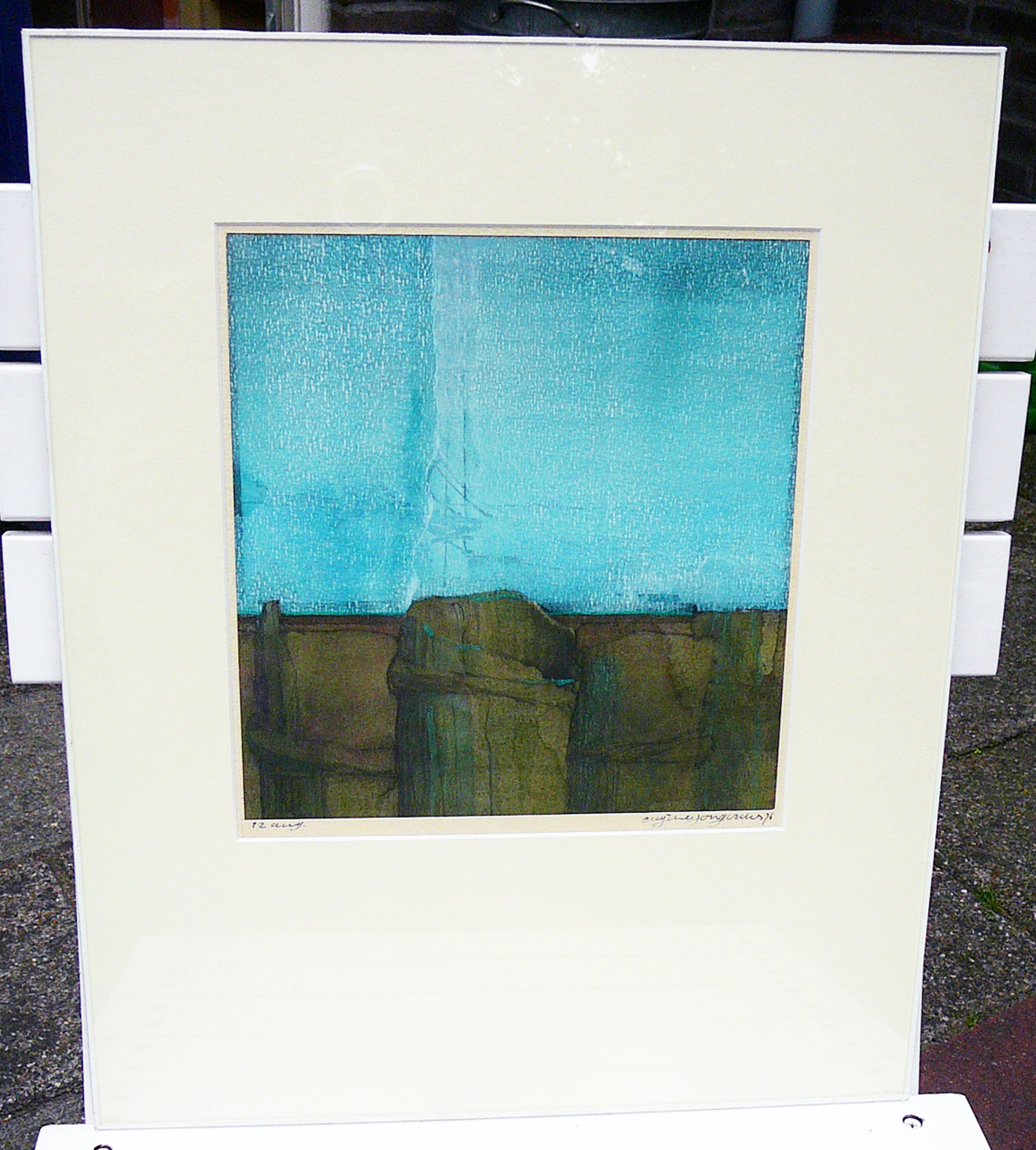 Prachtige abstracte aquarel, met potlood gesigneerd en gedateerd 12 augustus 1976. Zorgvuldig gelijst zonder rand en in staat van nieuw. Bij voorkeur af te halen in Utrecht gezien de kwetsbaarheid.