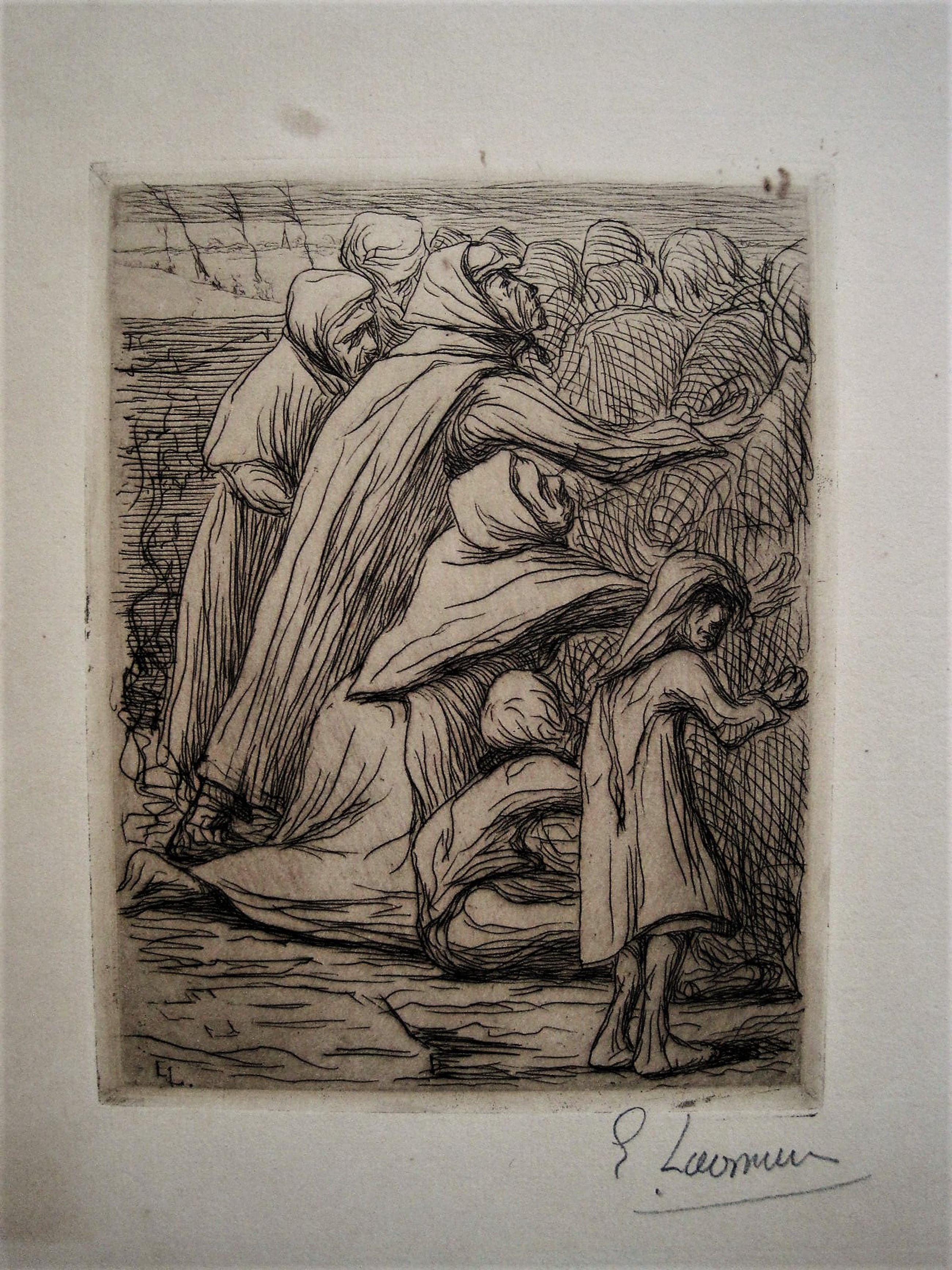 De kunst haalde Laermans uit zijn isolement, hoewel conversatie lastig bleef. Hij was bevriend met Sander Pierron en was een tijdlang lid van de Brusselse kunstenaarsvereniging La Patte de Dindon. In 1922 werd hij lid van de Koninklijke Vlaamse Academie van België voor Wetenschappen en Kunsten. Ondanks een oogoperatie begon op zijn 45e ook zijn zicht achteruit te gaan, tot hij zich in 1924 genoodzaakt zag te stoppen met schilderen. Het volgende jaar kreeg hij een afscheidstentoonstelling in de Galerie Georges Giroux. Hij zei hierover: "Ik ben moreel al een hele tijd dood, ik ben Laermans niet meer, ik kan niet meer schilderen". In 1927, het jaar waarin zijn moeder stierf, huldigde koning Albert I hem samen met James Ensor. Laermans kreeg de titel van baron en nam als devies: Gelukkig hij die kan zien. Hij werd volledig blind en begon te vereenzamen. In 1940 overleed hij, totaal vergeten. Werk Alhoewel veel van zijn tijdgenoten schilderden in de nieuwe stijl van toen, het impressionisme, bleef Laermans zichzelf altijd trouw. Met zijn kleurvlakken en stuwende strepen ging hij richting expressionisme. Inhoudelijk kan men zijn werk zien als een aanklacht tegen de levensomstandigheden van de lagere klassen: boeren, fabrieksarbeiders, zwervers... Vaak zijn het bruegeliaanse figuren die gebogen lopen en op de rug worden gezien. Het zijn zwijgende, geïsoleerde mensen, zelfs wanneer ze deel zijn van een compacte massa. Het schilderij De voddenrapers (zie foto) toont een scène in Sint-Jans-Molenbeek, zijn geboortedorp.