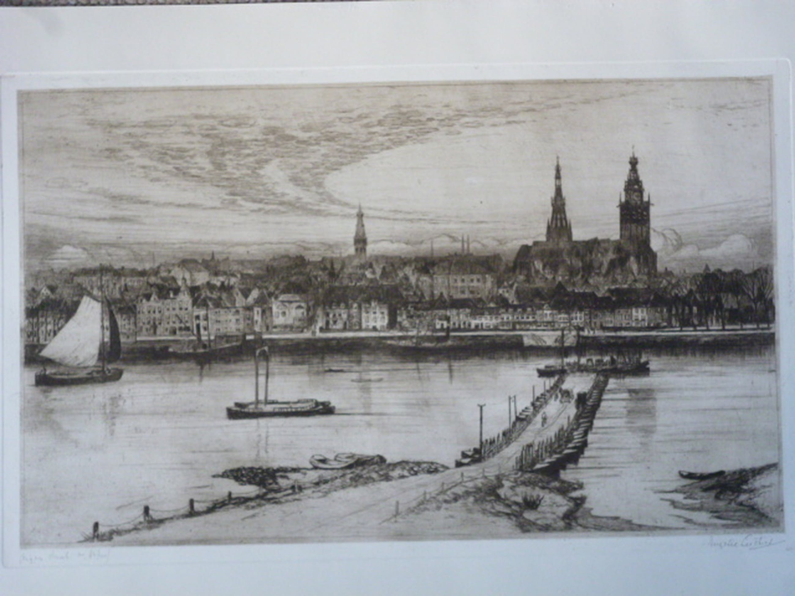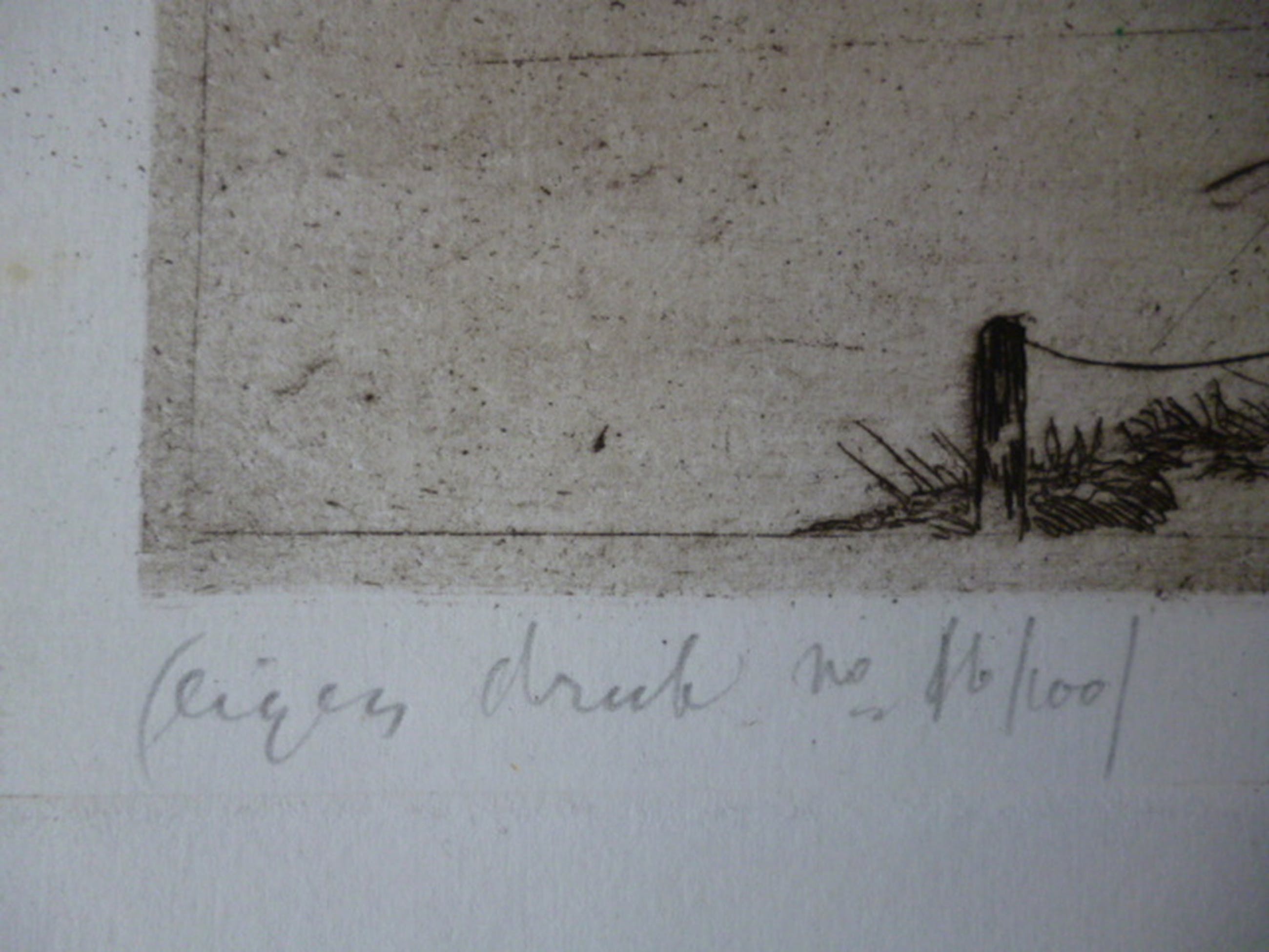 Ets uit 1920, potlood gesigneerd rechtsonder. Eigen druk en genummerd 16/100 linksonder.
