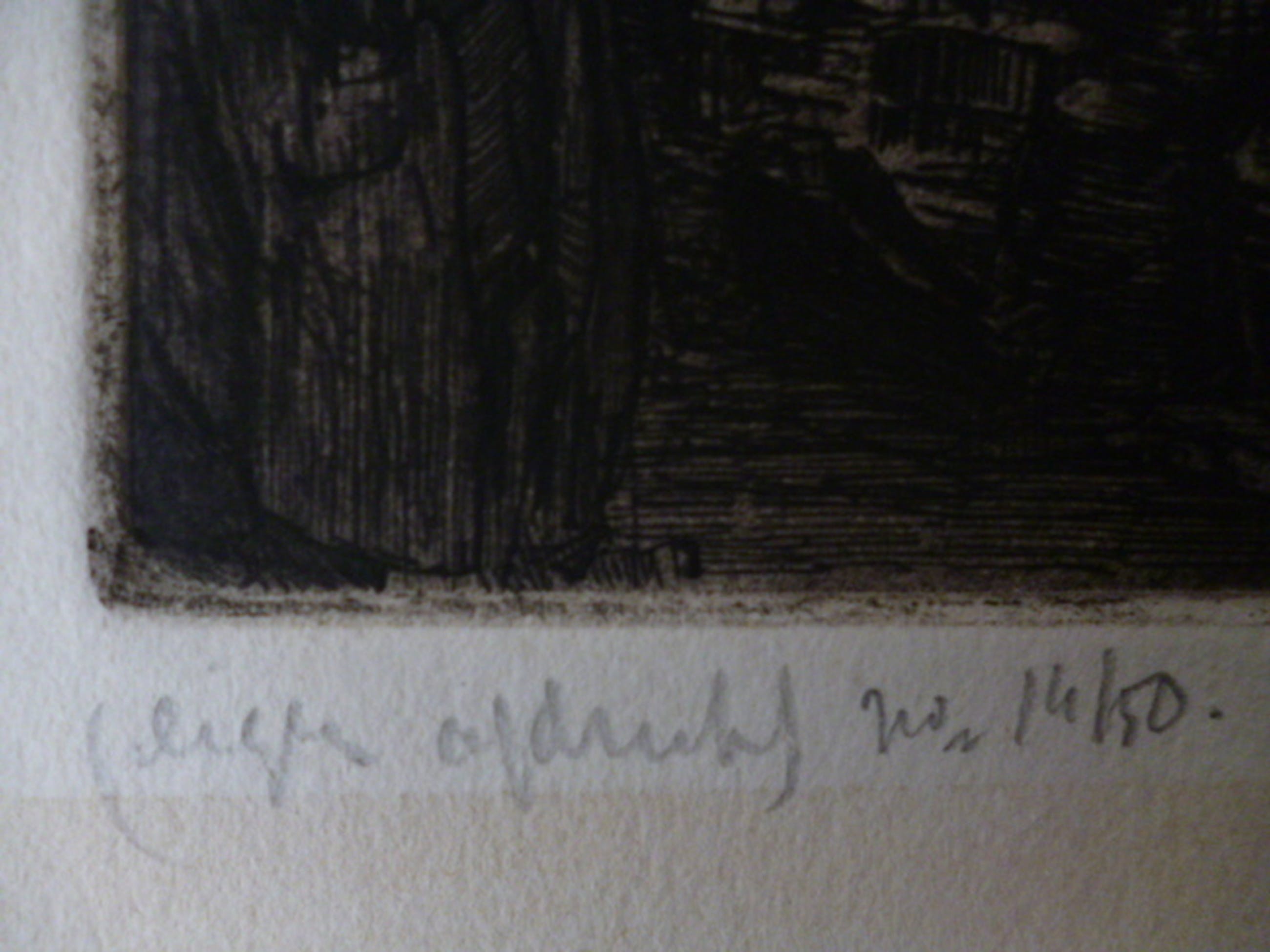 Ets uit 1917, potlood gesigneerd rechtsonder. Eigen afdruk en genummerd 14/50 linksonder.