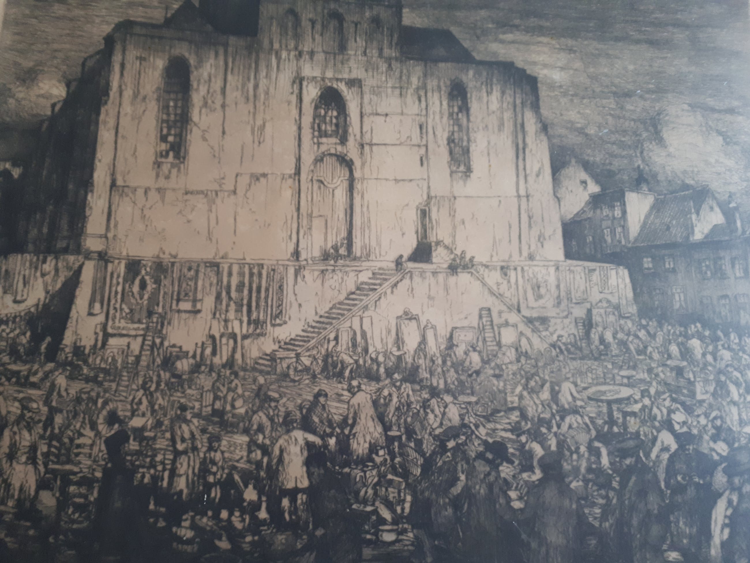 Ets van Eugene Lucker (1876-1943) Luizenmarkt voor de Stevenskerk in Nijmnegen 3/50