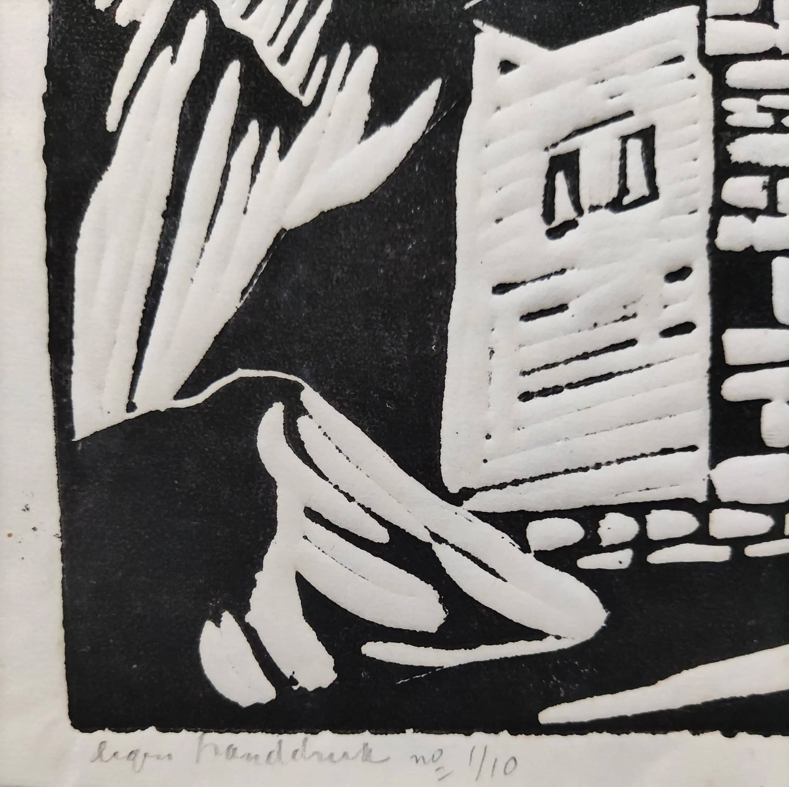 "eigen handdruk" en genummerd 1/10 linksonder.Beeldmaat 23x22 cm. Bladmaat25x29 cm. Losbladig.