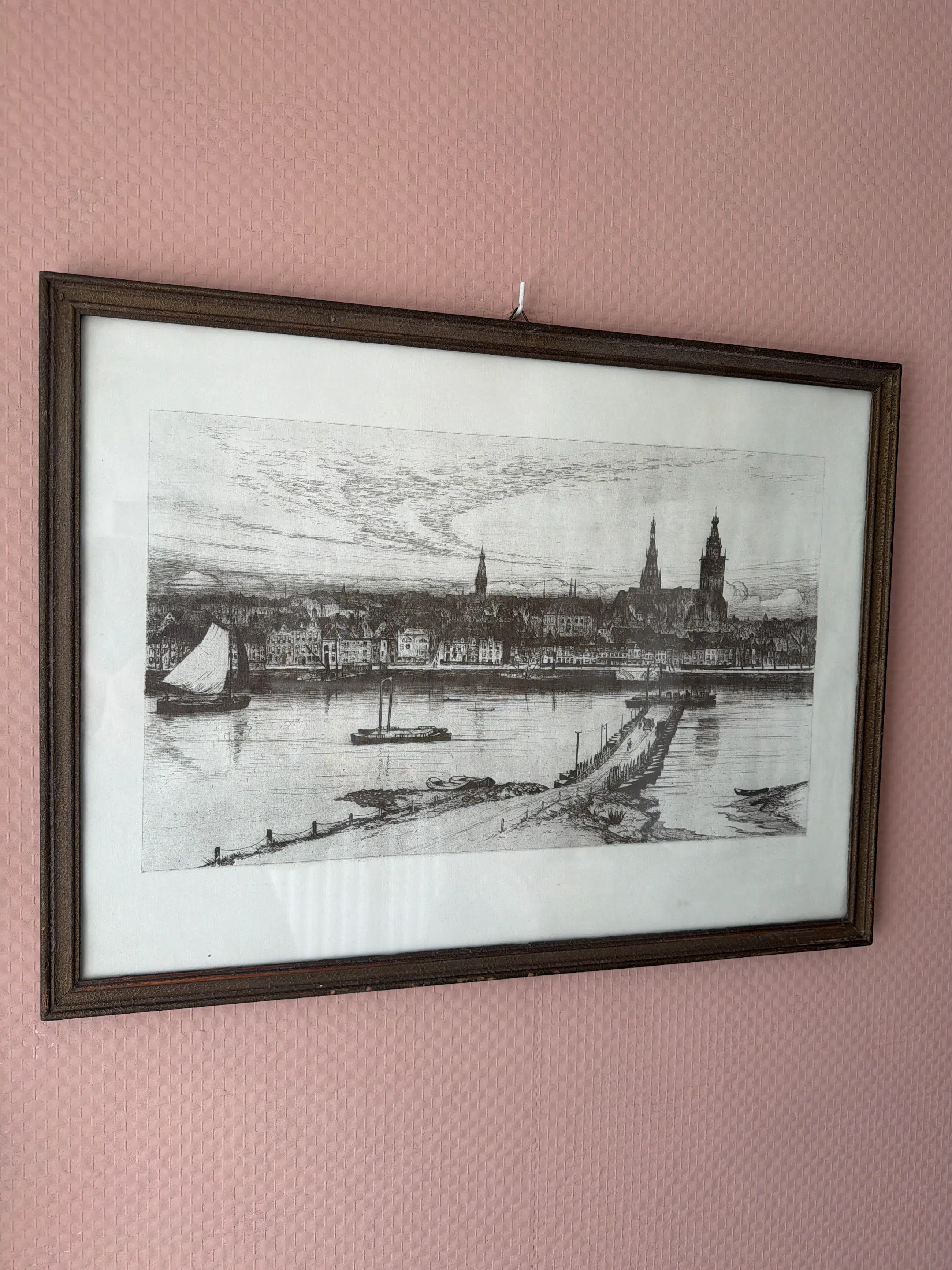 Eugene Lucker is geboren in Roermond in 1876 en overleden in Nijmegen in 1943. Hij was schilder en etser, vooral bekend om stadsgezichten en landschappen. De etsen hebben veel detail en sfeer. Het werk is gesigneerd rechts onder maar wel moeilijk zichtbaar. Het werk zelf ziet er prachtig uit.