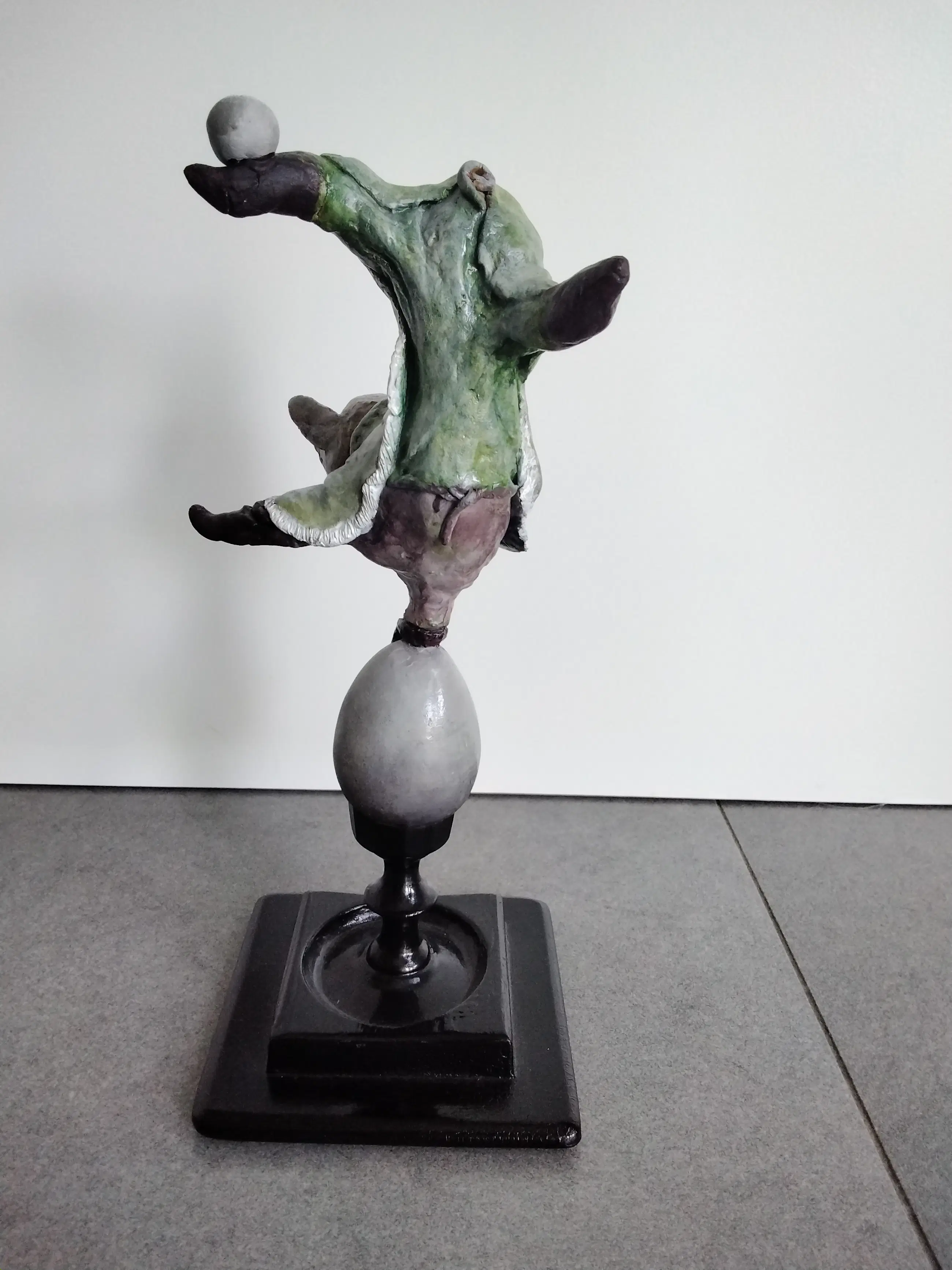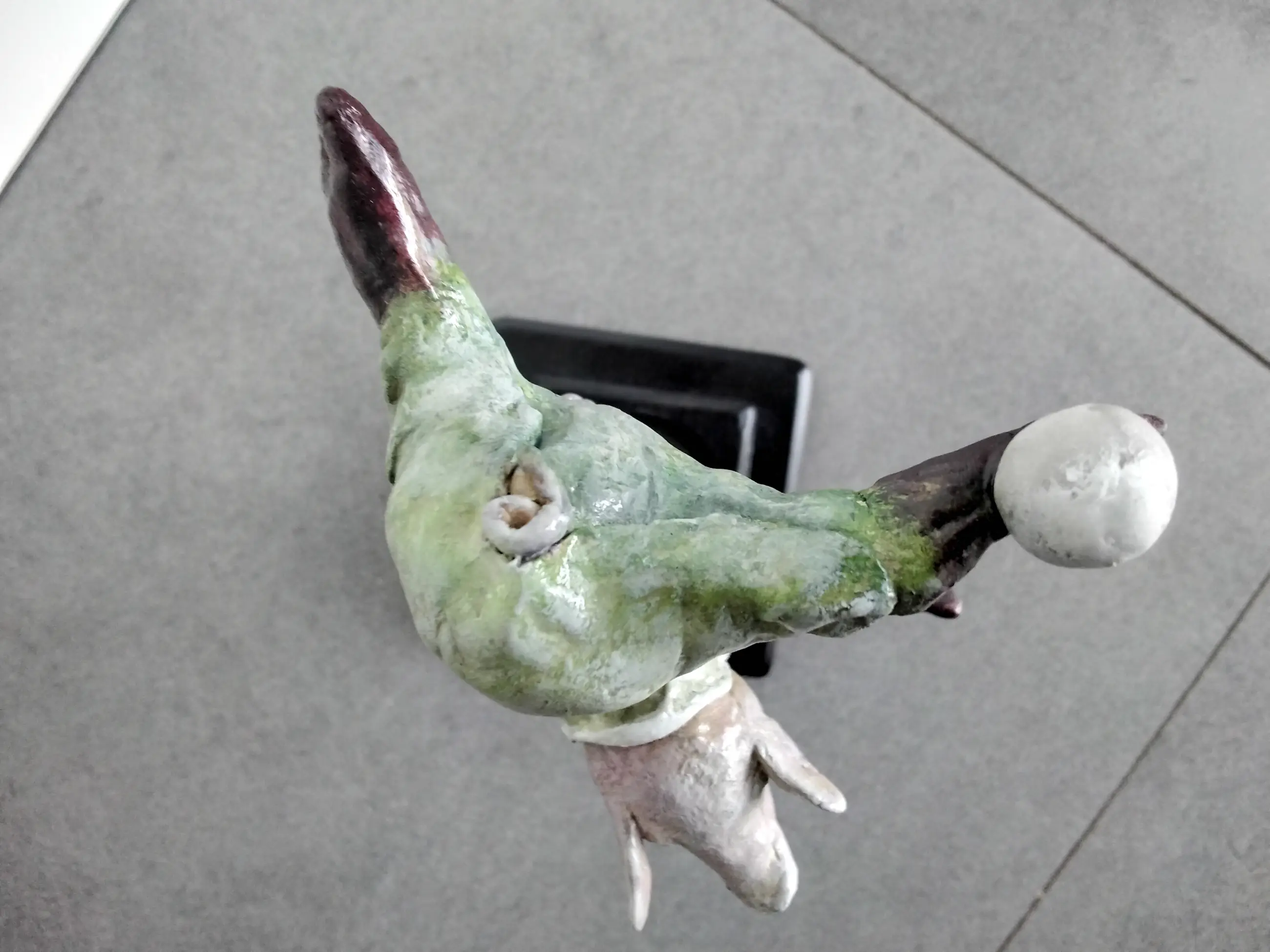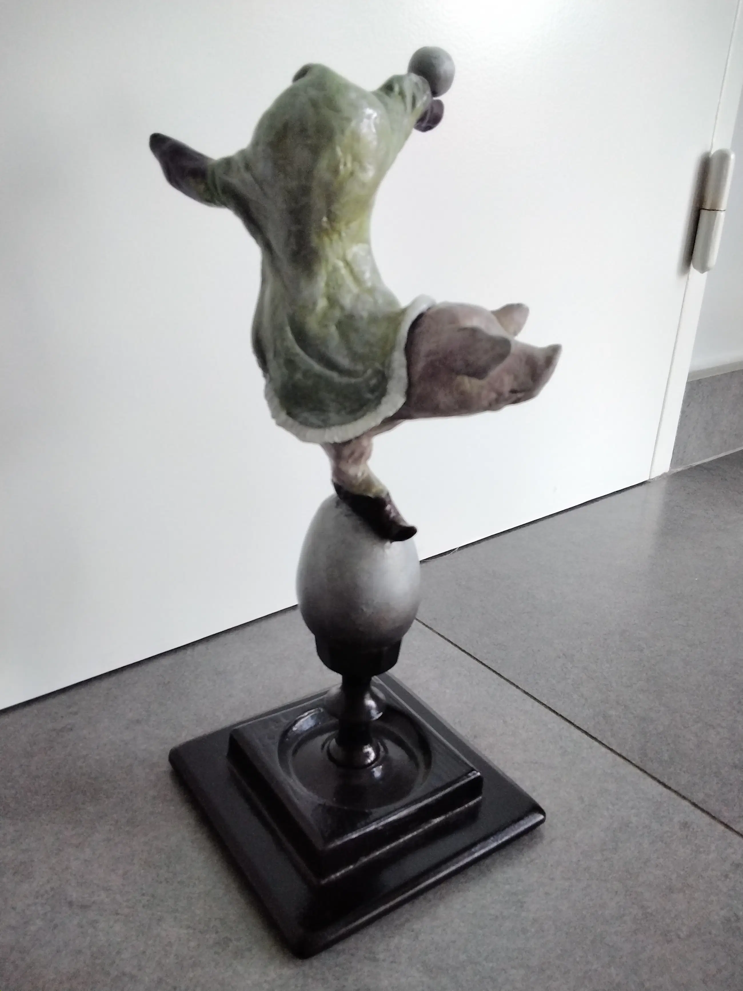 Keramiek varken met de hand gemaakt en beschilderd op een houten voet. Uniek exemplaar