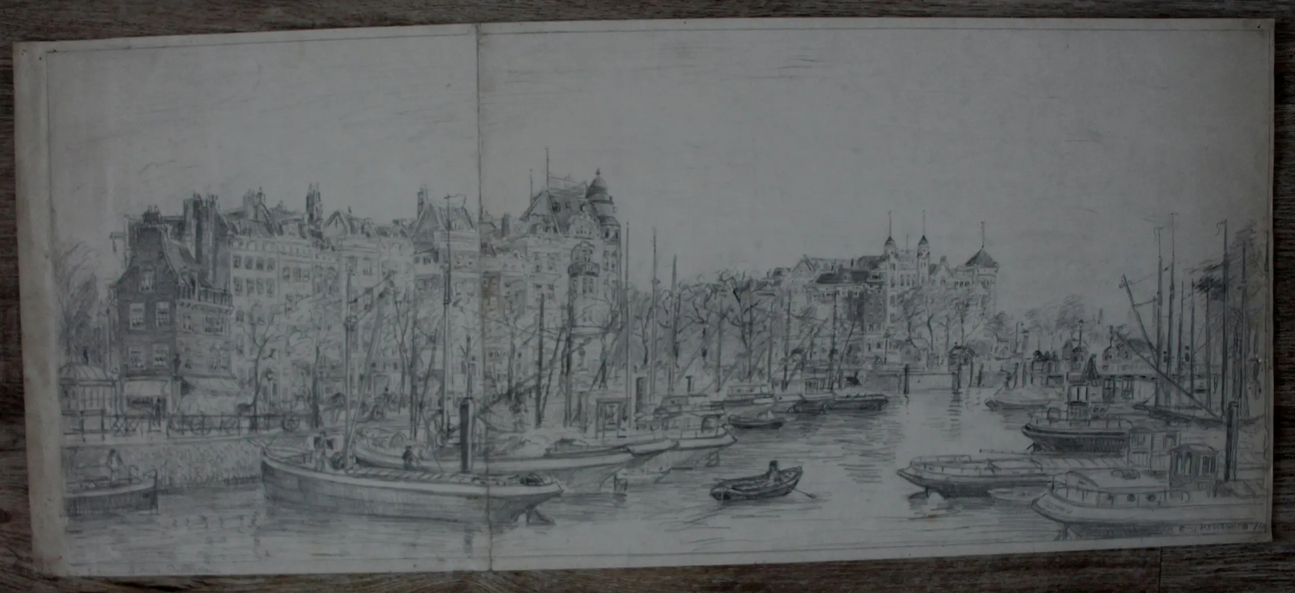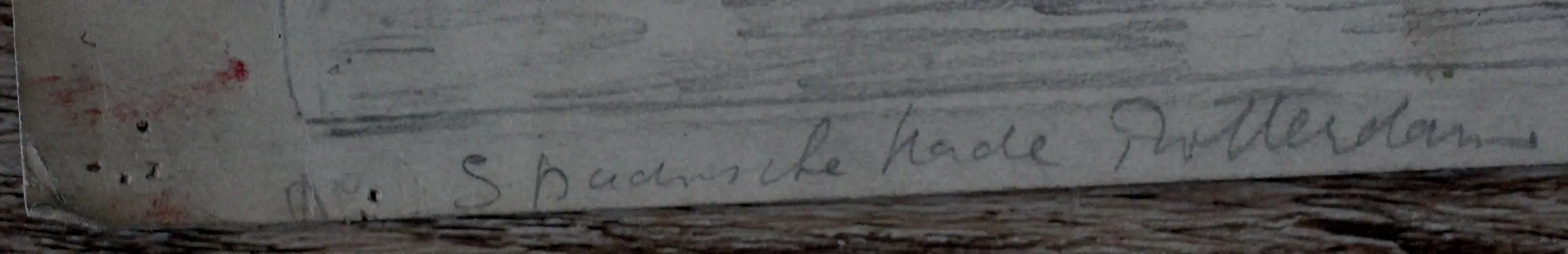 Diverse punaise gaatjes op de randen, scheurtjes en kreukels. In een werk zit een vouw, van boven naar beneden.