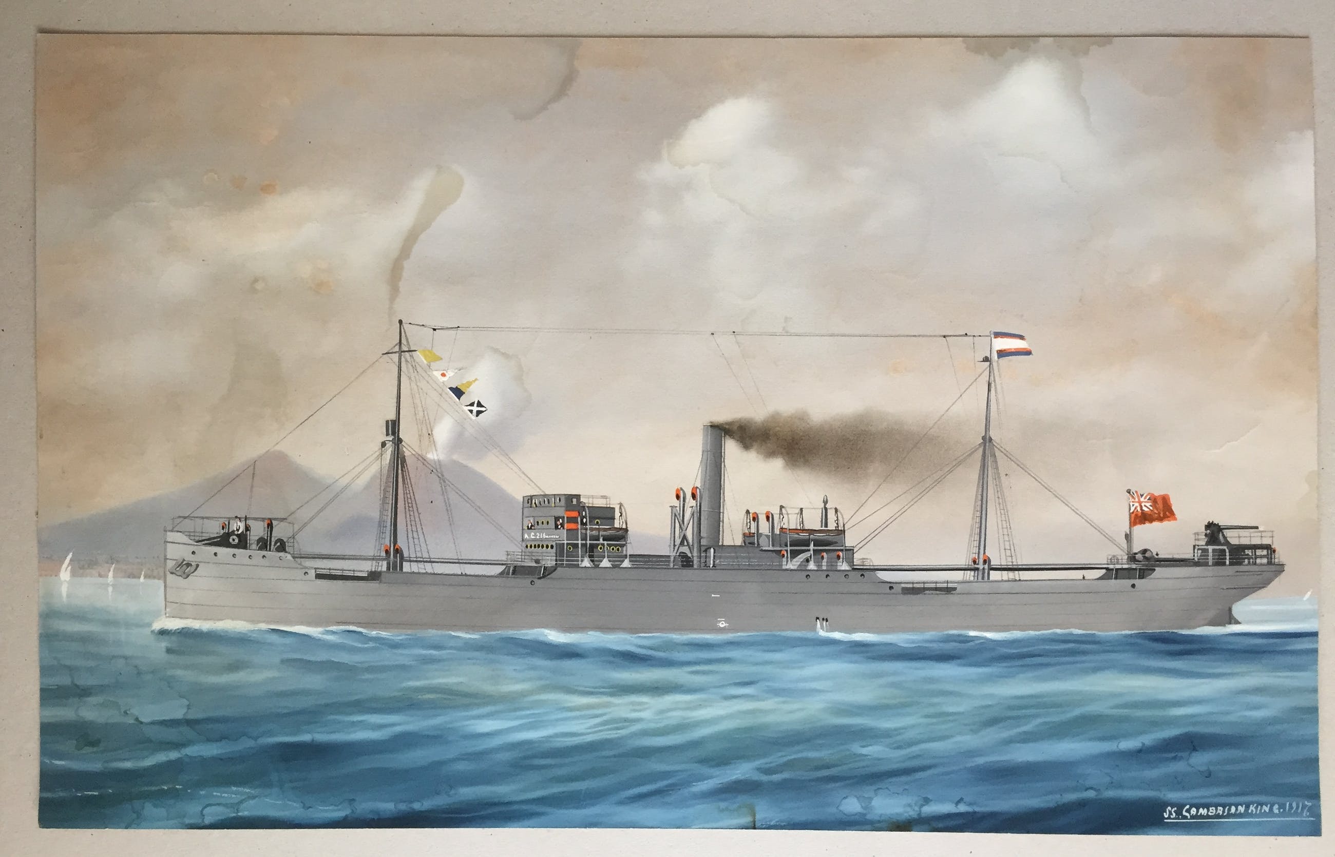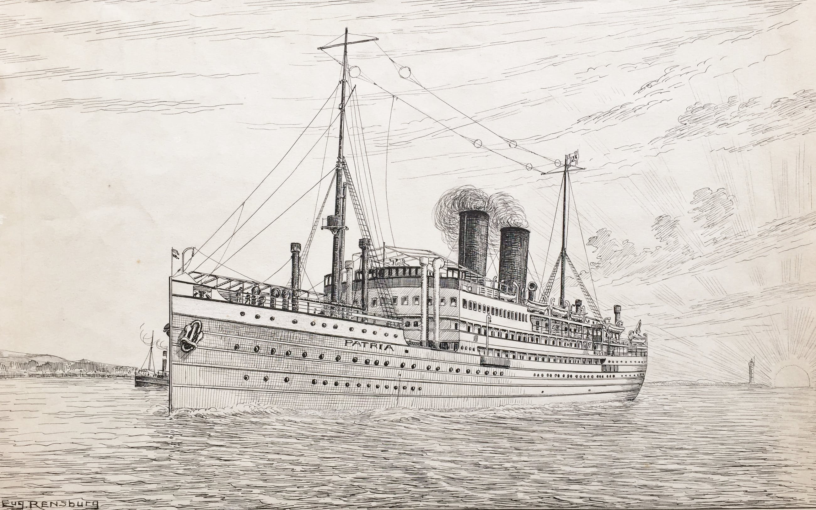 “D.S.S. Patria” 30,5 x 49 cm, papier 37 x 50 cm, sign. Eug. Rensburg” in zwarte inkt, getiteld
