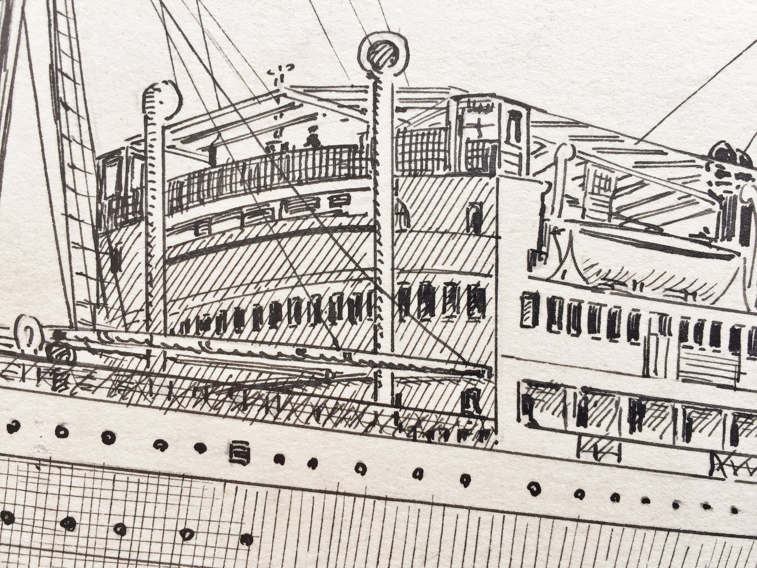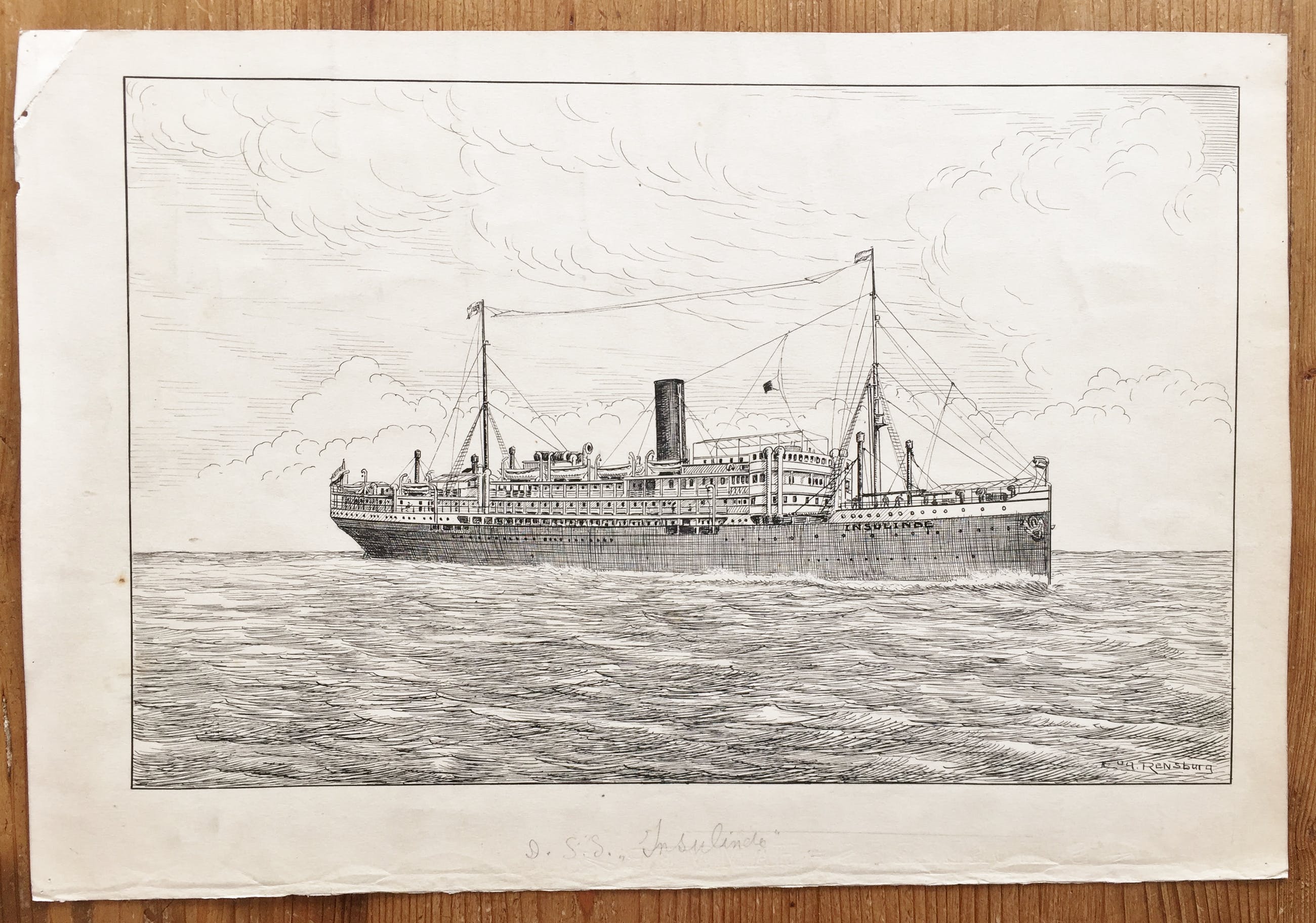 E. Rensburg, 1872 – 1956: Indiëvaart: drie inkttekeningen van stoomschepen in