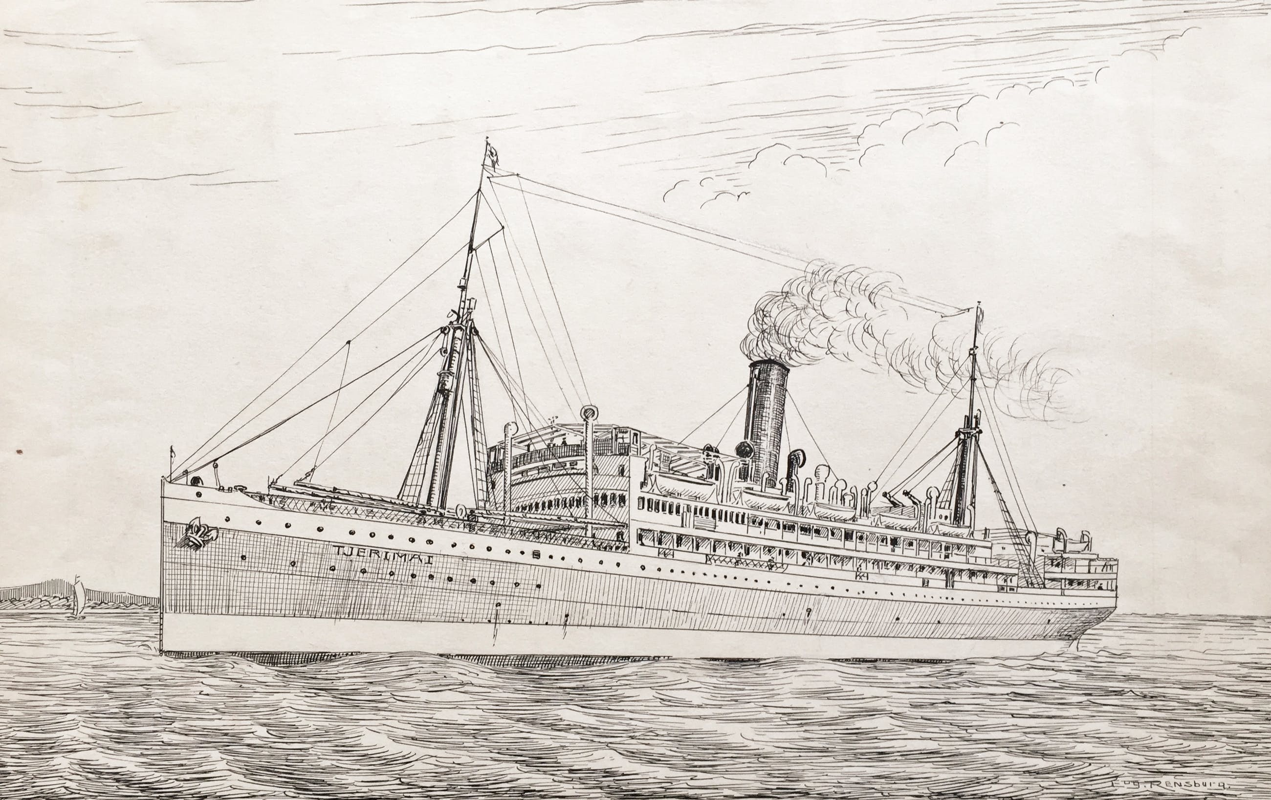 “D.S.S.Tjerimai” 28,2 x 44,3, papier 34,5 x 51 cm, sign. Eug. Rensburg” in zwarte inkt, getiteld