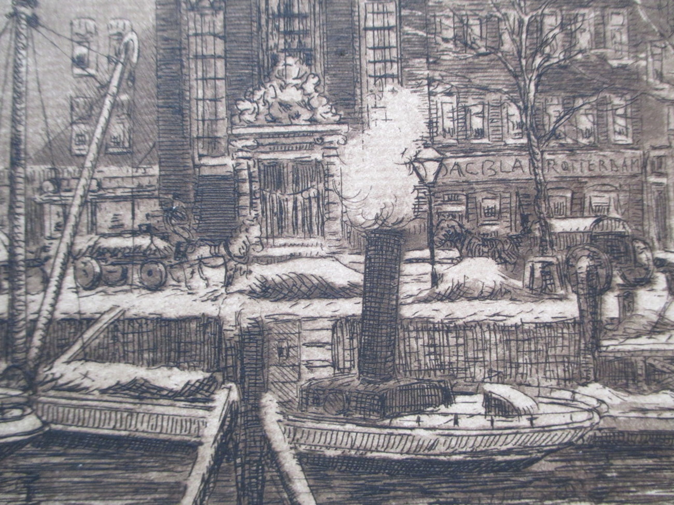 Ets van Eugene Rensburg van de Zuidblaak te Rotterdam, r.o gesigneerd en l. o getiteld in potlood en in de plaat. Het blad is in goede staat, zie ook foto's.