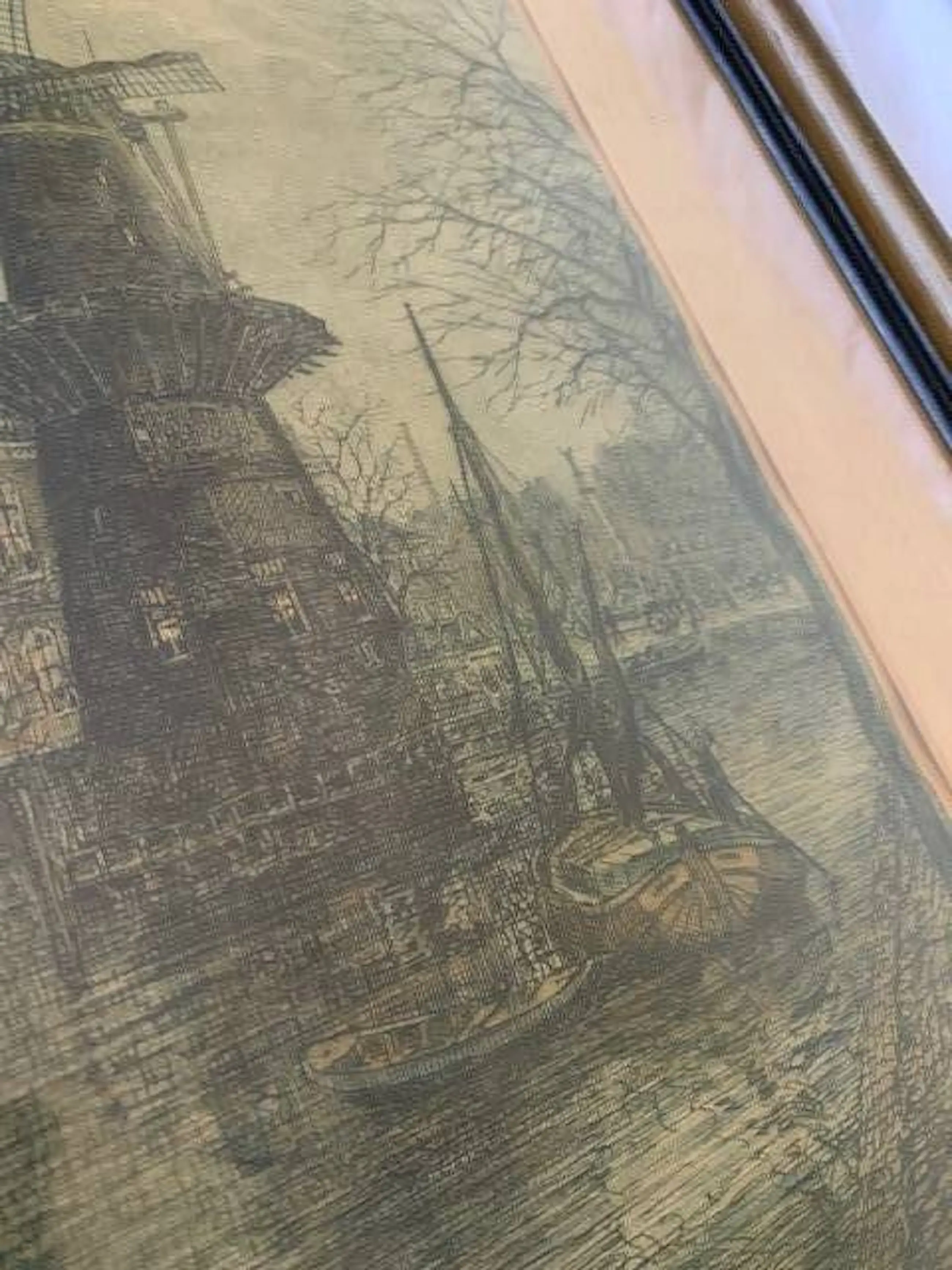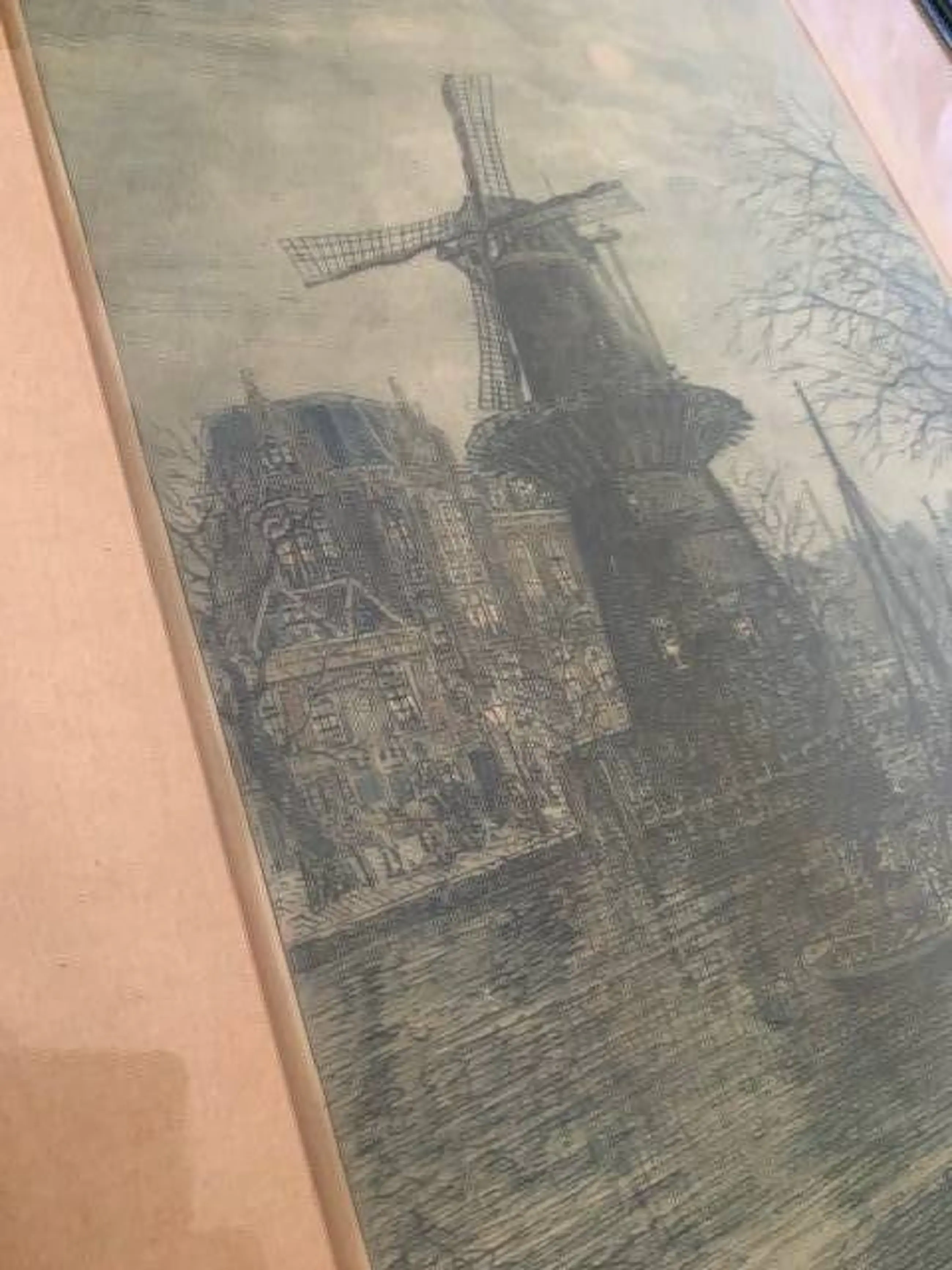 Mooi werk, zwart met wat kleur, van Eugene Rensburg in goede staat. Afbeelding betreft Molen de Hoop Coolsingel Rotterdam 1910