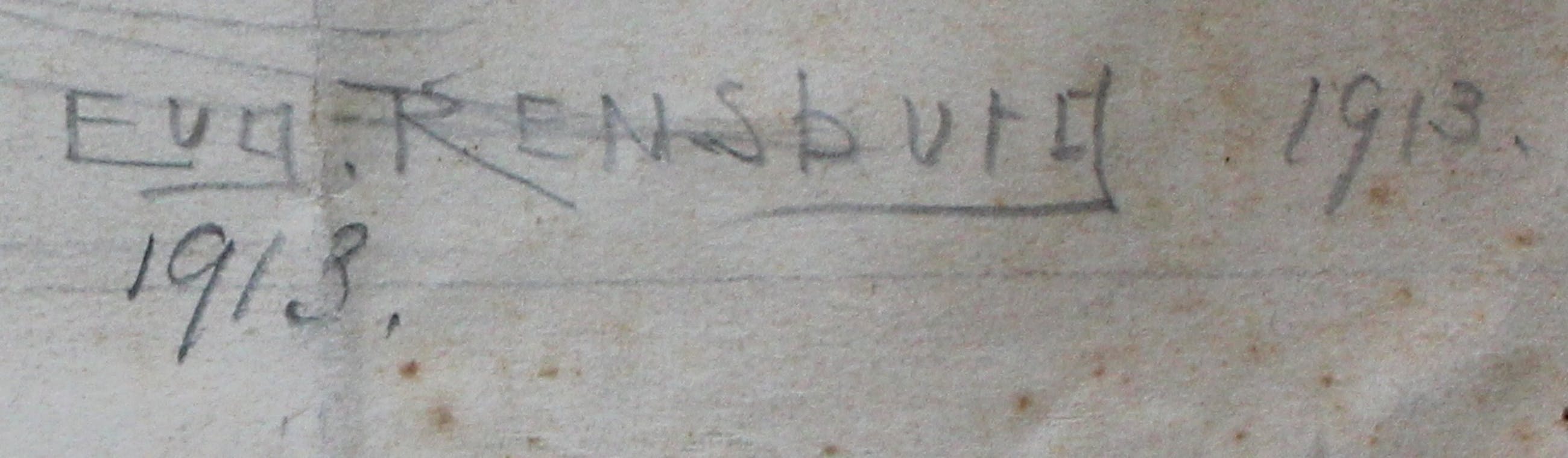 Eugène Rensburg (Eugenius) was een Nederlandse kunstenaar die geboren is in 1872 in Den Haag en daar overleden is in 1956. Hij was een etser, schilder, tekenaar, pentekenaar en aquarellist. Onderwerpen voornamelijk stadsgezichten portretten en historische genres. Opleiding aan de Kunstnijverheidsschool Quellinus (Amsterdam) en aan de Academie van beeldende kunsten (Den Haag). Woonde en werkte in Den Haag, Amsterdam, Parijs, Berlijn, Wenen, Frankfurt, Boedapest, langs de Rijn, Donau, Seine, aan de Thames bij Londen, langs de Zuiderzee. Heeft lang in Rotterdam gewoond. Leerling van de Quellinusschool (avondcursus) te Amsterdam en van de Academie v. B.K. in Den Haag (vanaf ca. 1890) o.l.v. J. van Delden. Heeft meer dan 5000 etsen gemaakt, waaronder ca. 450 stuks van de stad. Bron: R.K.D. en Scheen.