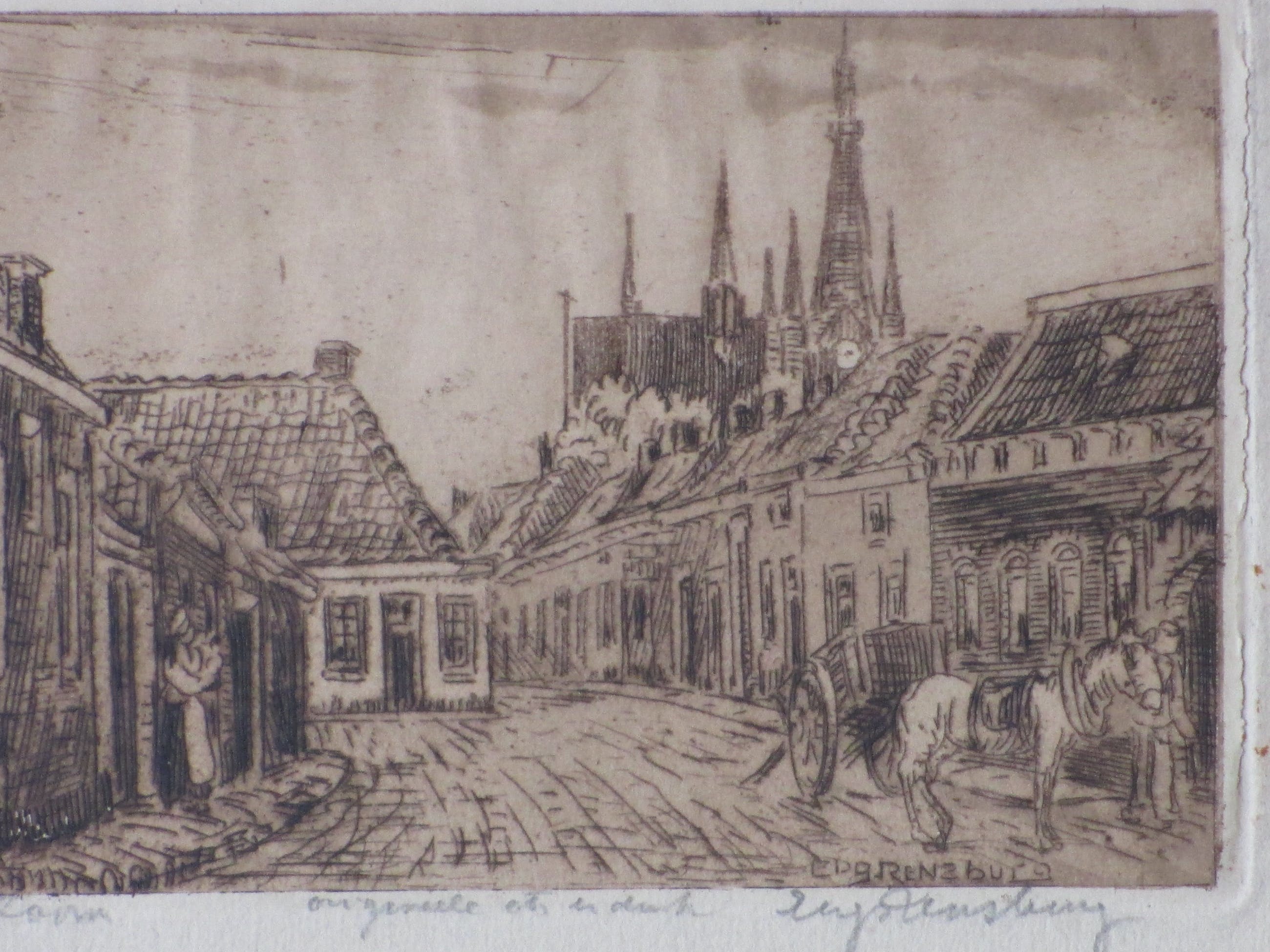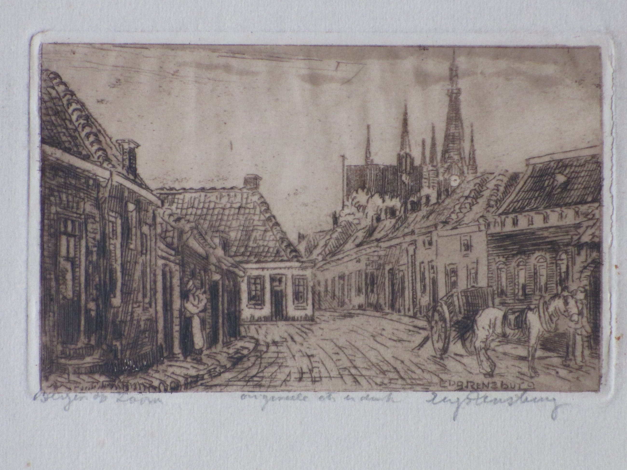 Ets door Eugene RensburgVoorstelling van een stadsgezicht op Bergen op ZoomLosbladig, beeldmaat 8,5x14, bladmaat 16x22,5Gesigneerd r.o. in potlood 'Eug Rensburg'Getiteld in potlood l.o. 'Bergen op Zoom' en annotatie m.o. 'originele ets en druk'Authenticiteit gegarandeerd