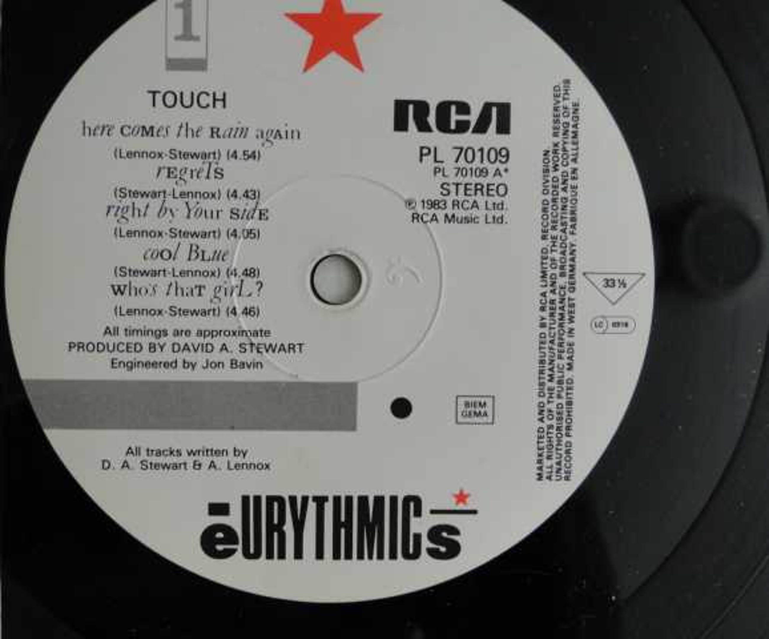 Fraaie LP met lichte gebruikerssporen. Toegevoegd: een originele foto van Ann Lennox en Dave Stewart! In nieuwstaat.