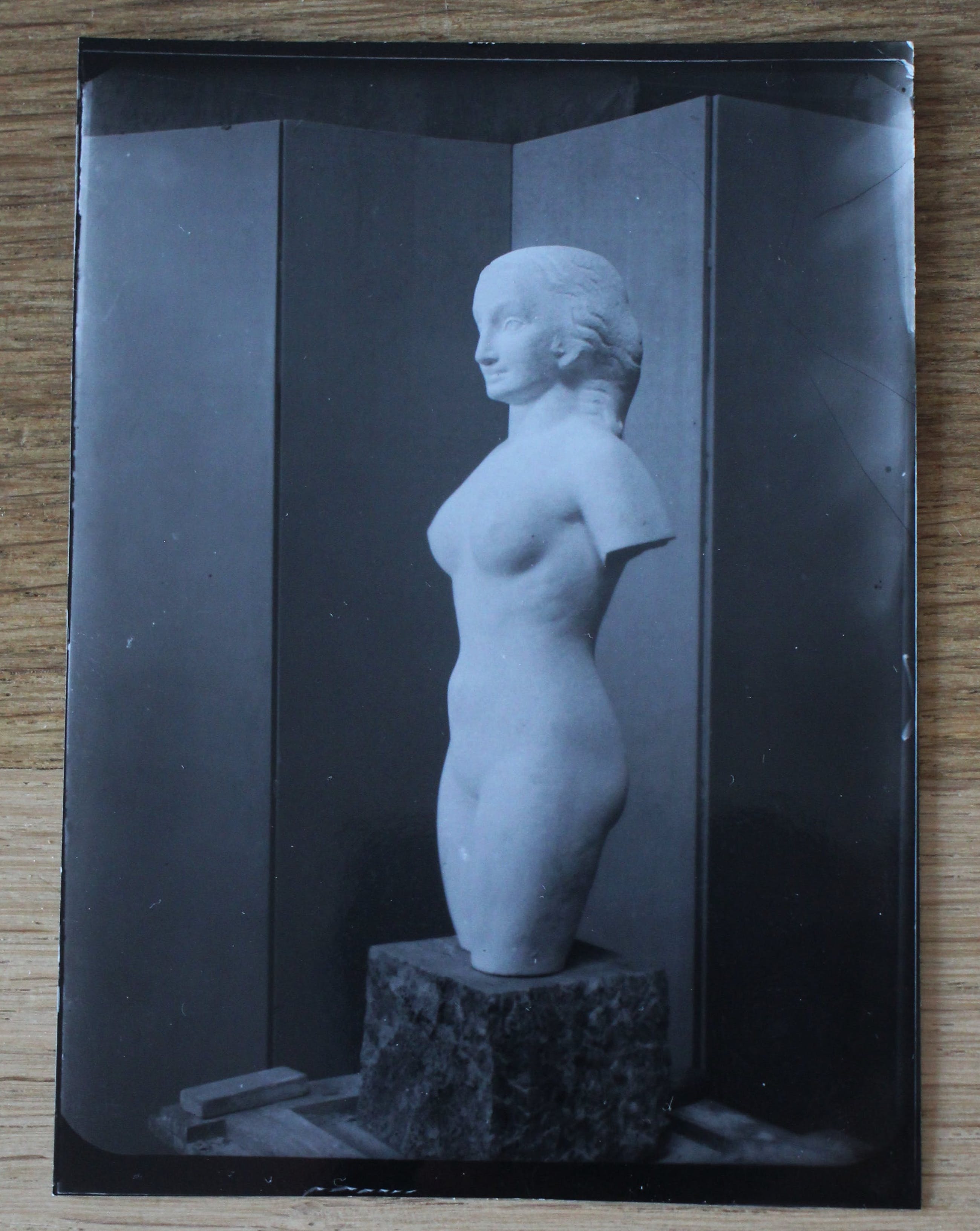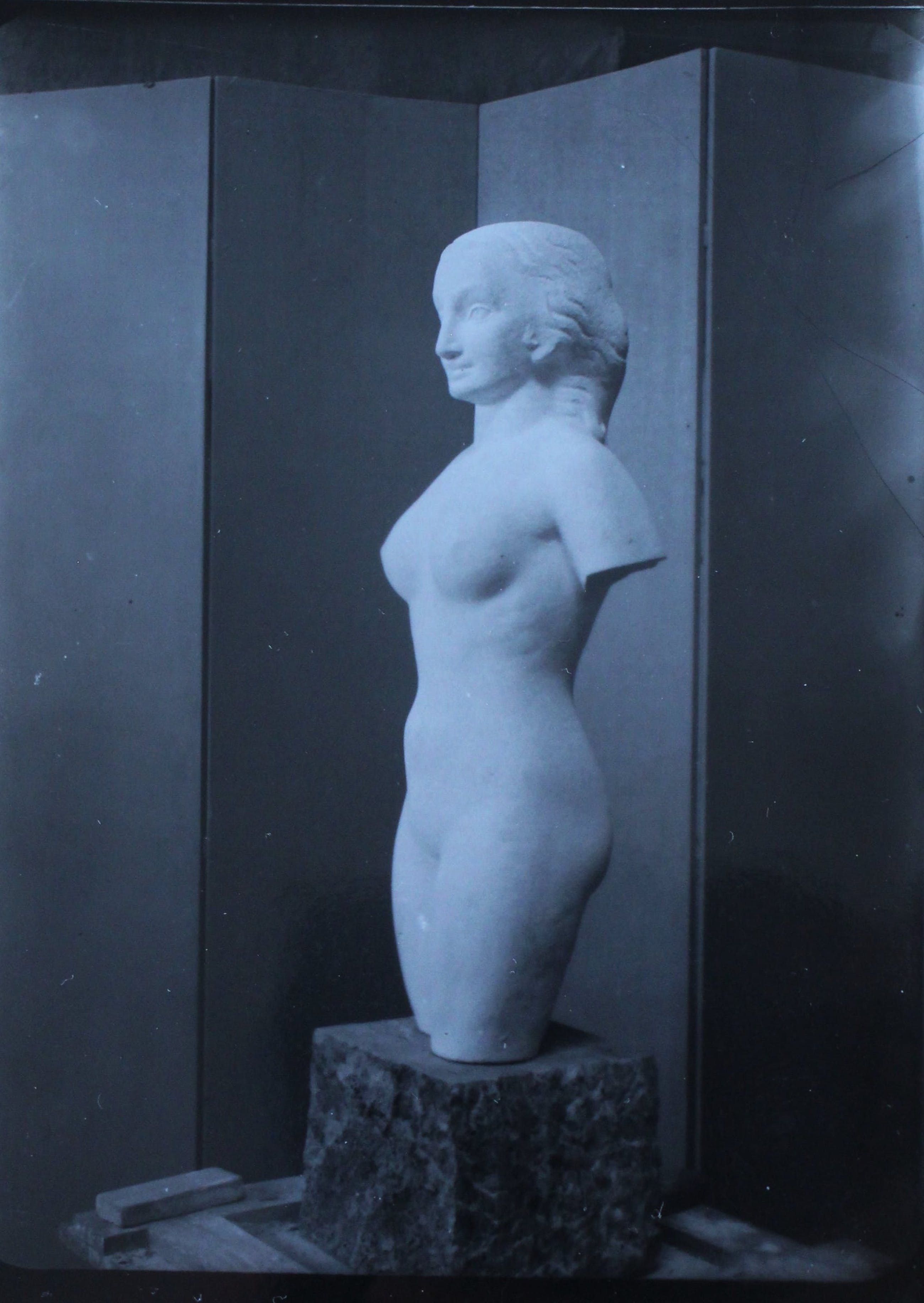 Foto van een beeld van John Raedecker door Eva Besnyo. Jaar: 1936. Afmetingen voorstelling: H12 x b9 cm. Het werk is op de achterzijde gestempeld: " Eva Besnyo". Het betreffende beeld is ook te vinden in het boek: John Raedecker - arté plástico holandés. Het boekje wordt niet meegeleverd.