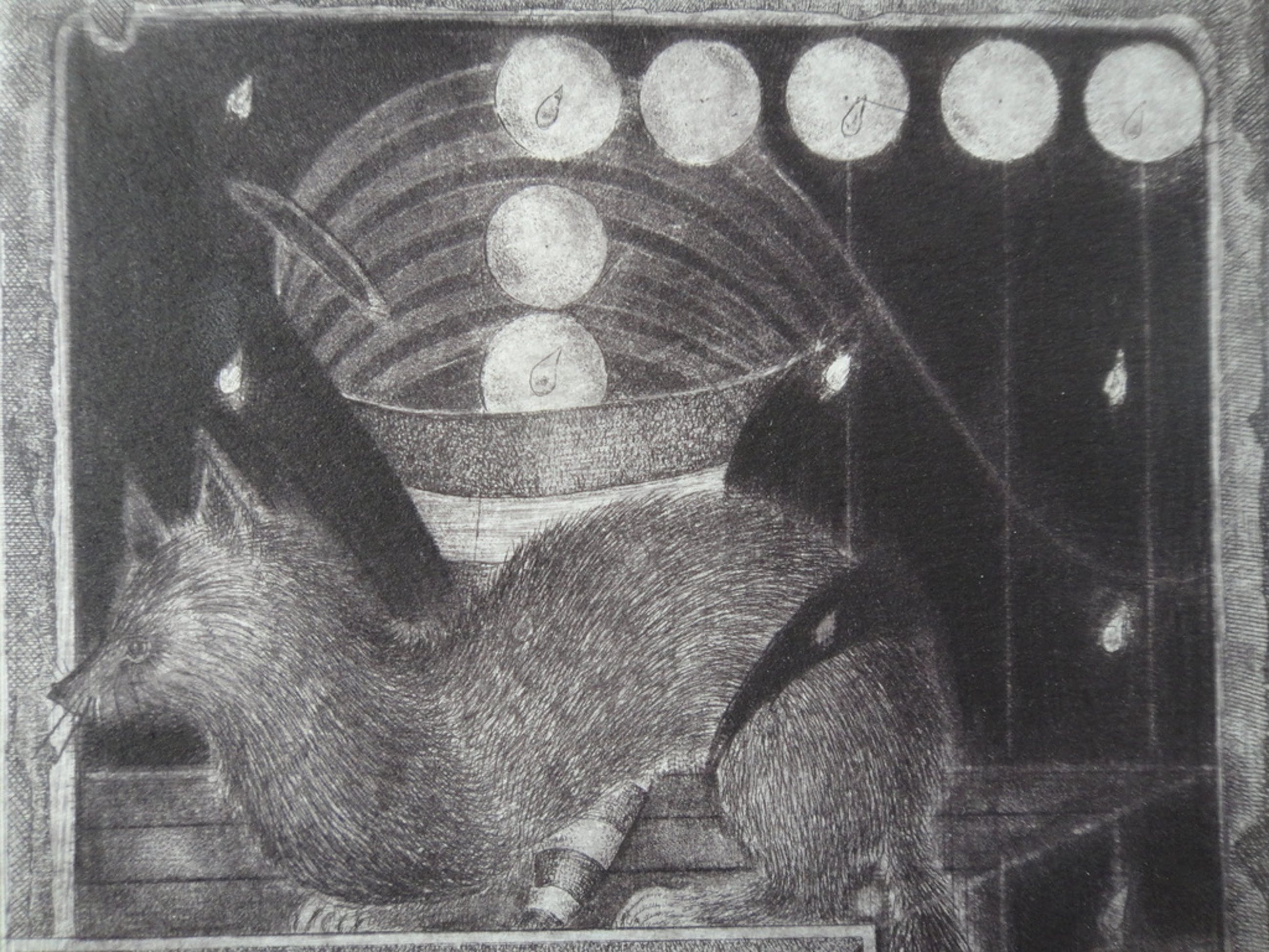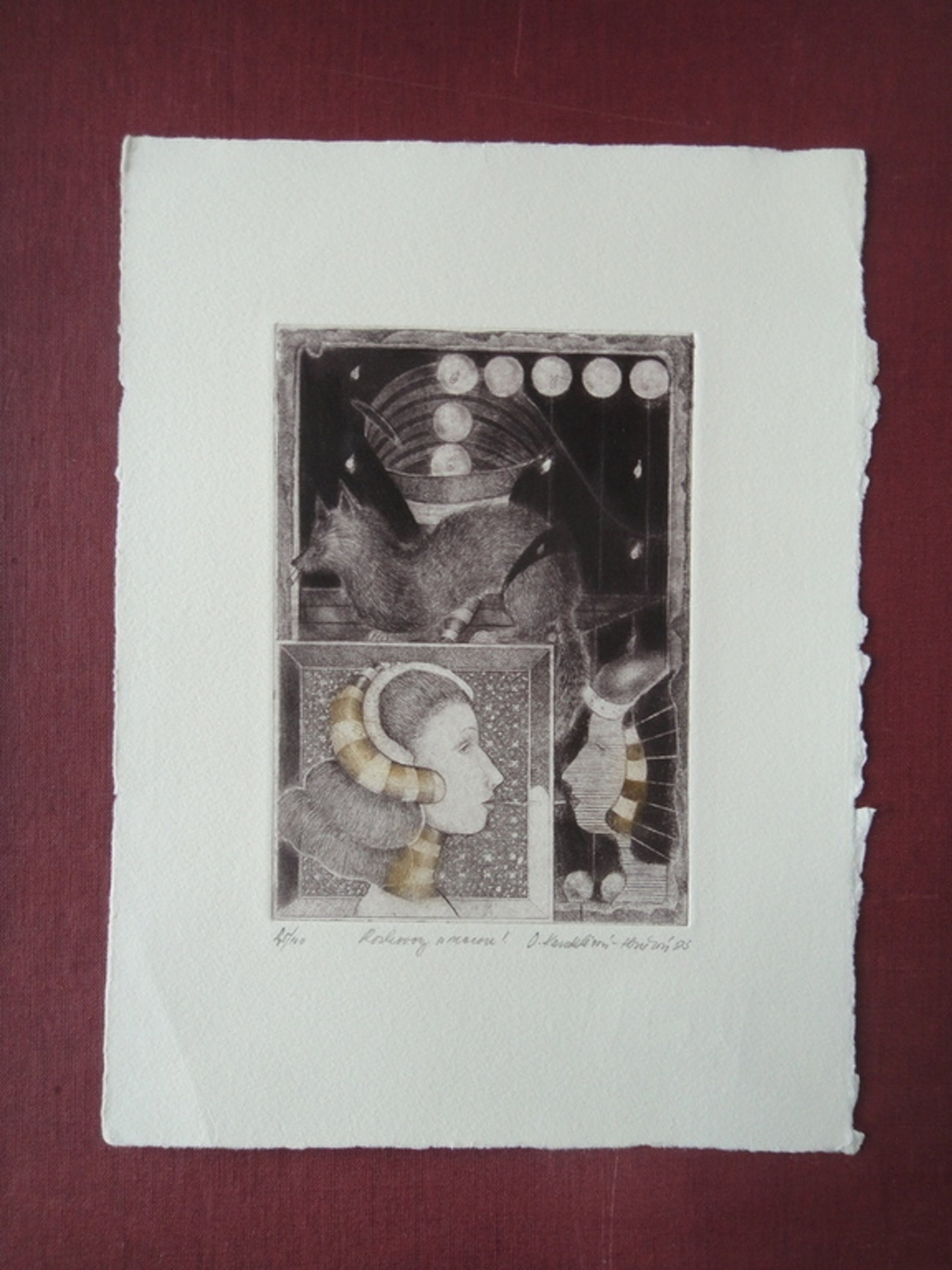 Curator Alena Laufrova: "Eva Hašková is an established artist with great technical and thematic inventiveness. She creates small-sized as well as large-sized prints, using the etching and aquatint technique. In recent years, she has abandoned her illustrative approach to printamking. Her works have become monumental compositions. Drawing elements or details are constructed as part of the dominant motif – architecture, often conveying the artist‘s own experiences and memories. Hašková’s prints reveal contrasting volumes, lines and fine structures with remarkable use of light and shadow. Her works do not lack in dynamism and inner tension. In Eva Hašková´s prints, architectural motifs have become an authentic symbol of one person´s destiny".