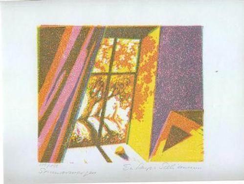 Eva Raupp Schliemann - Sommermorgen - Dreifarben-Linolschnitt - 1972