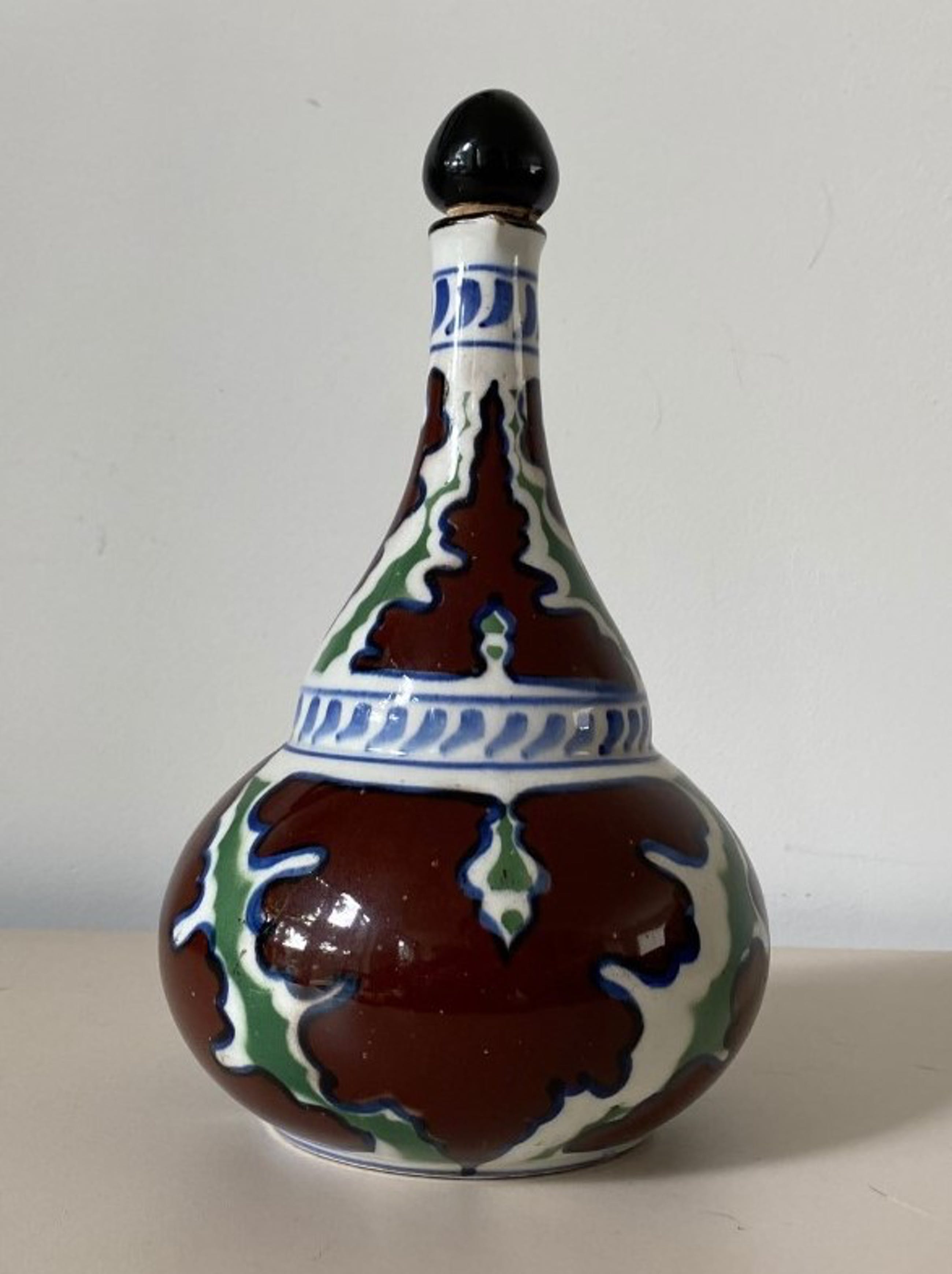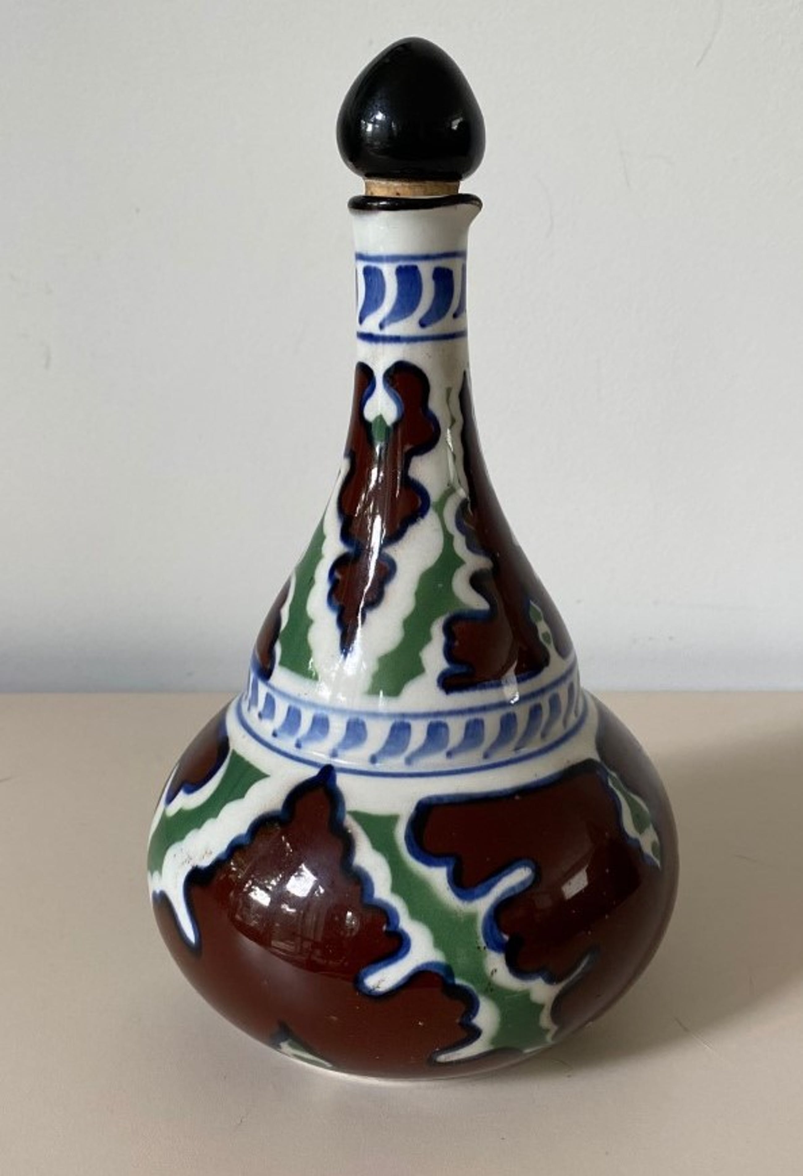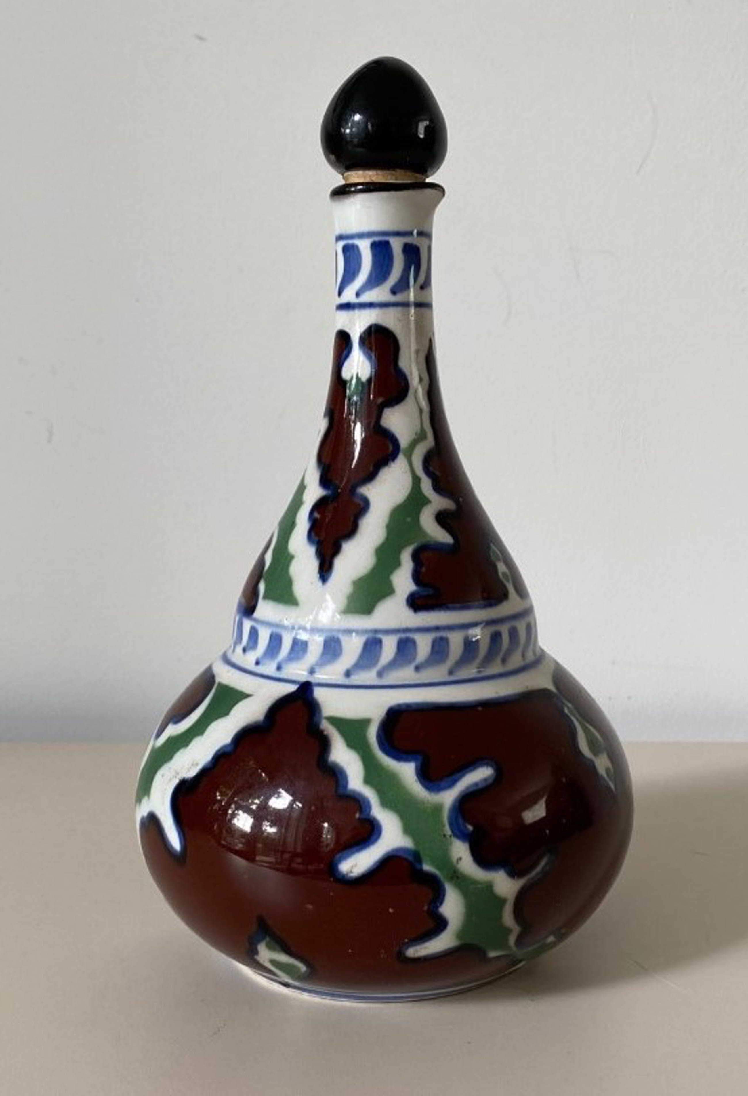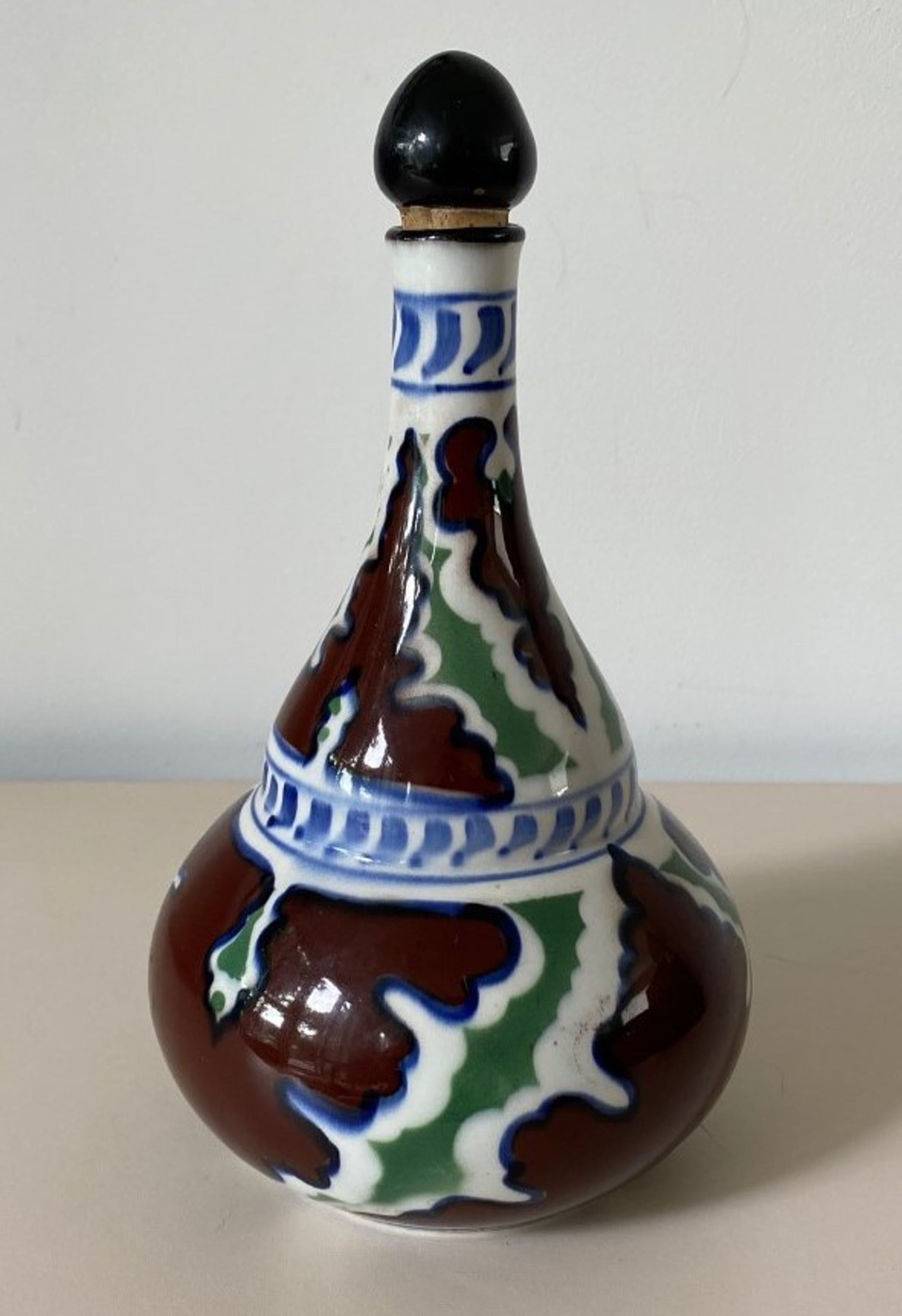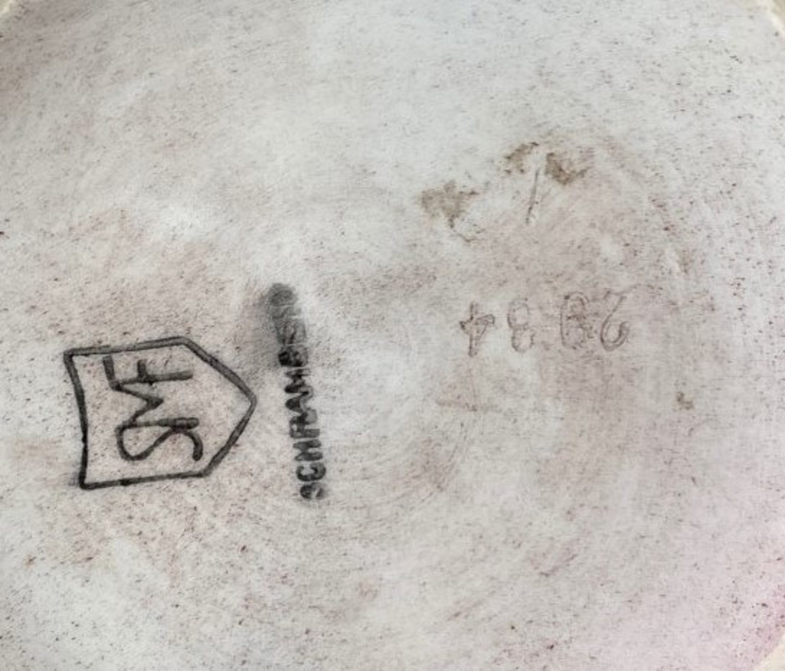 Mooie Art Deco aardewerken kruik van SMF Schramberg ontwerp Eva Stricker Zeisel. In prima conditie het tuitje heeft een minimale glazuurflinter. Gemerkt aan de onderzijde.
