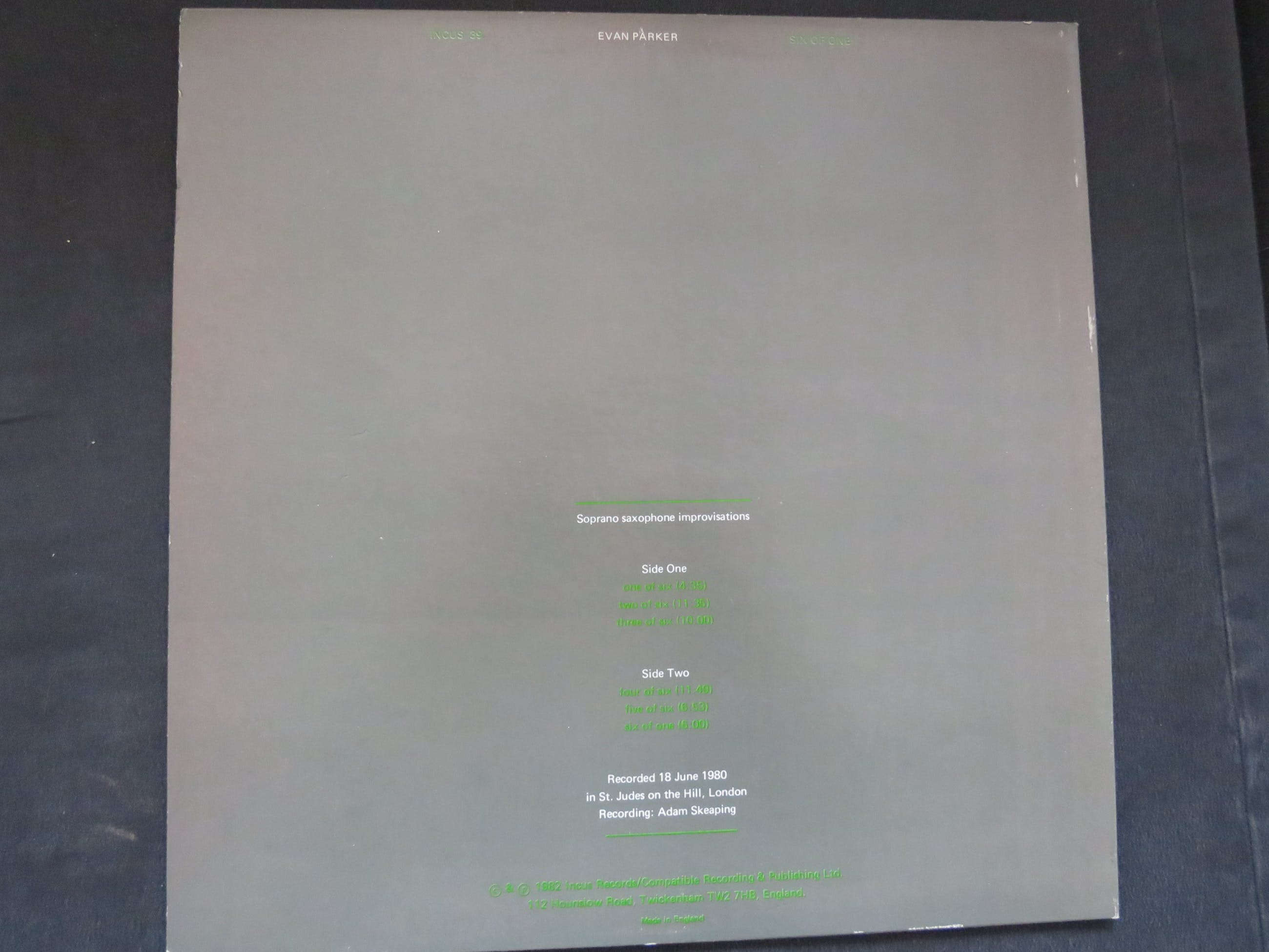 Solo LP van de sopraan saxofonist Evan Parker. op Incus 39.