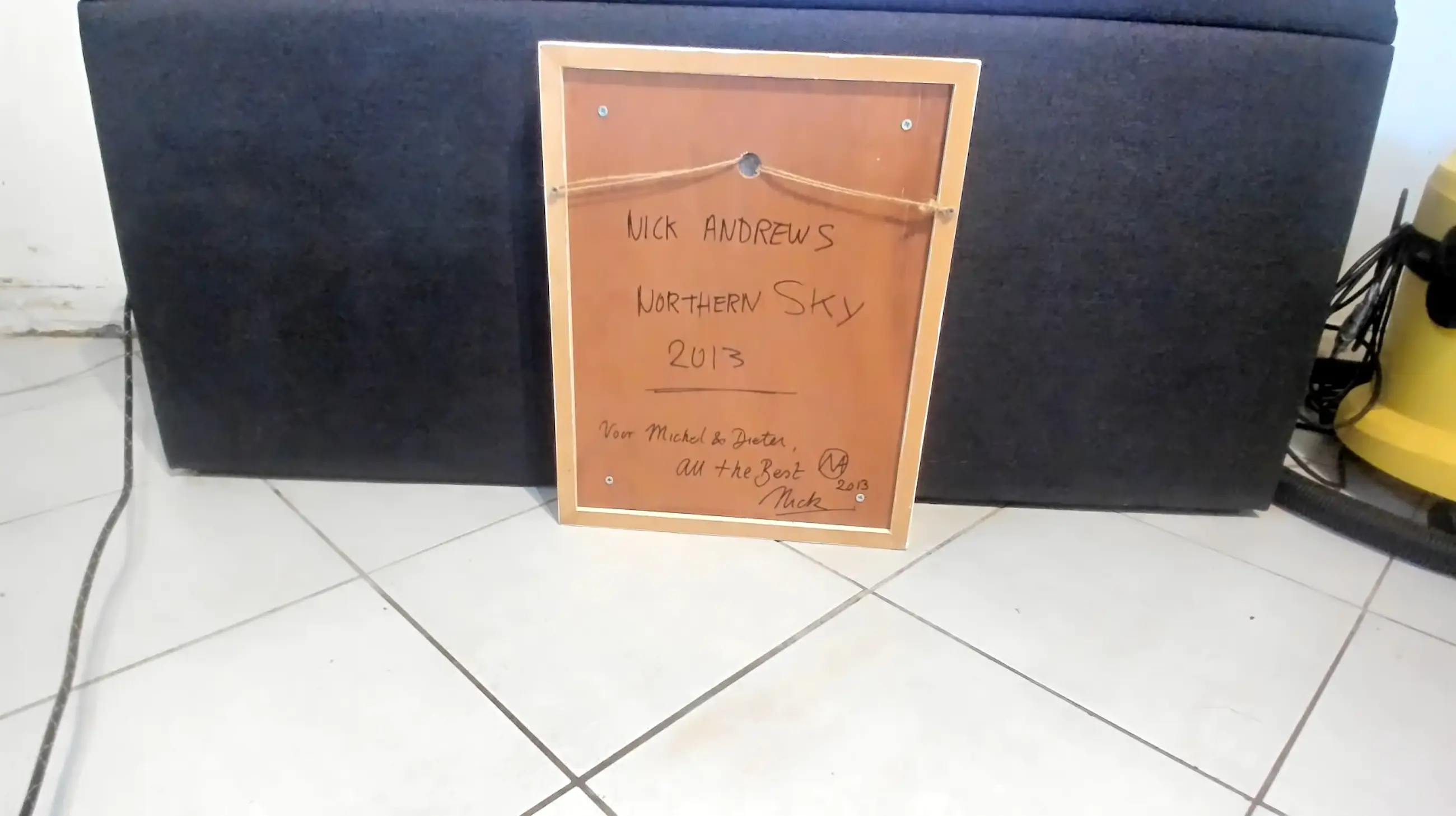 is een werk van Nick Andrews (Northern Sky) 2013 het ingekaderd alsook gesinieerd is destijds aangekocht in gallerij de Zwarte Panter Antwerpen