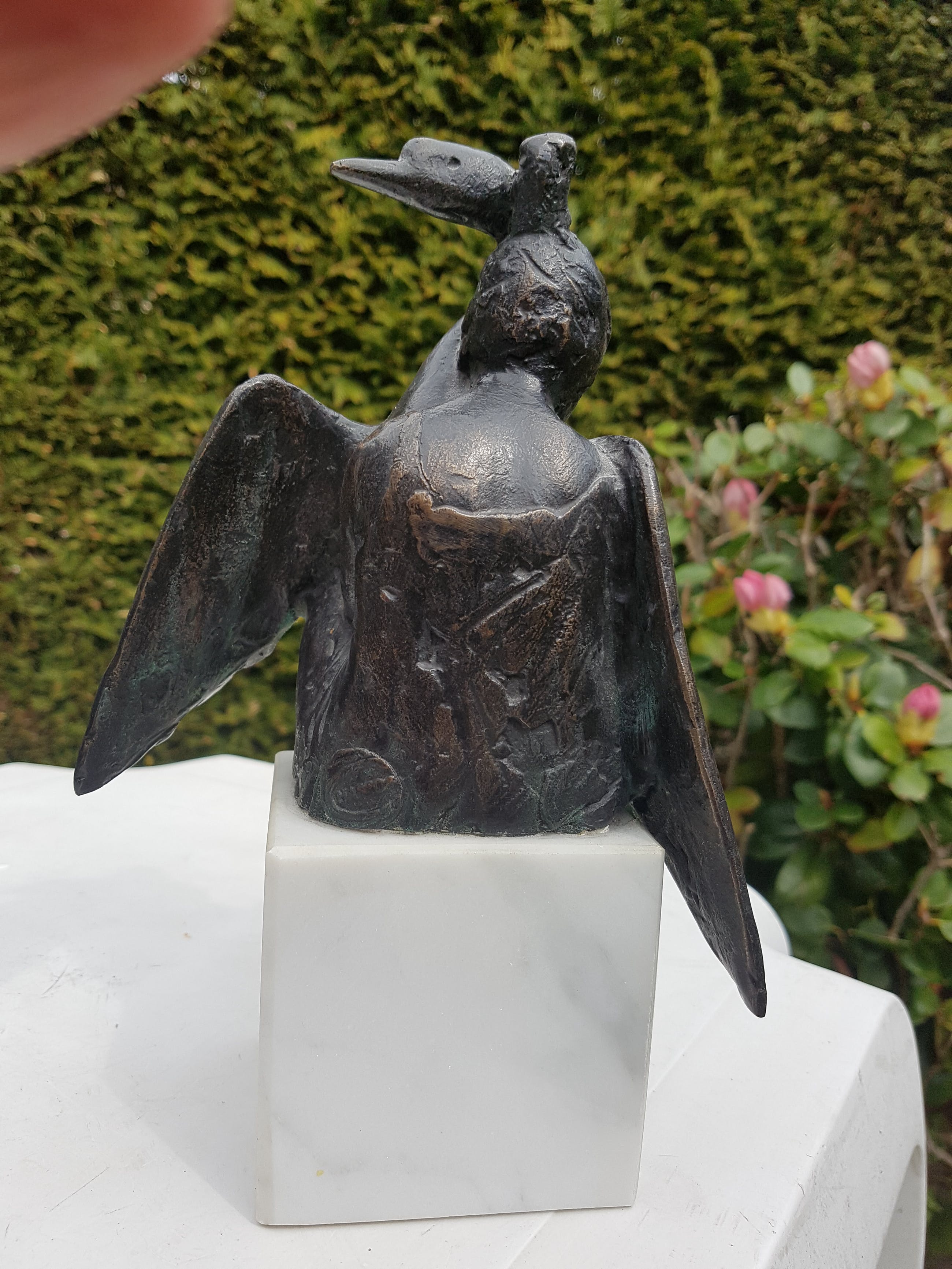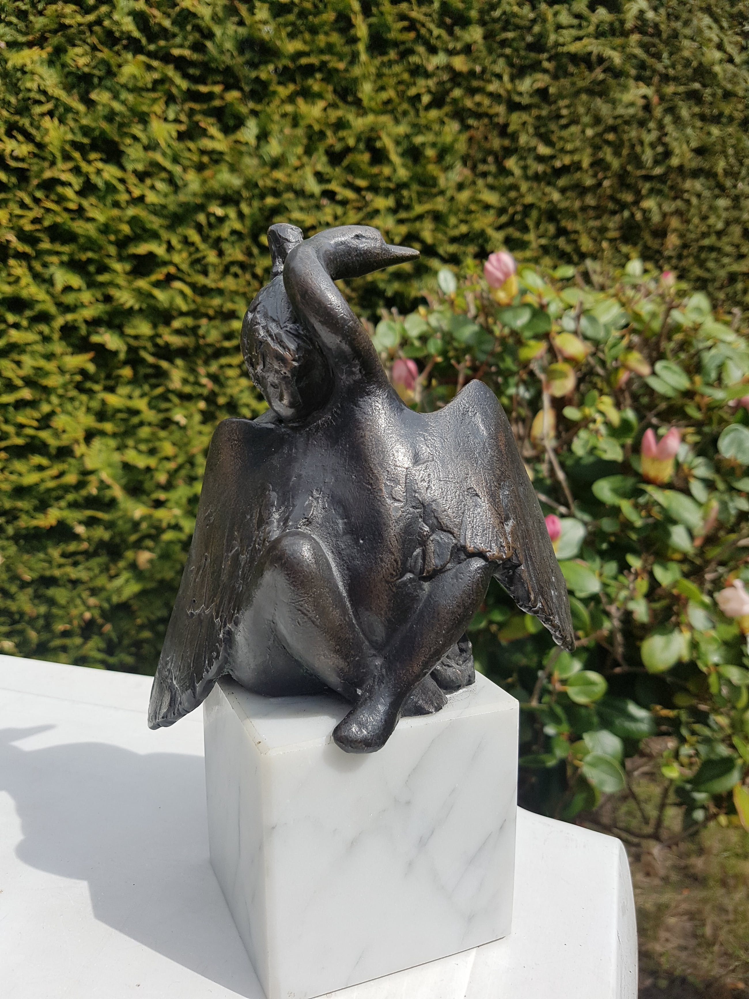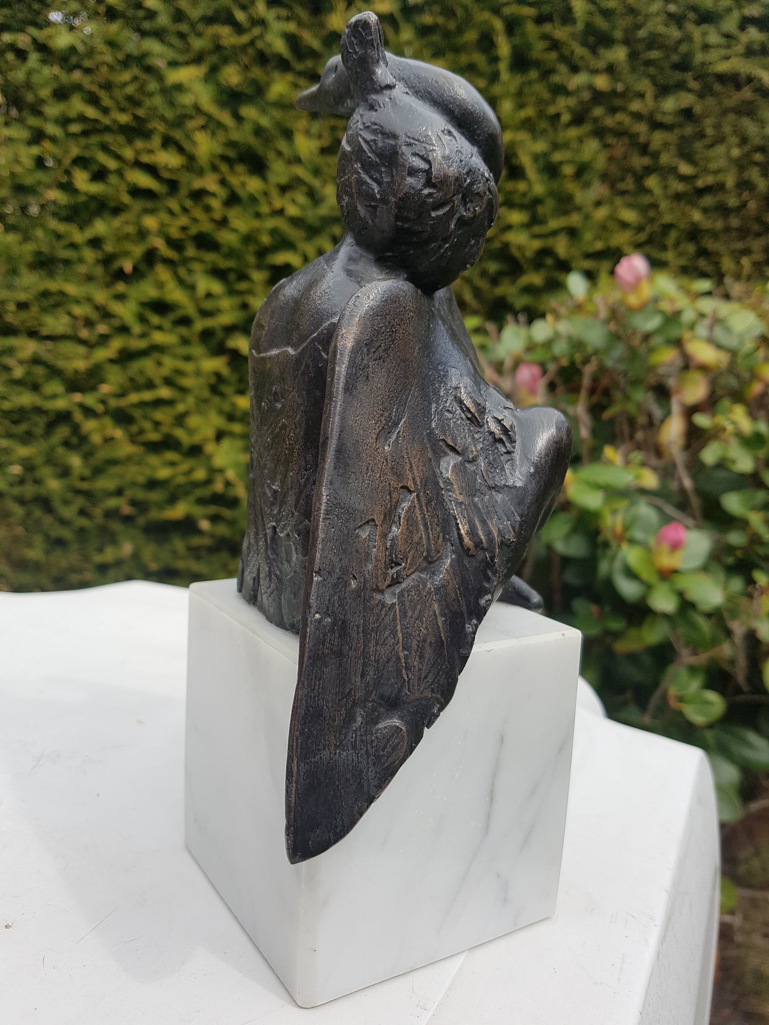 Gepatineerd brons, gemerkt, op wit marmeren basement,