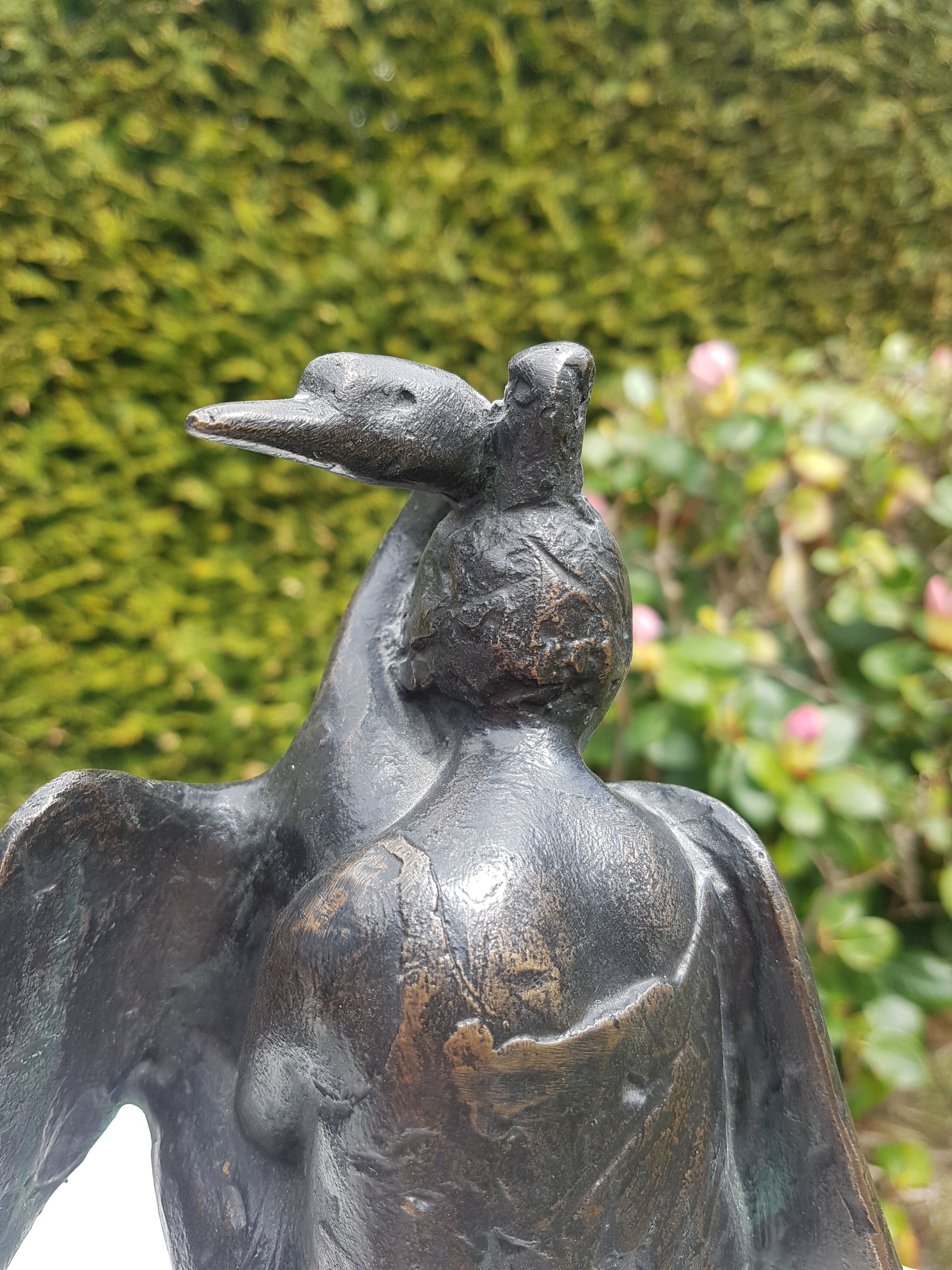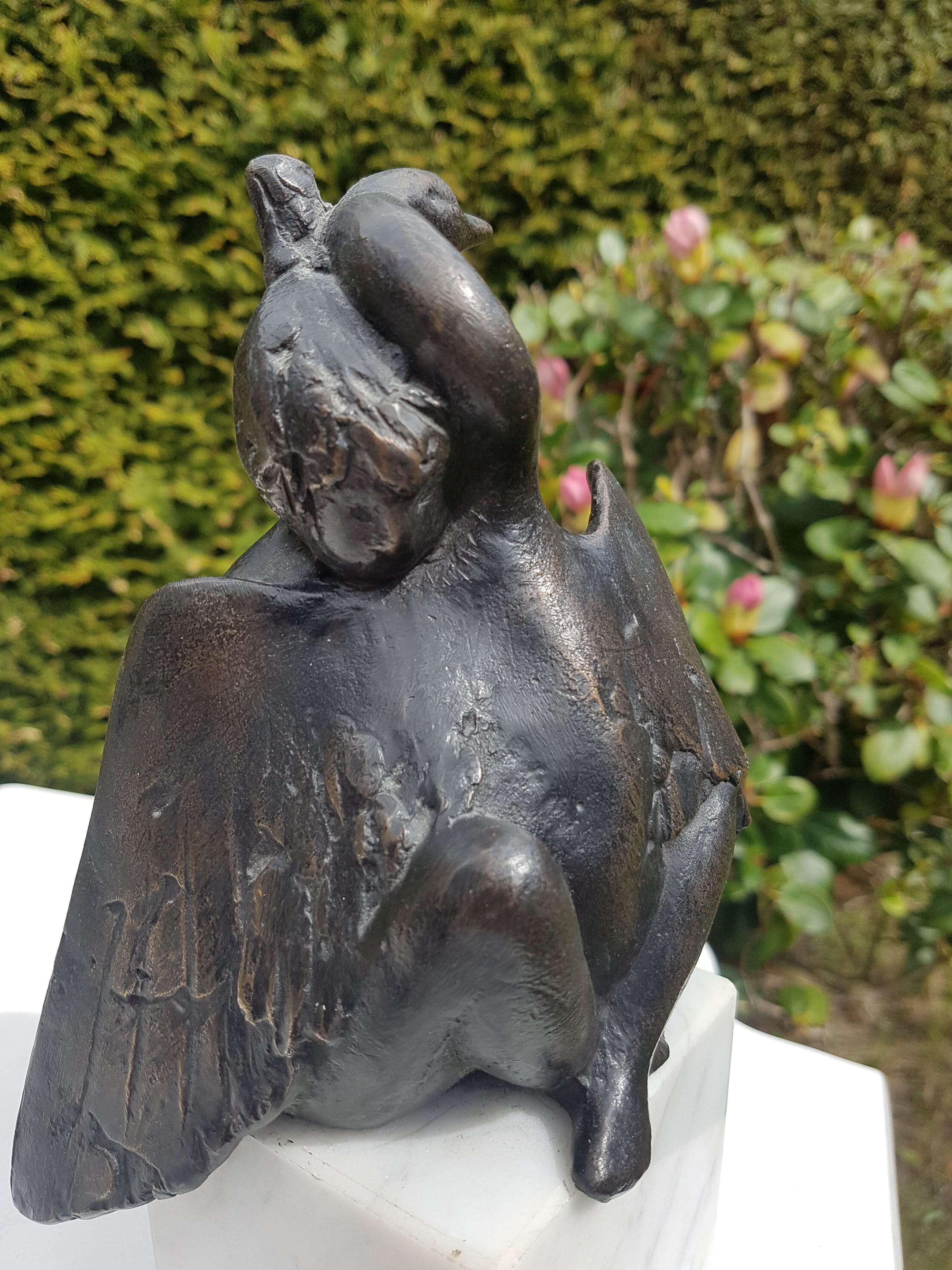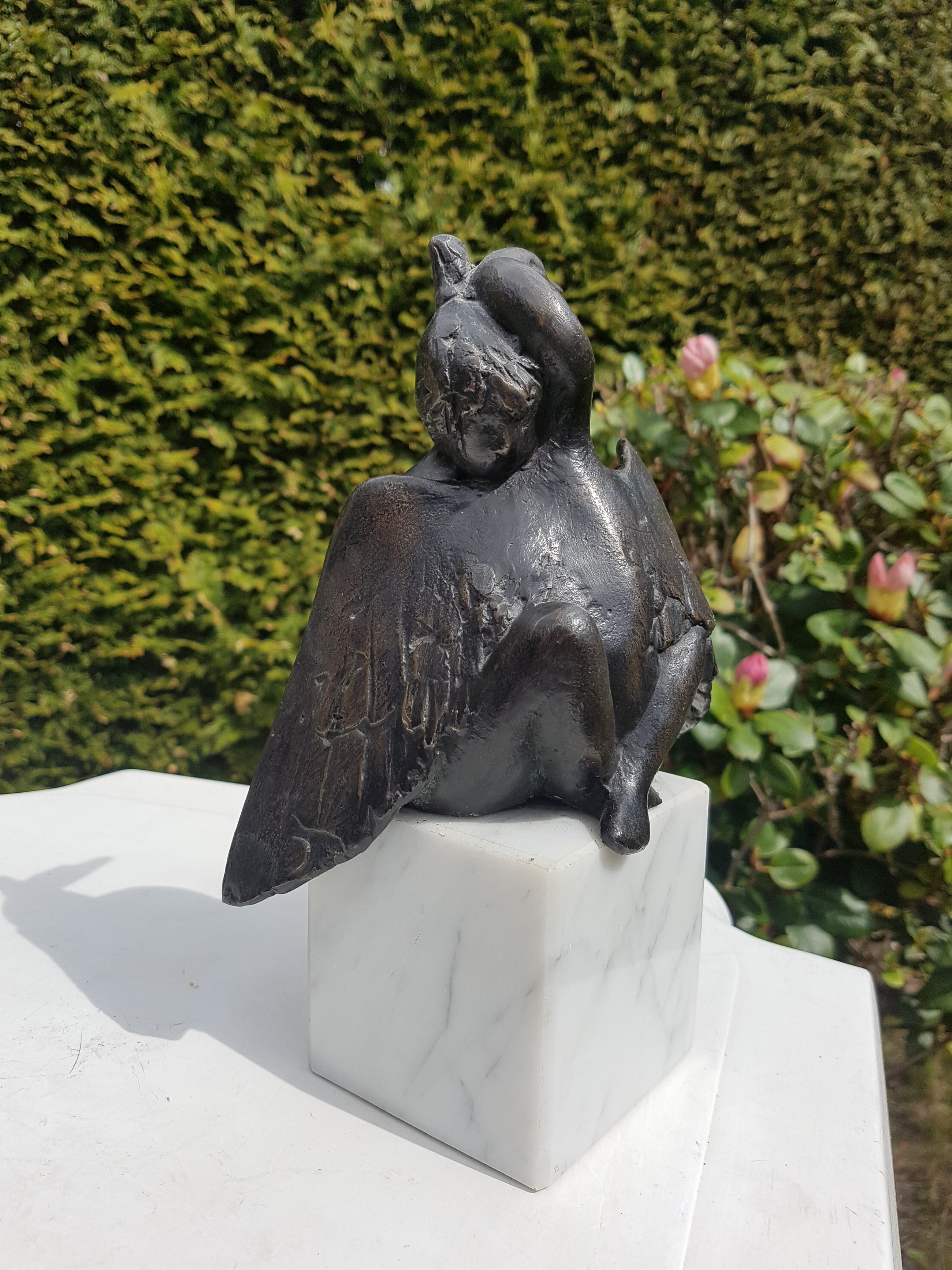 Gepatineerd brons, gemerkt, op wit marmeren basement,