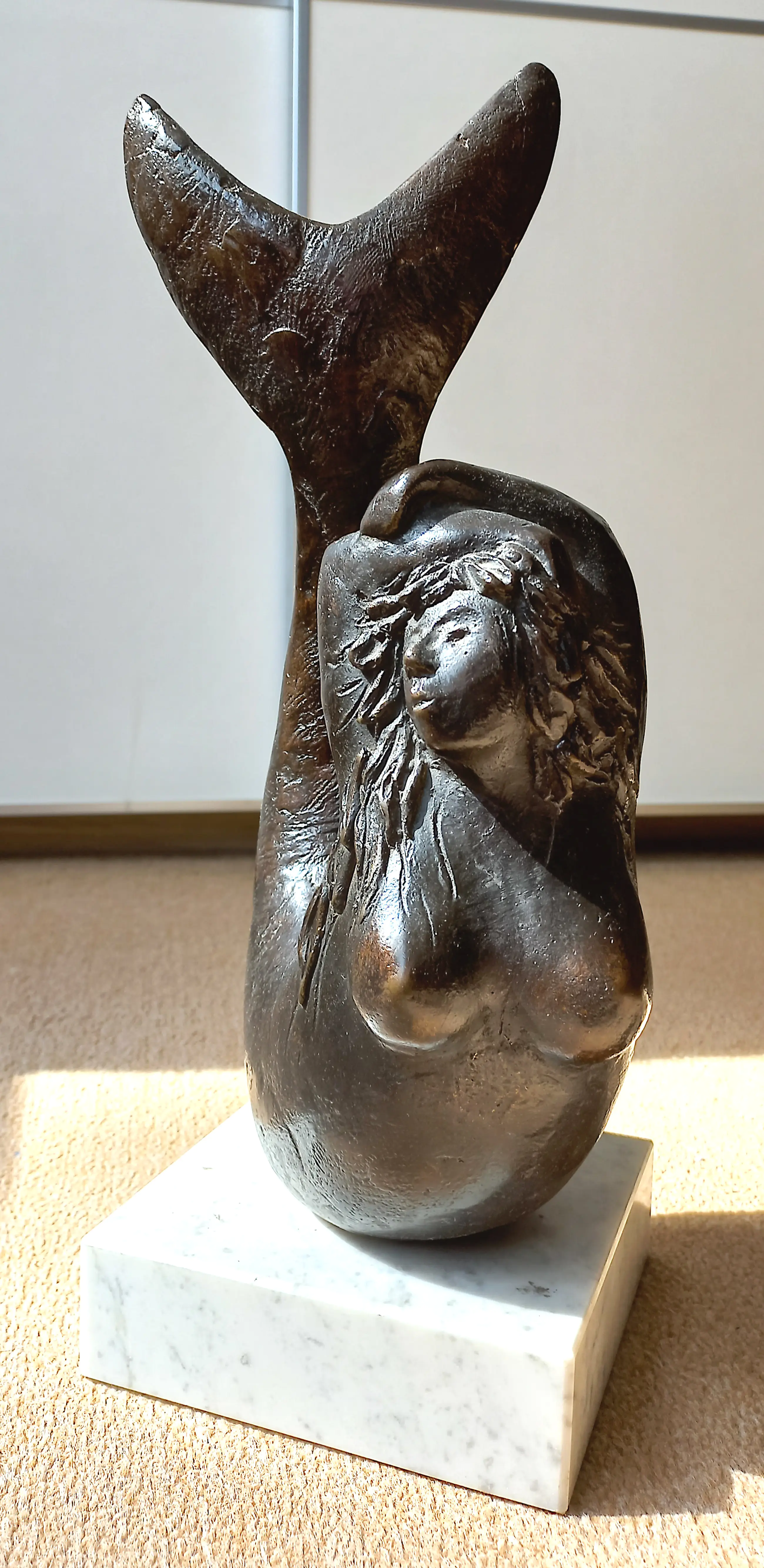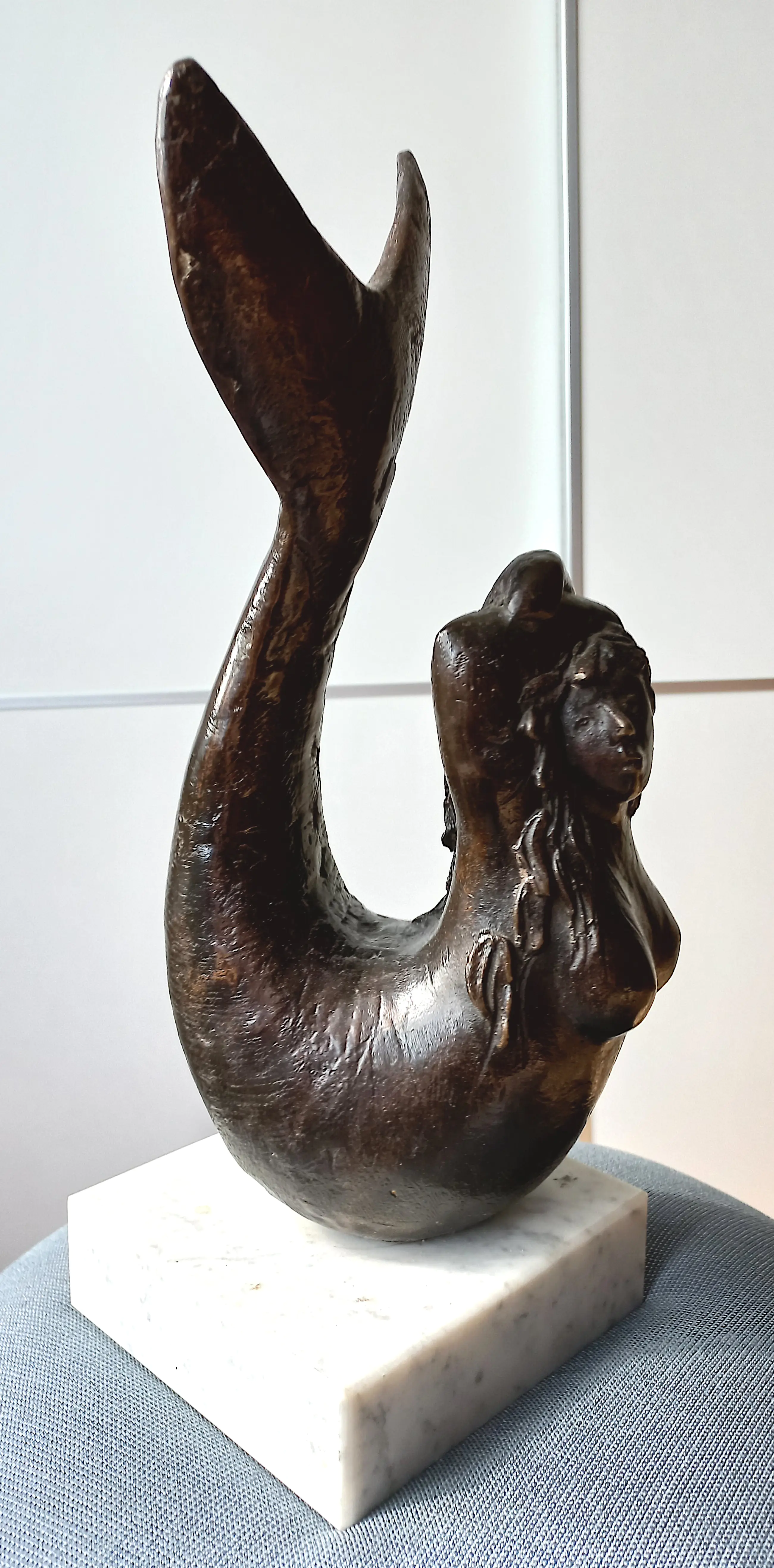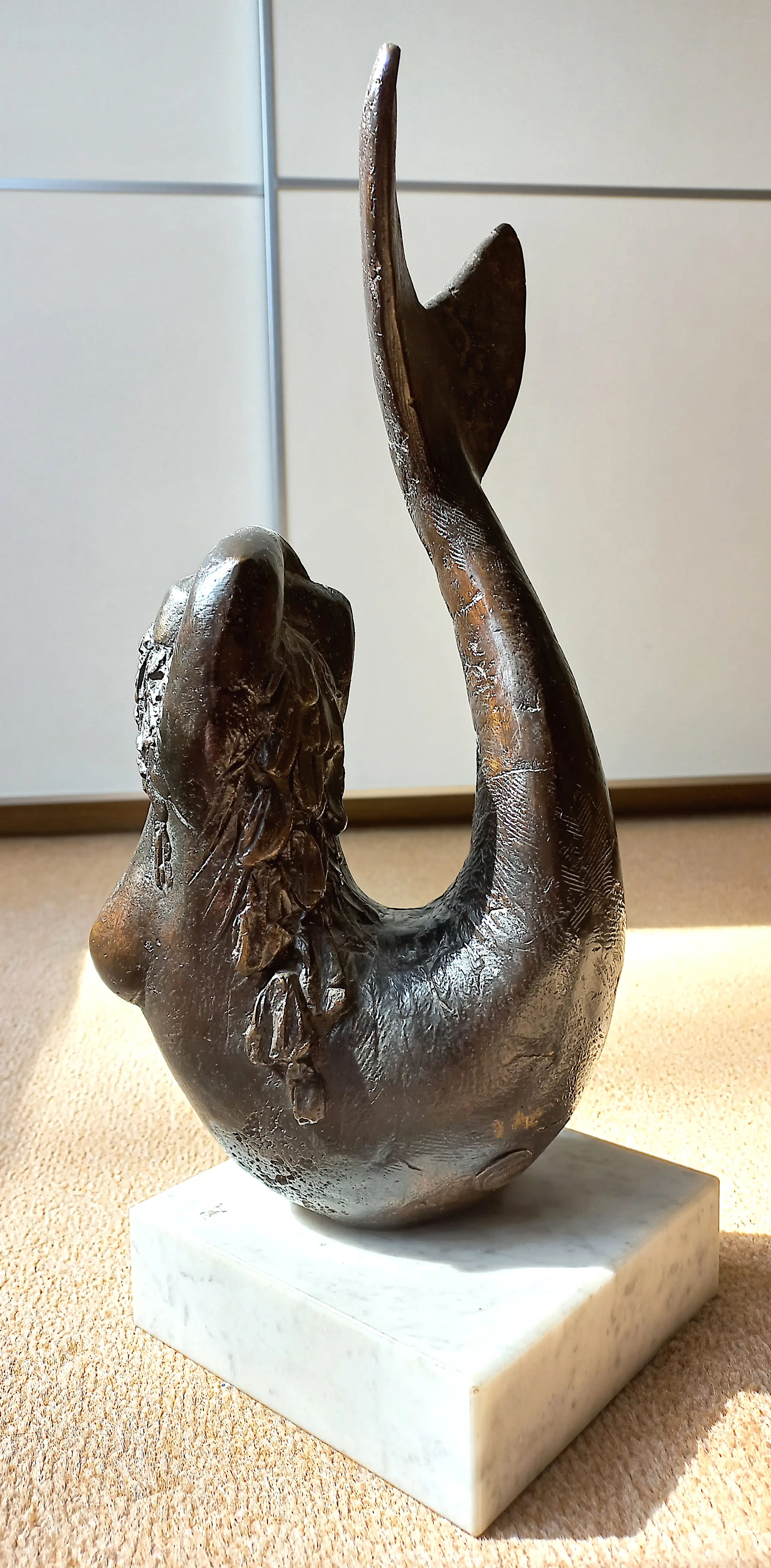 Mooie, karakteristieke sculptuur van Evert den Hartog. Bronzen beeld op marmeren voet, op het brons gestempeld en genummerd (1/12). Totaalgewicht rond de 5kg. In zeer goede conditie.