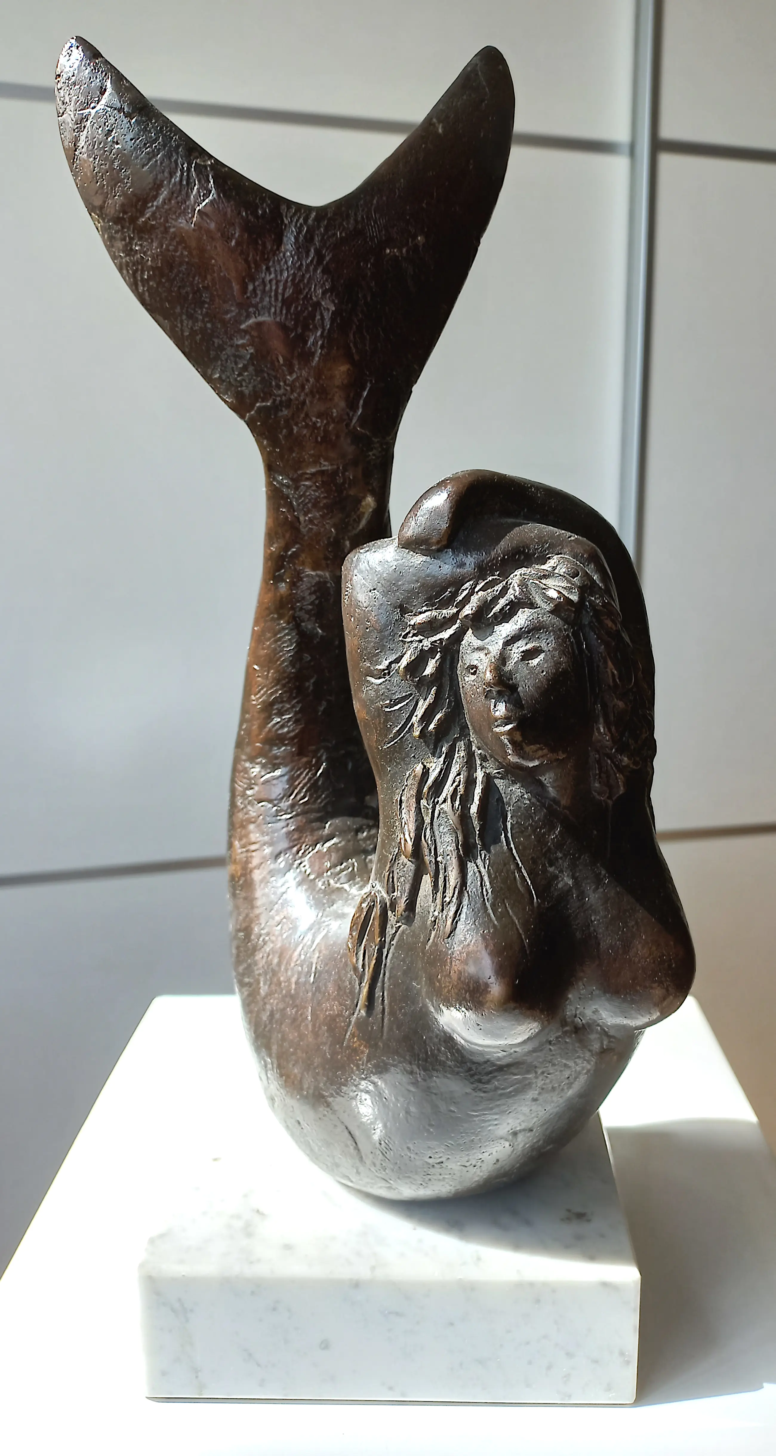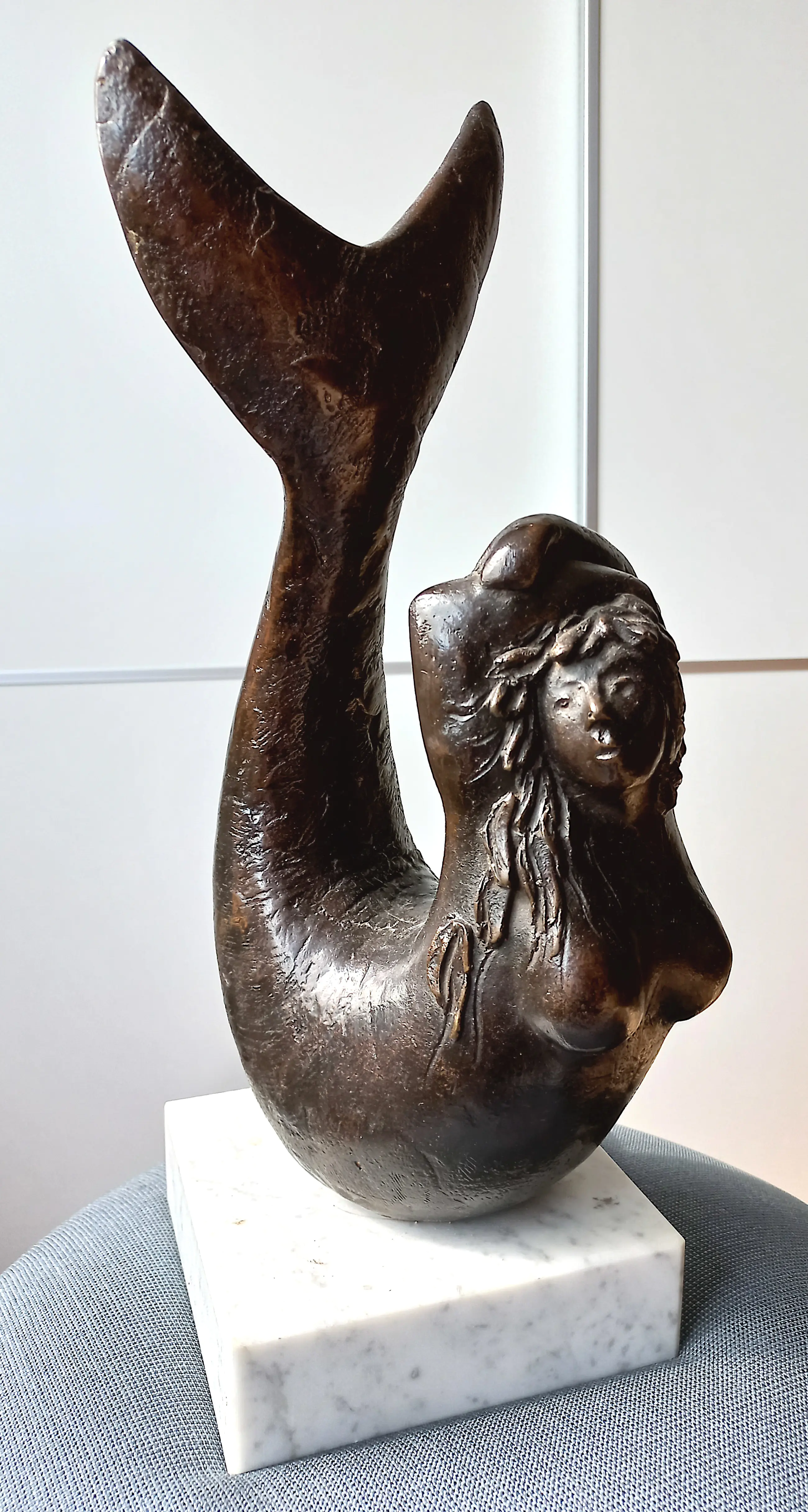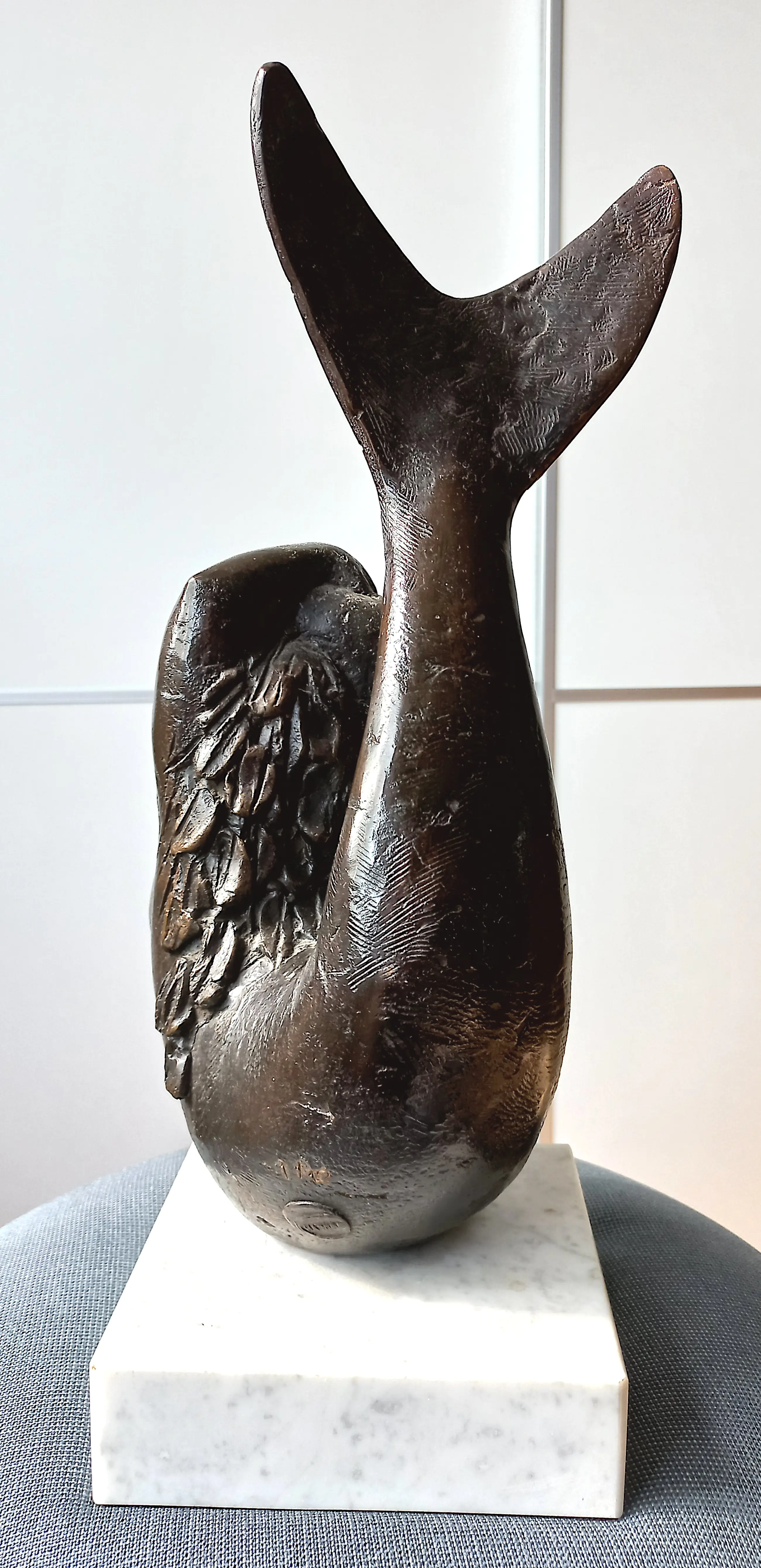 Mooie, karakteristieke sculptuur van Evert den Hartog. Bronzen beeld op marmeren voet, op het brons gestempeld en genummerd (1/12). Totaalgewicht rond de 5kg. In zeer goede conditie.