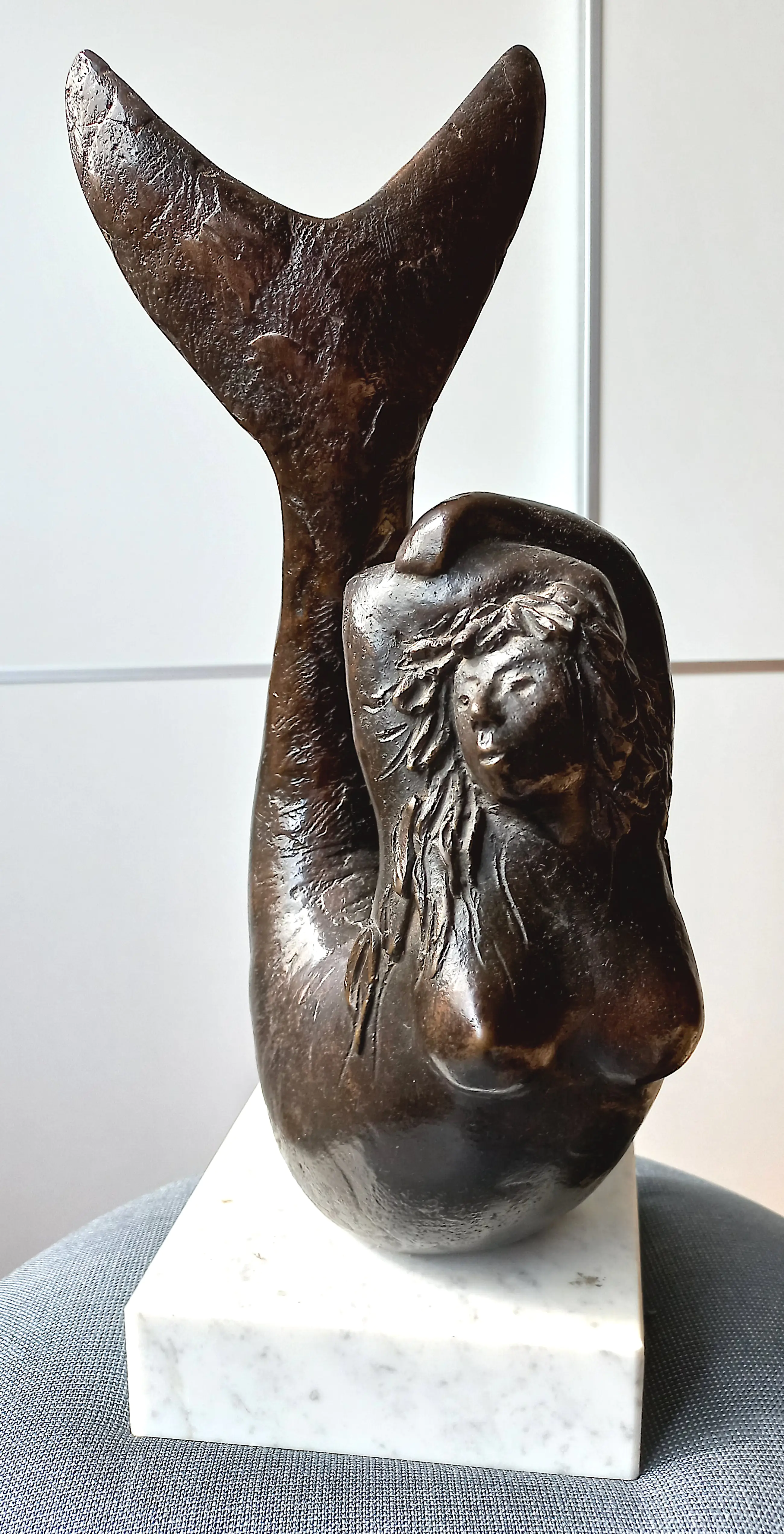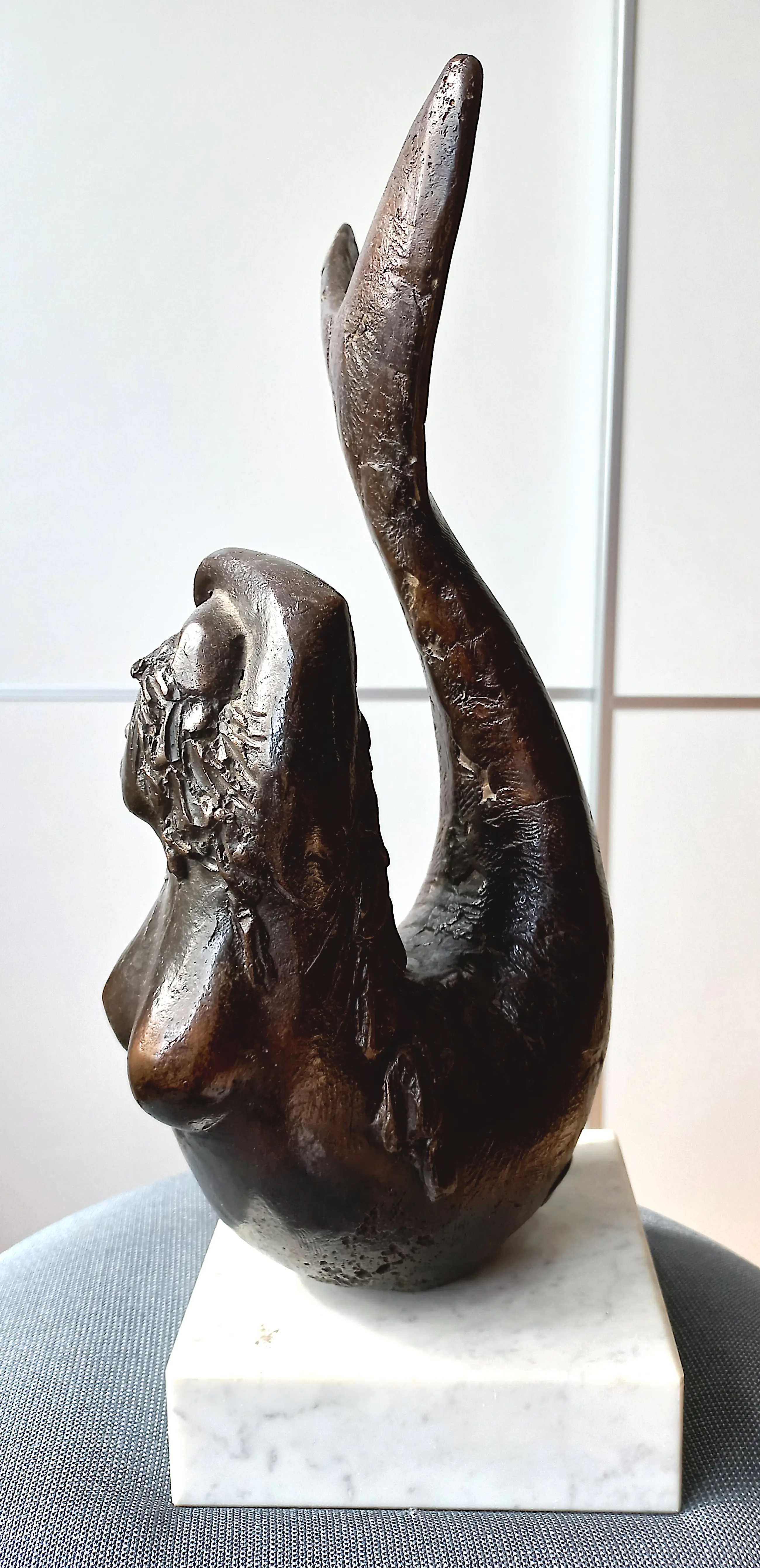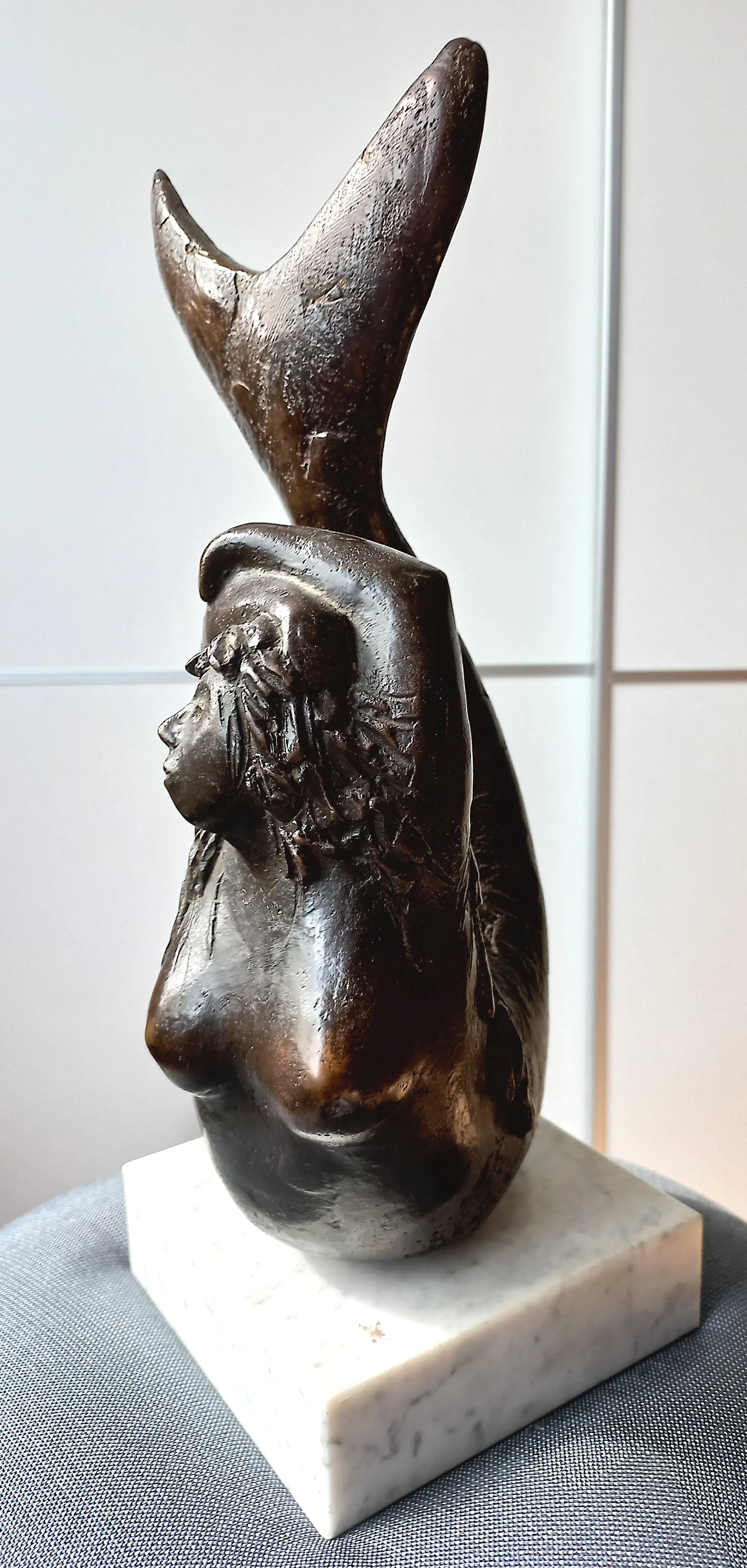 Afmetingen sculptuur: 32cm hoog x 16cm breed x 16cm diep Afmetingen sokkel: 4cm hoog x 13cm breed x 13cm diep