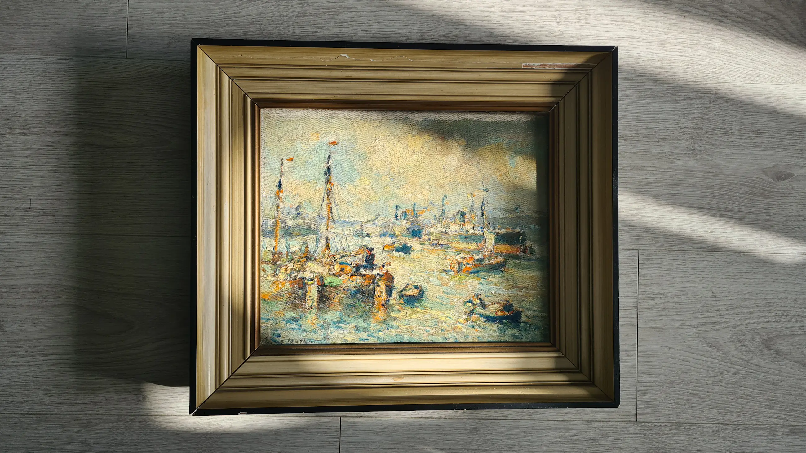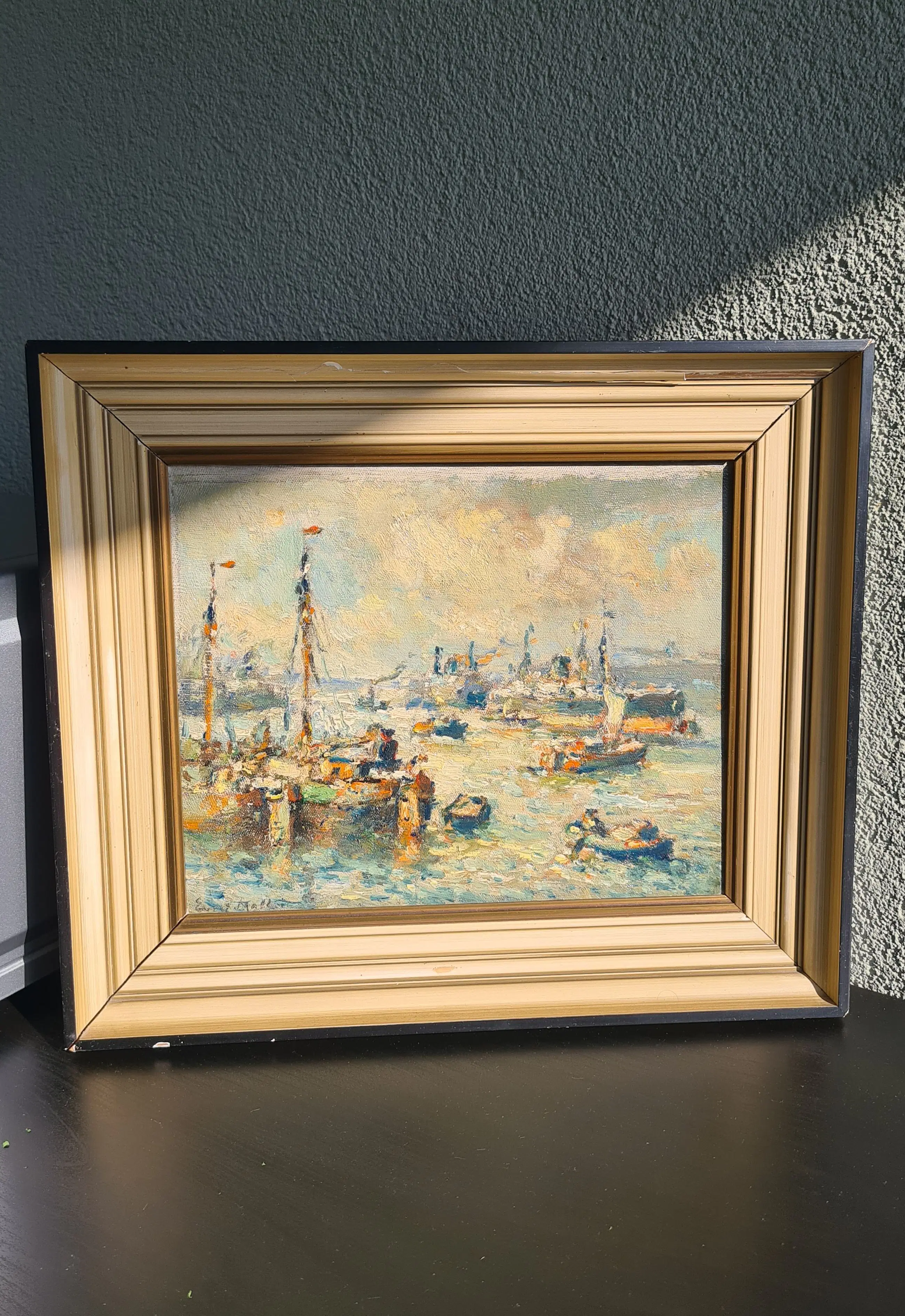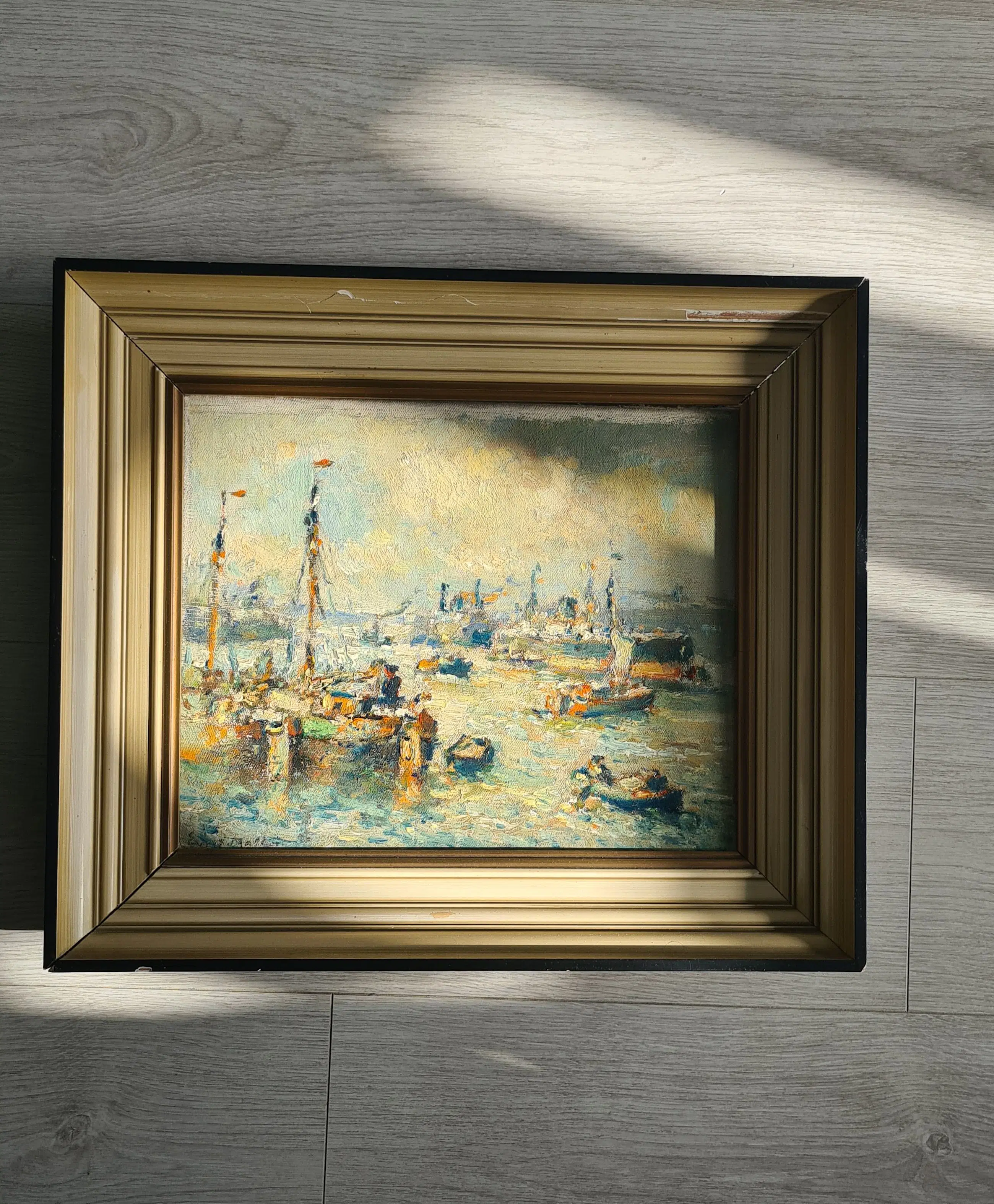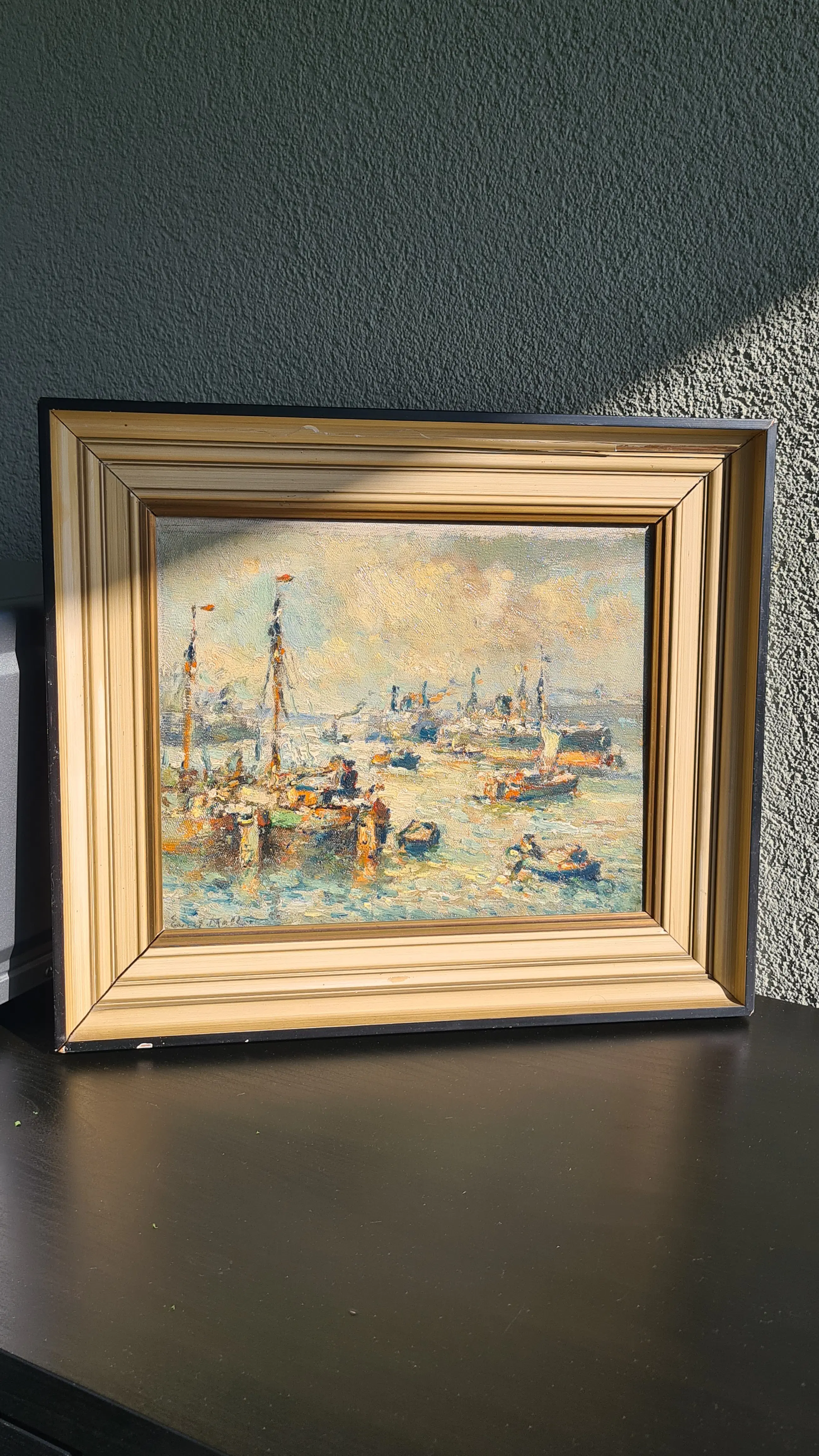 | Schilderij in zeer goede staat. Geen zichtbare beschadigingen aan het doek/paneel of verflaag. Lijst heeft duidelijke gebruikssporen en kleine beschadigingen (zie foto’s). | |||||||||||