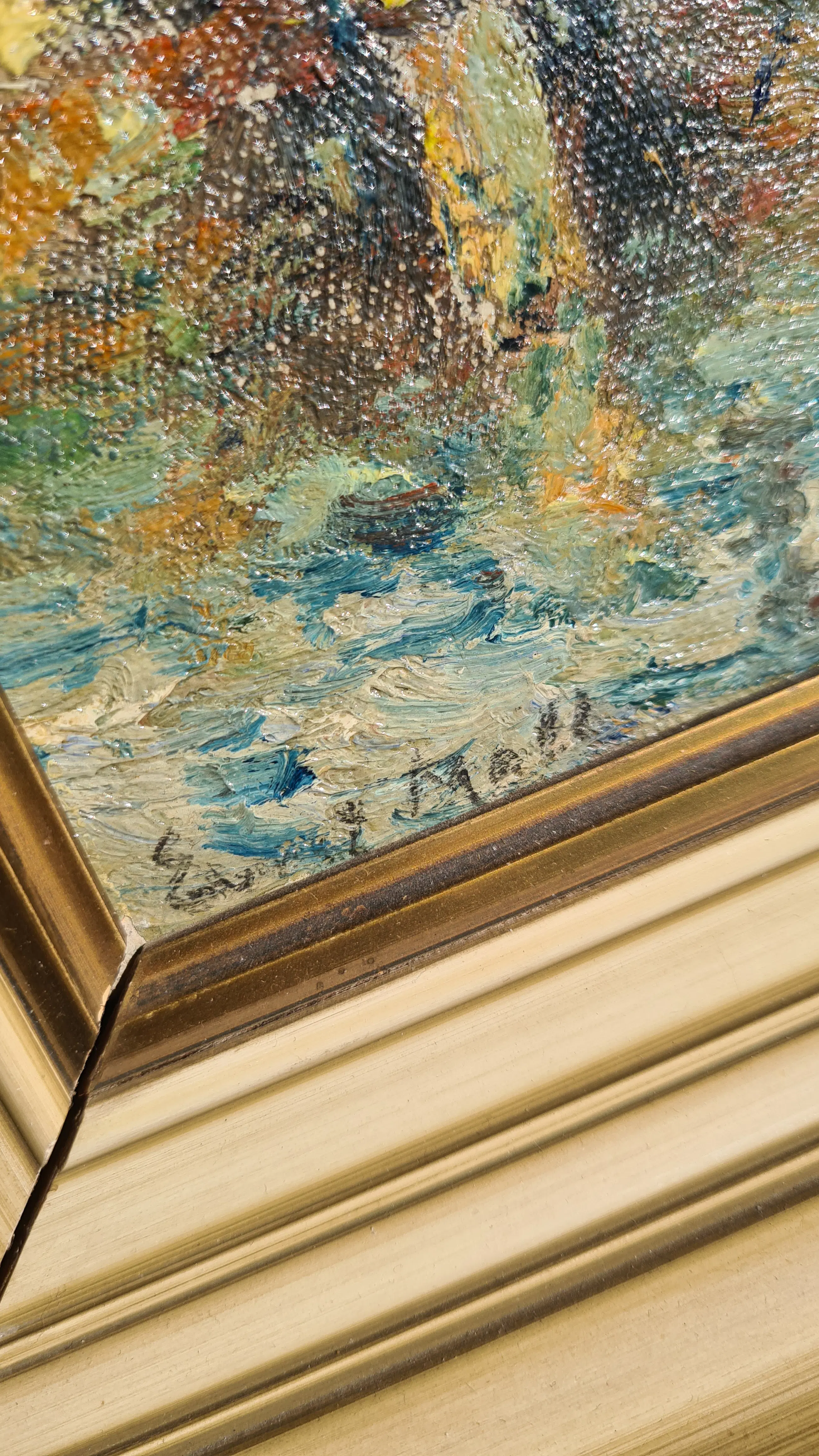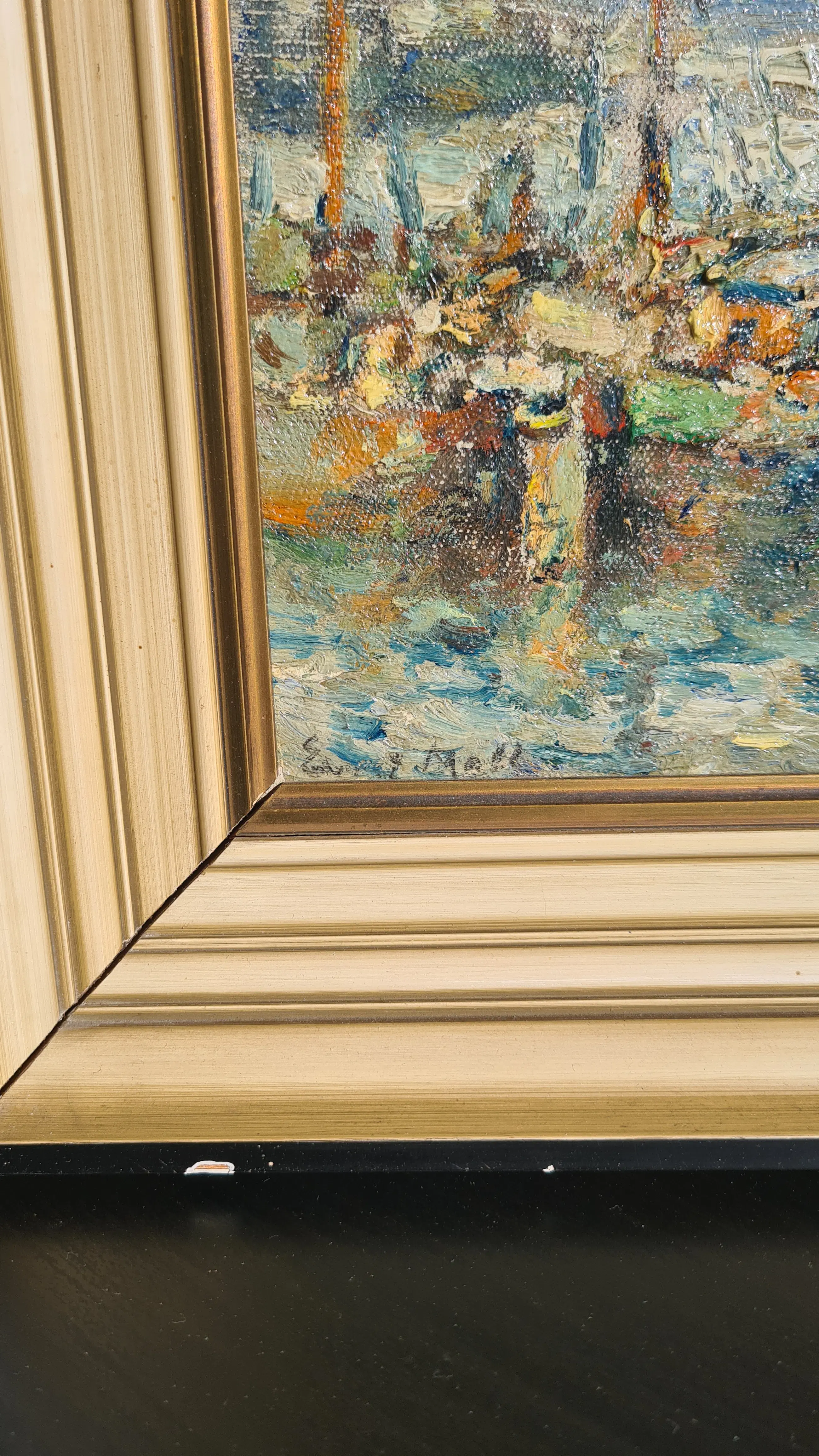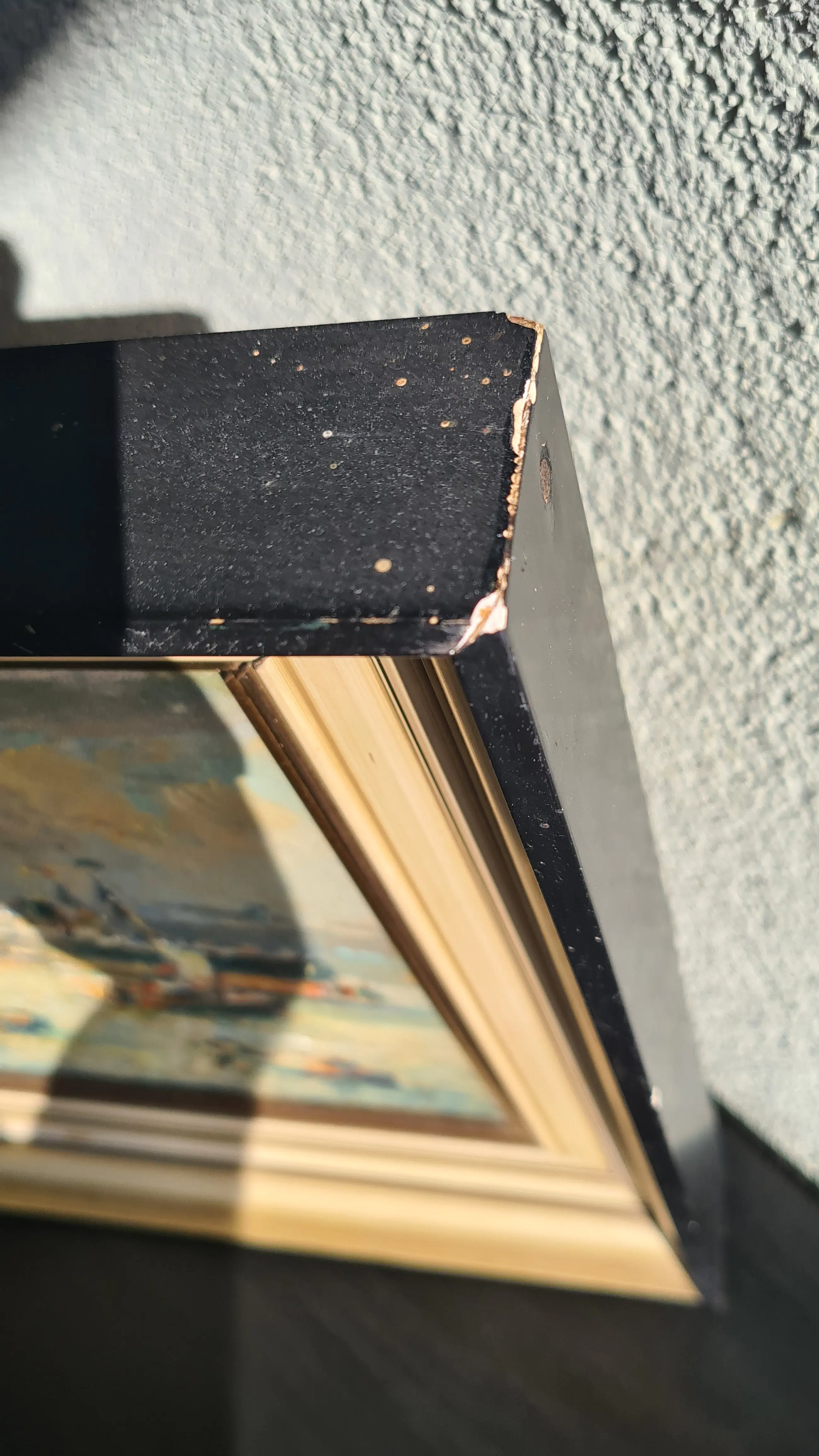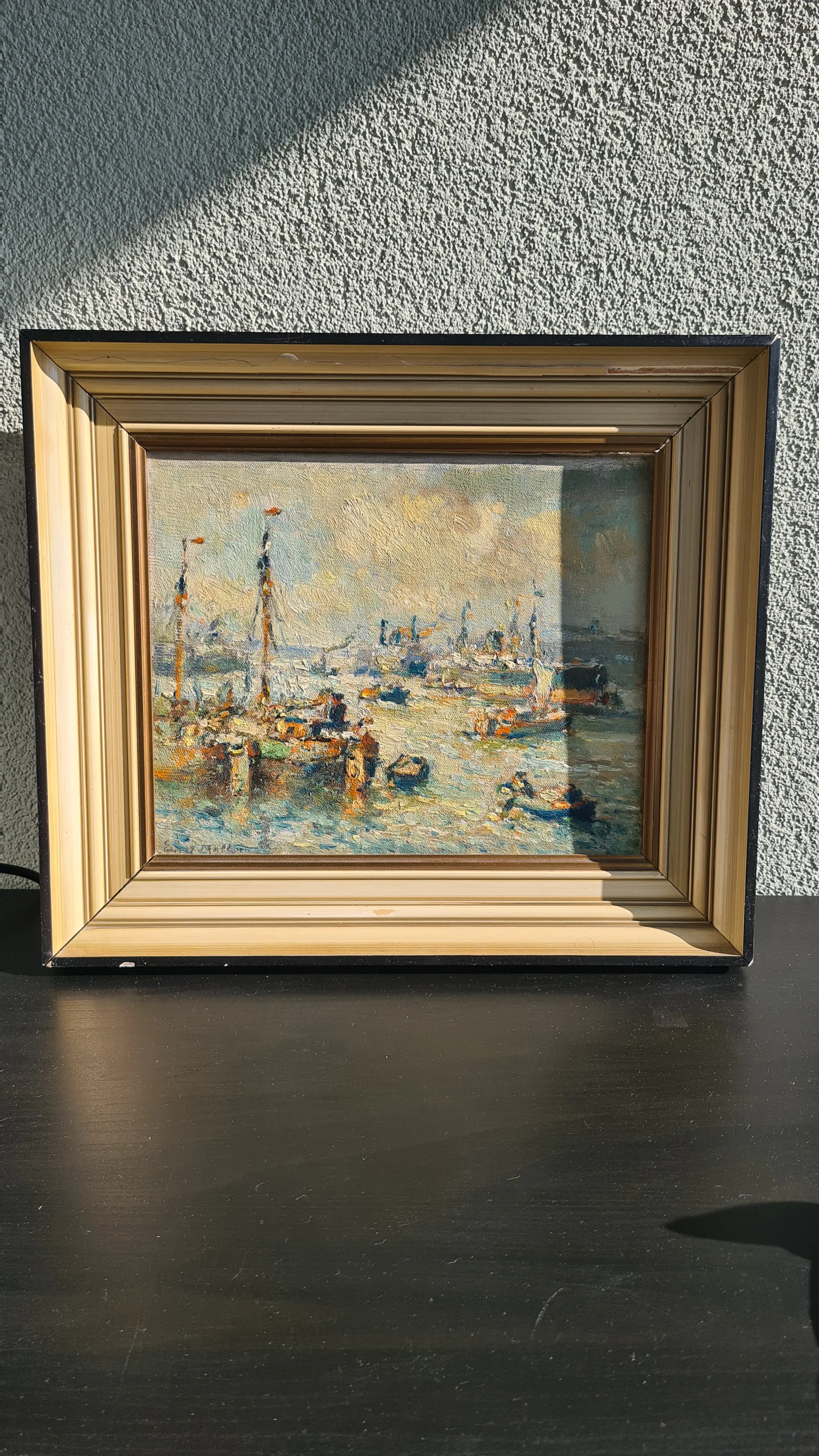 | Schilderij in zeer goede staat. Geen zichtbare beschadigingen aan het doek/paneel of verflaag. Lijst heeft duidelijke gebruikssporen en kleine beschadigingen (zie foto’s). | |||||||||||