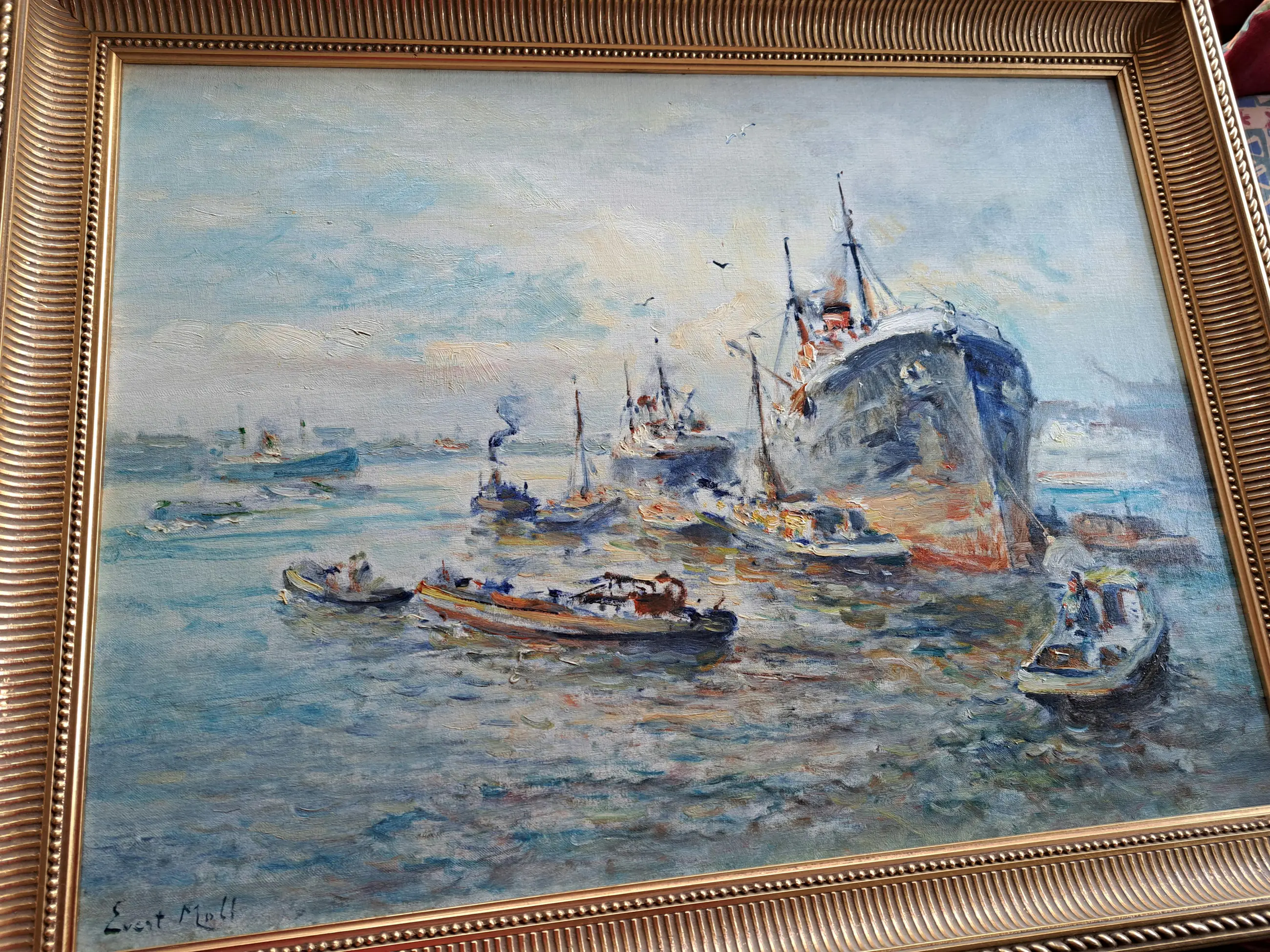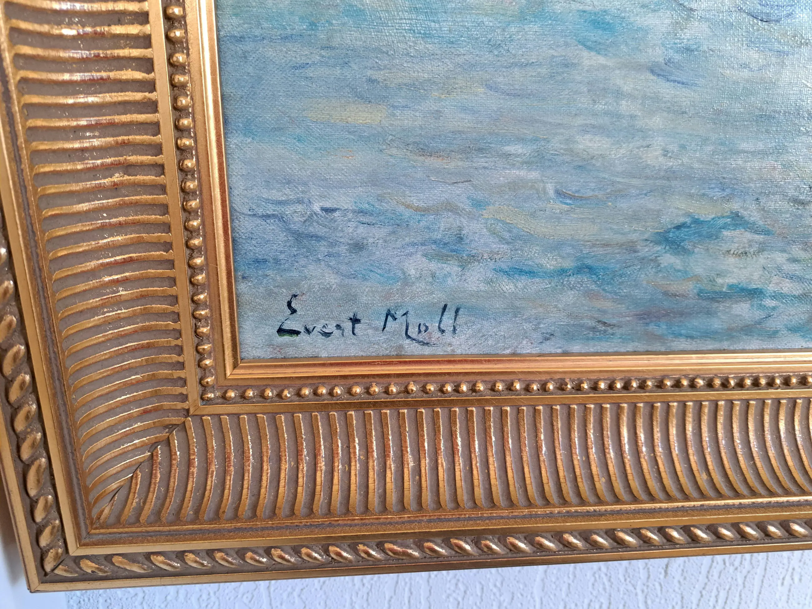 Evert Moll (1878-1955) is vooral bekend geworden met zijn voorstellingen van de Rotterdamse haven en de scheepvaart op de Nieuwe Maas die hij in de jaren 20 en 30 van de vorige eeuw schilderde. Begonnen rond 1900 als navolger van de Haagse School, verlegde Evert Moll zijn werkterrein al spoedig naar de kades en bruggen van de Rotterdam. Ook de dynamiek van het havenbedrijf vormde voor de schilder een bron van inspiratie. Daarnaast blonk hij uit in tal van andere genres. Zo schilderde hij ook stadsgezichten, landschappen en kleurige, gedurfde bloemstillevens. Evert Moll was autodidact, maar kreeg raadgevingen van Willem Maris en Willem Roelofs.