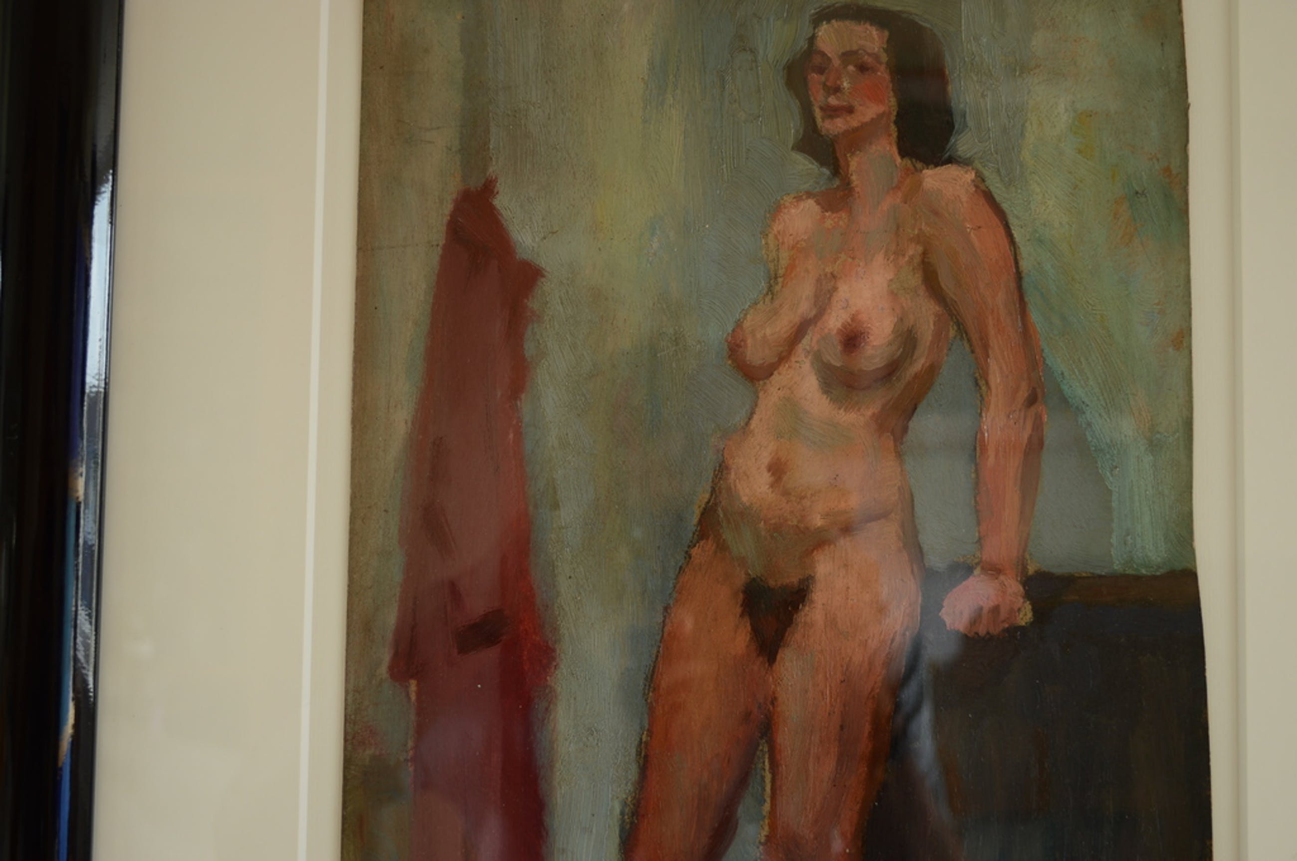 Staand naakt van Evert Pieters, olie / board 27 x 41 - ingelijst met vrij-houdend passe-partout in houten lak-lijst formaat 50 x 65 in goede staat.