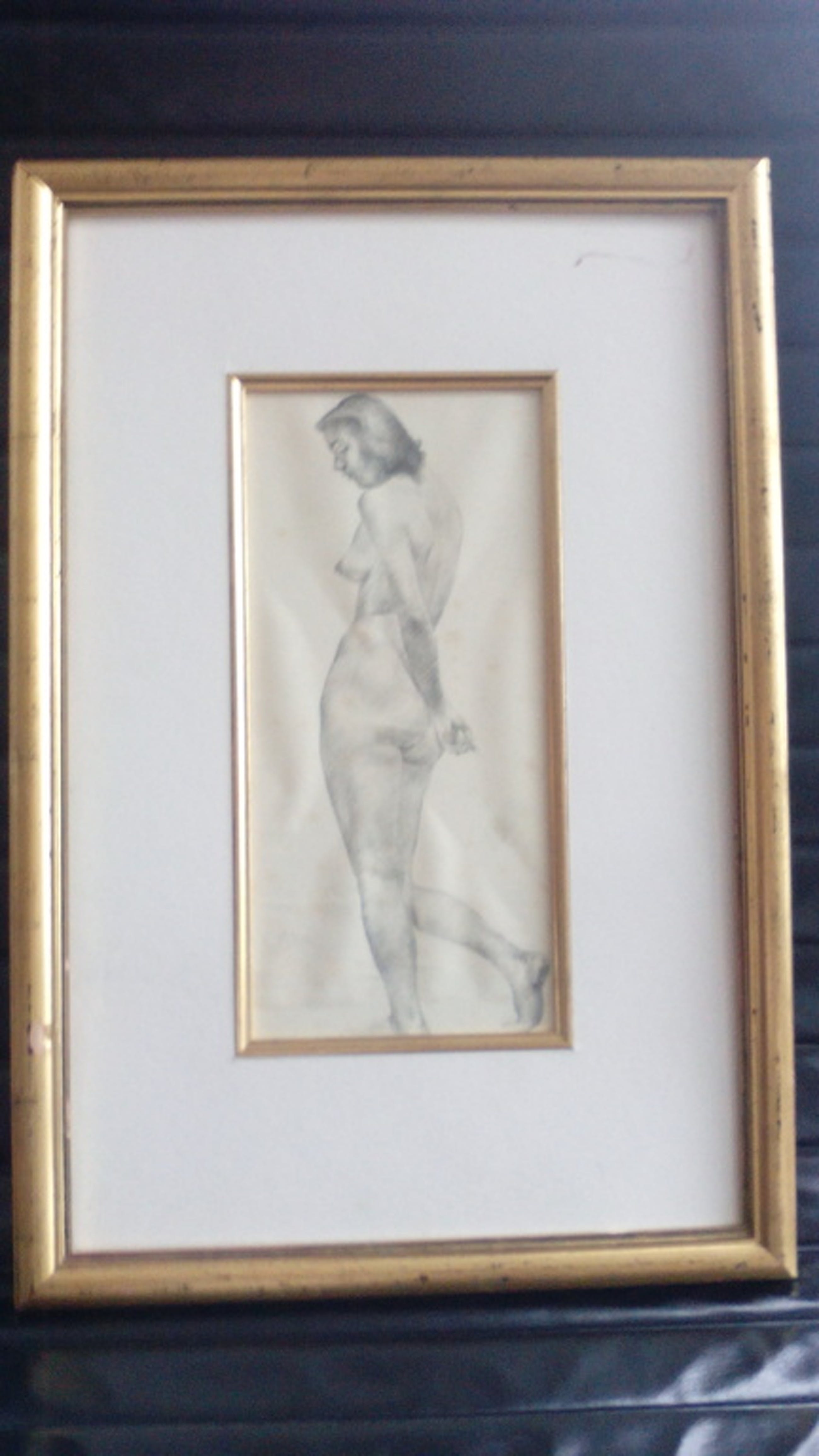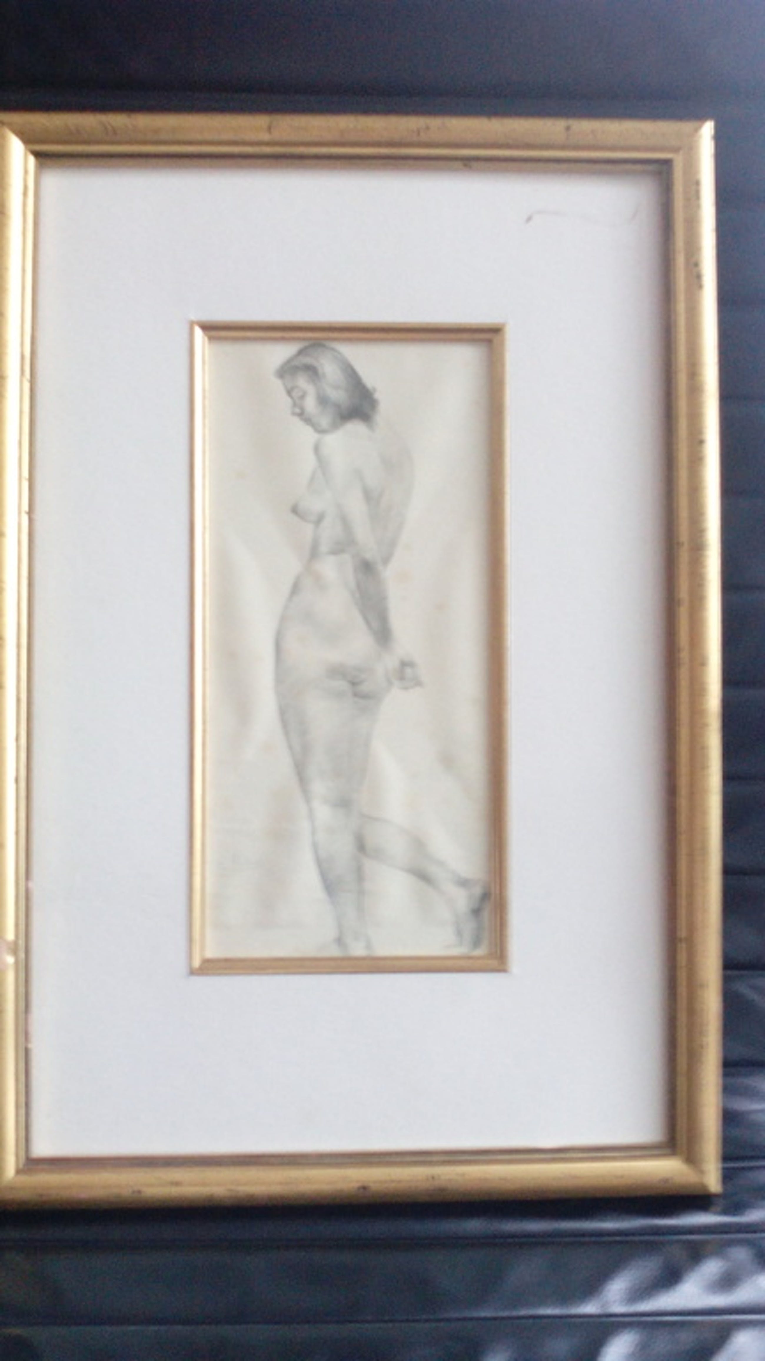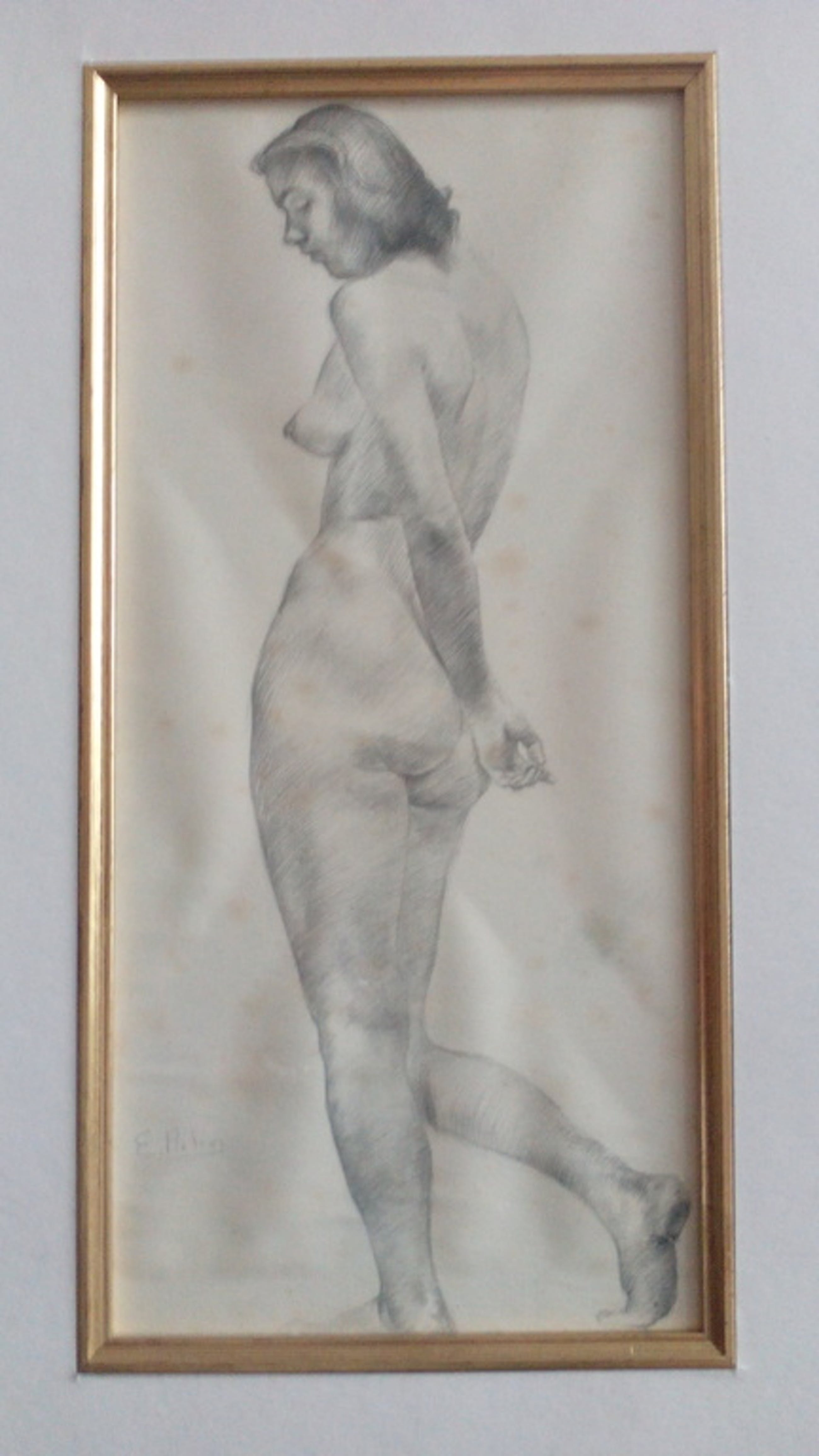Zeer mooie en verfijnde potlood tekening van een vrouwelijk naaktmodel.