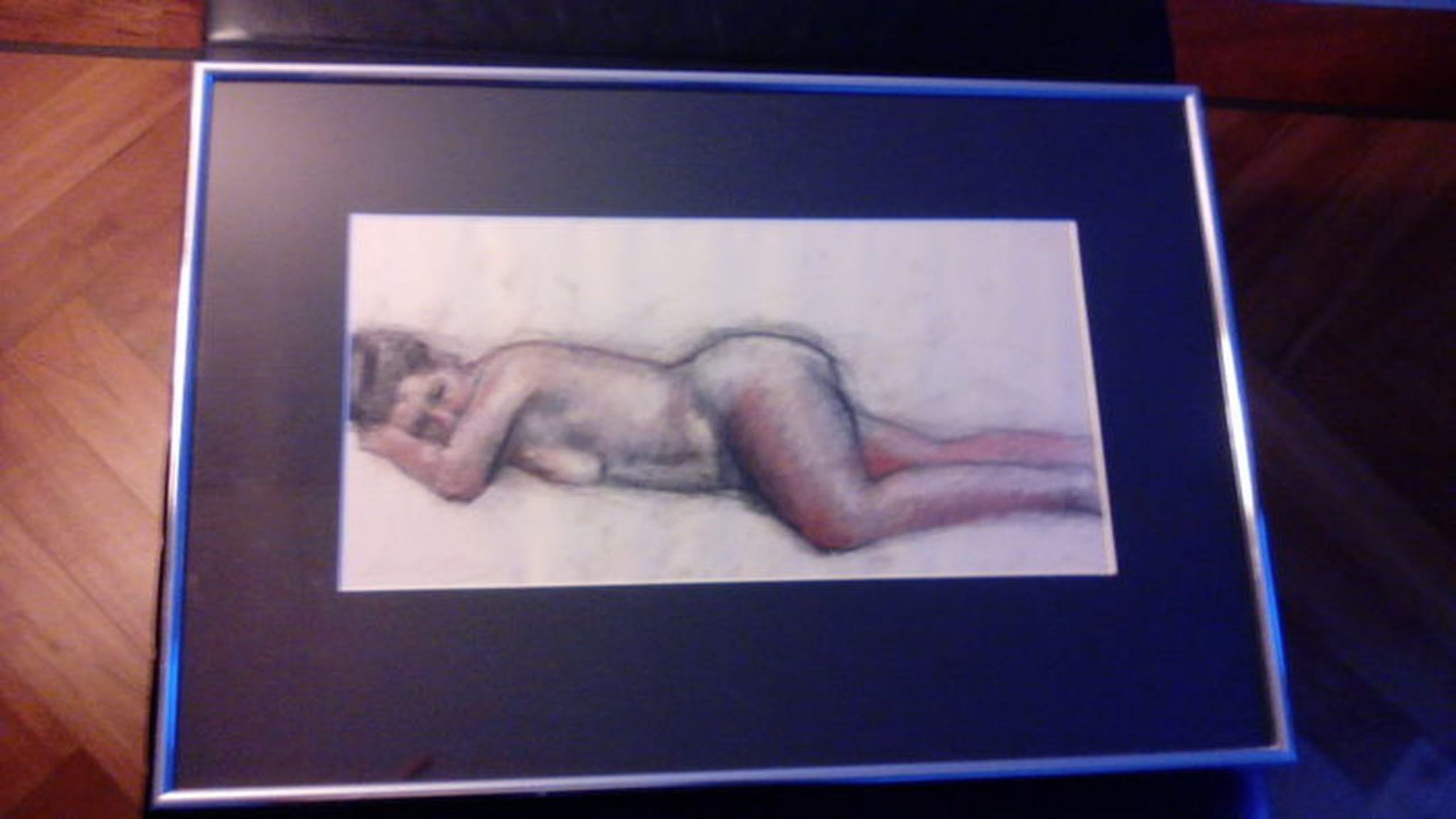 'Liggend naakt' houtskool / potloodtekening op papier door Evert Pieters 18x36 cm , jaartal is niet bekend het werk is netjes ingelijst Handgesigneerd