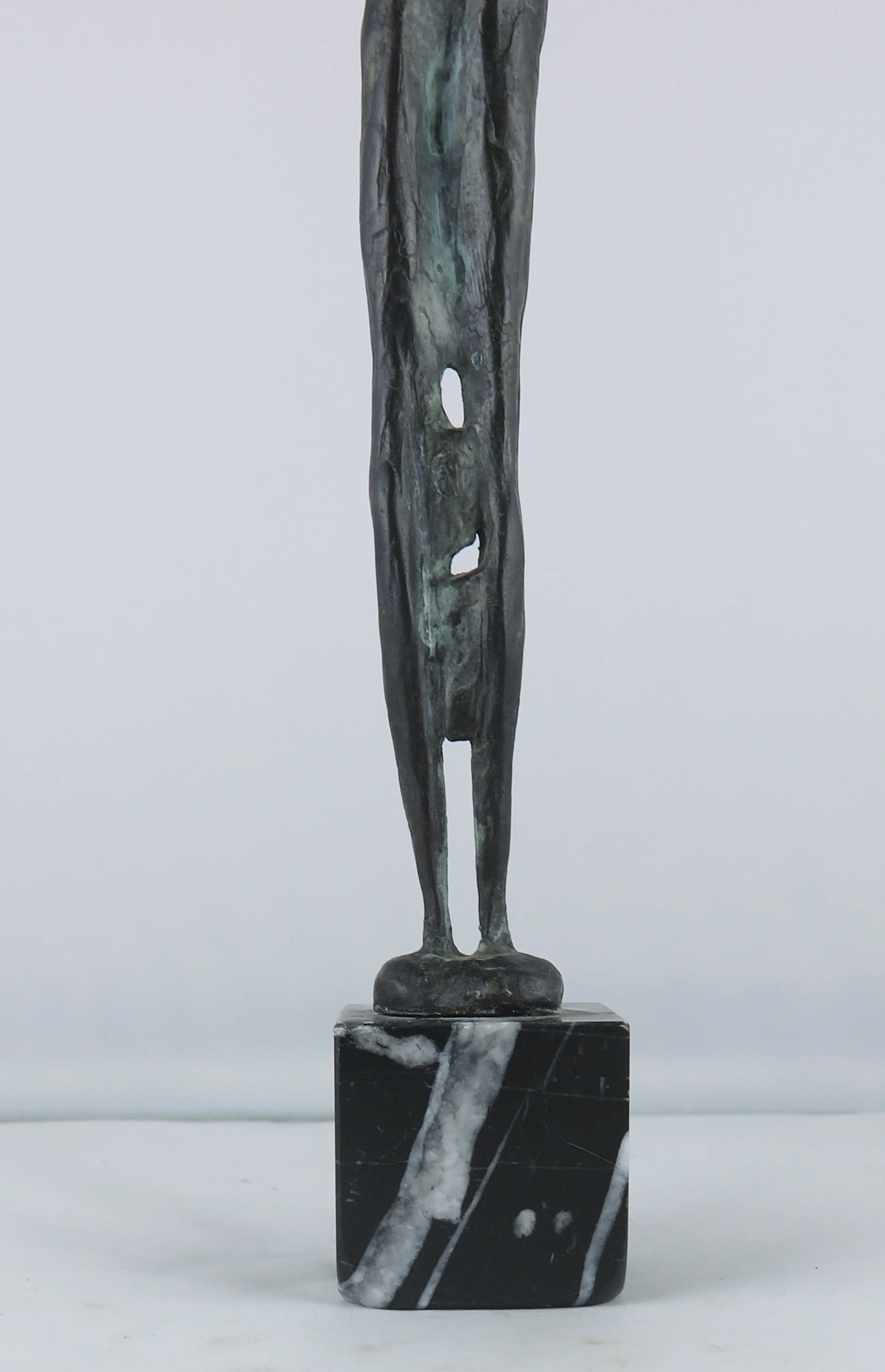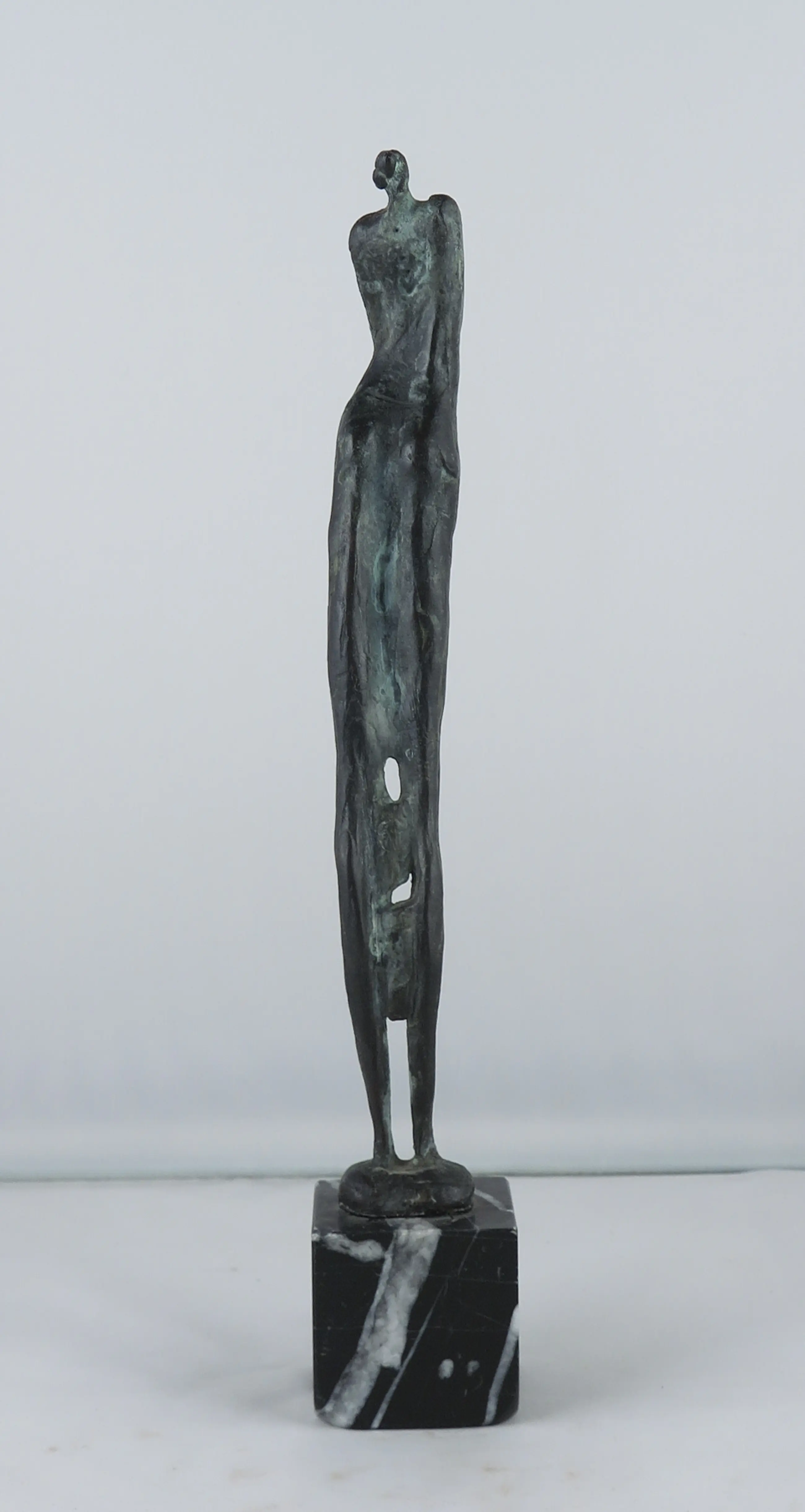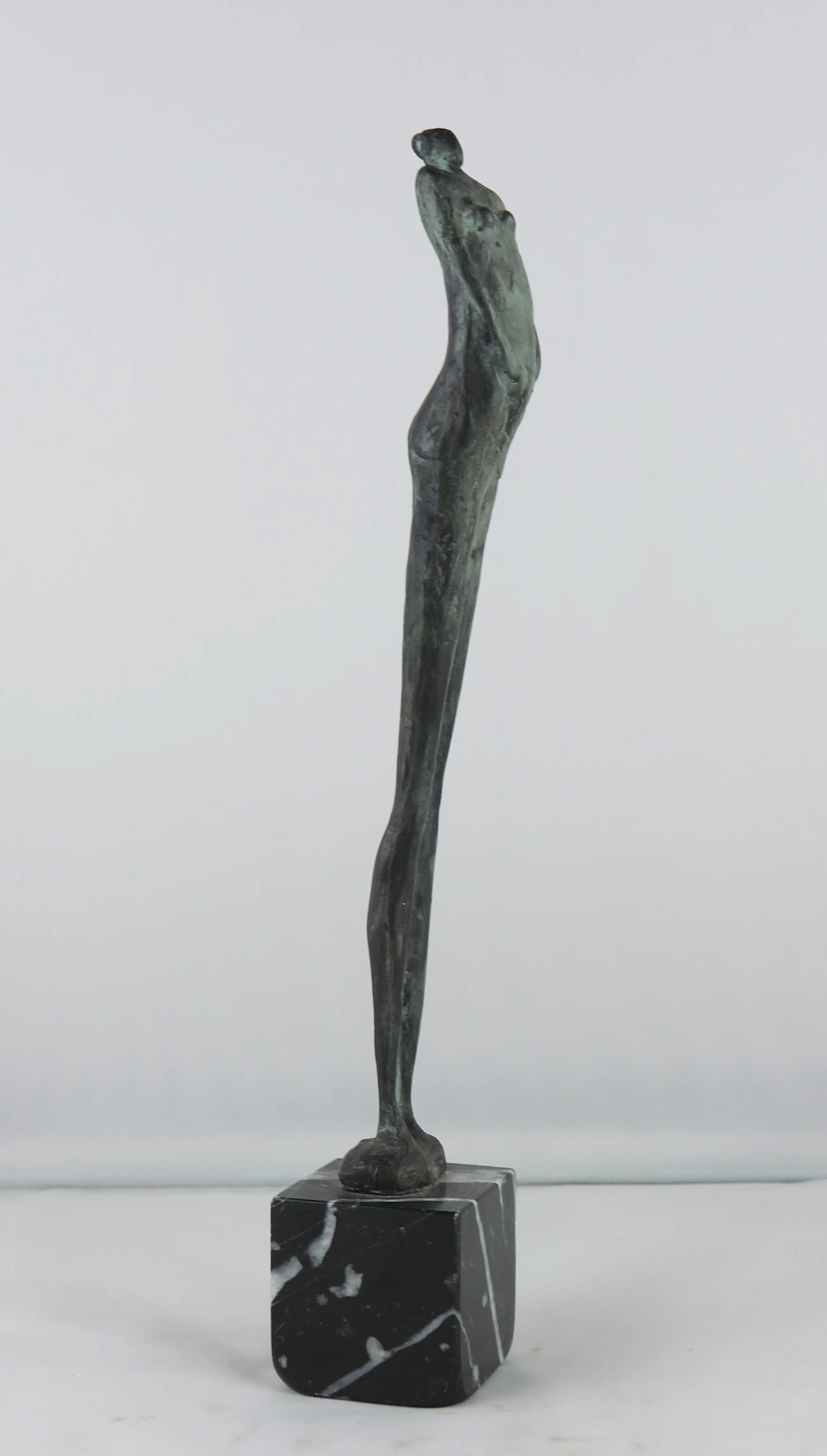 Het brons is in zeer goede staat. Het beeld zit iets los van de voet. De marmeren voet heeft op de hoekjes wat lichte beschadigingen. | |||||||||