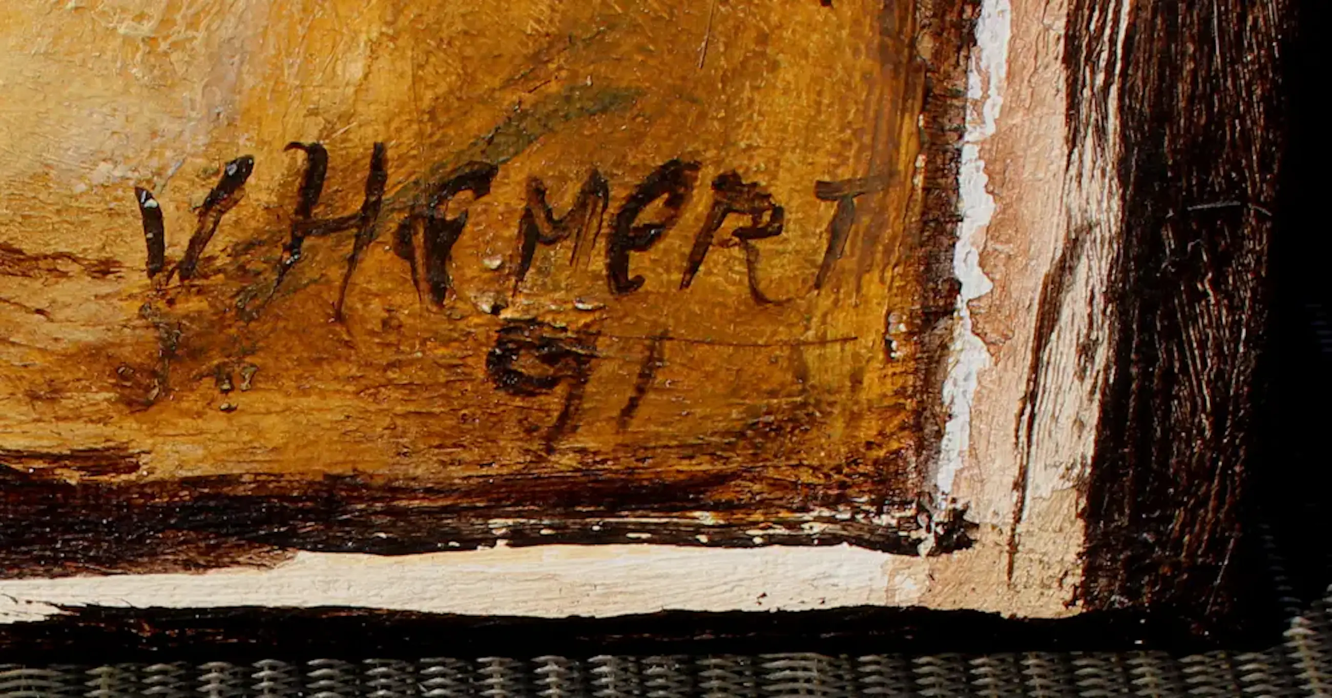 Lijsten: Beschadigingen aan lijsten worden niet beschreven. Indien een werk achter glas is ingelijsten het glas is kapot, zal dit wel vermeld worden. Bij foto's van ingelijste werken kan spiegeling zichtbaar zijn.