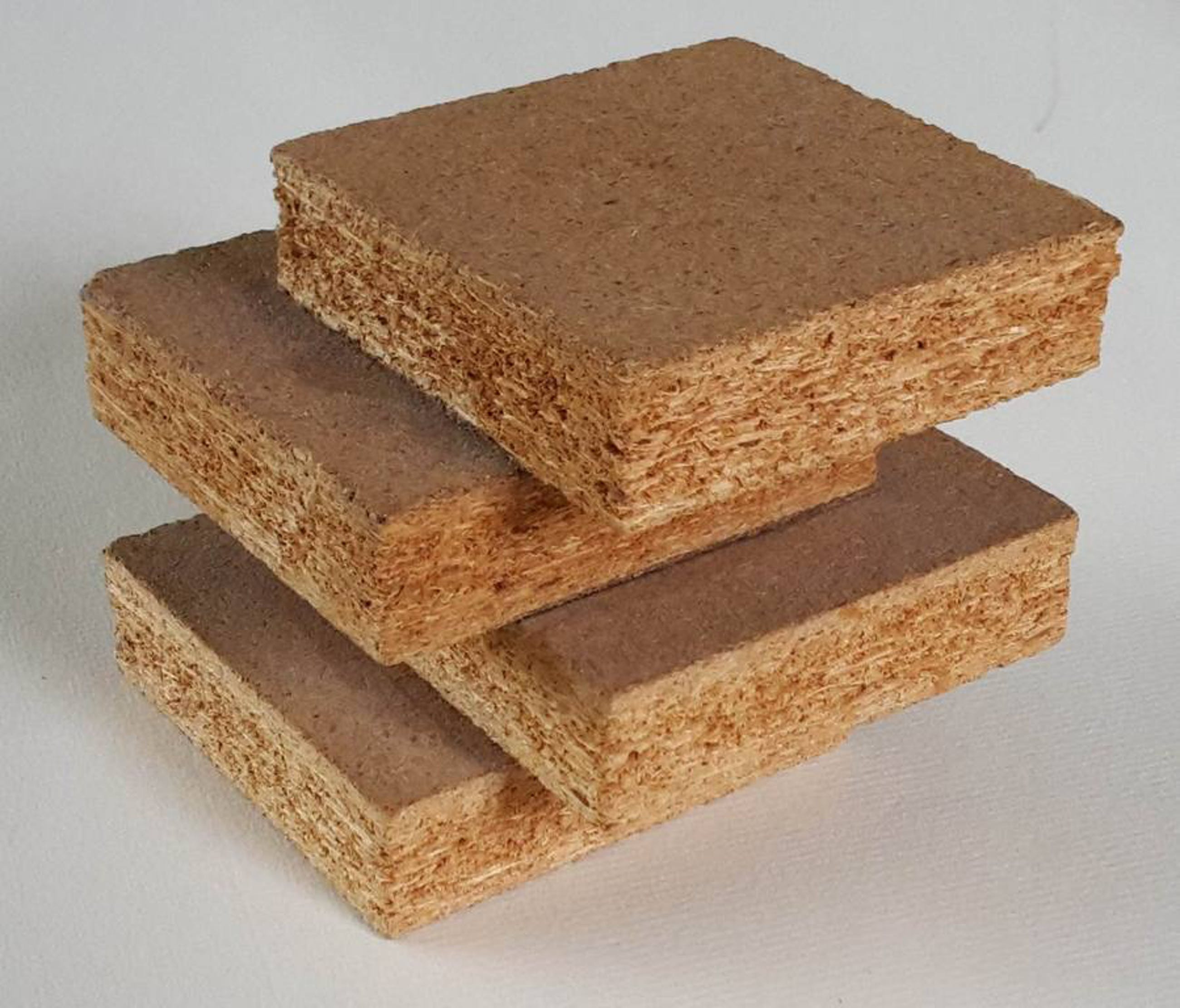 4 op elkaar geplakte spaanplaat blokjes van 7,5 x 7,5; hoogte 6,5 cm; 1973, gesigneerd aan de onderzijde met opdracht