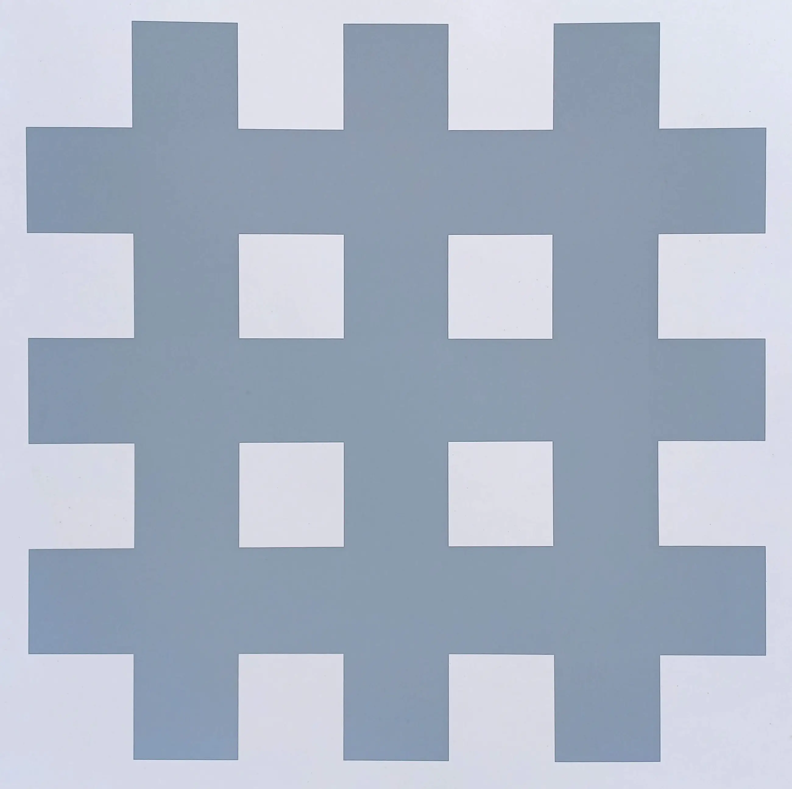 Deze zeefdruk G 1972 -75 serie 147 no. 3 bestaat uit 6 grijze stroken volgens een reeks van 5 hout-reliëfs daterend uit 1972 en ieder van het formaat 180 x 180 cm. Ondanks het feit dat de dikte van het hout ontbreekt, blijft de wisselwerking tussen de grijzen stroken en de witte achtergrond, tussen de gesloten vierkanten en de open vierkanten hetzelfde. Indertijd hield Hilgemann zich vooral bezig met kontroleerbare strukturen op de basis van een visuele grammatika, die de toeschouwer direkt stap voor stap kon volgen.