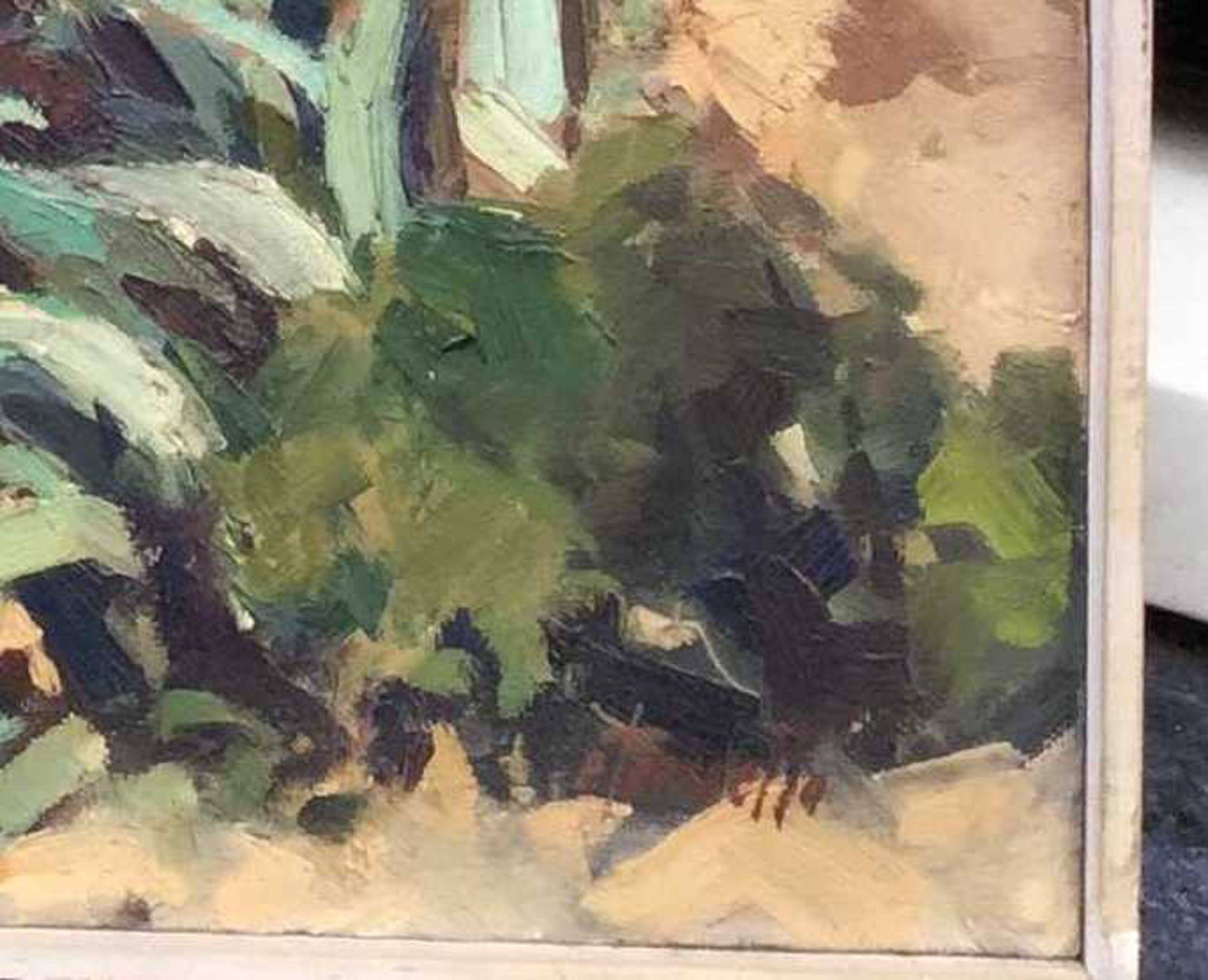 | Doek bevat vergeelde vernis, oppervlaktevuil, verfverlies, craquelures, twee gaatjes in het doek, doek is getordeerd, lijst is eenvoudig en bevat oppervlaktevuil en slijtschade door de tijd. | |