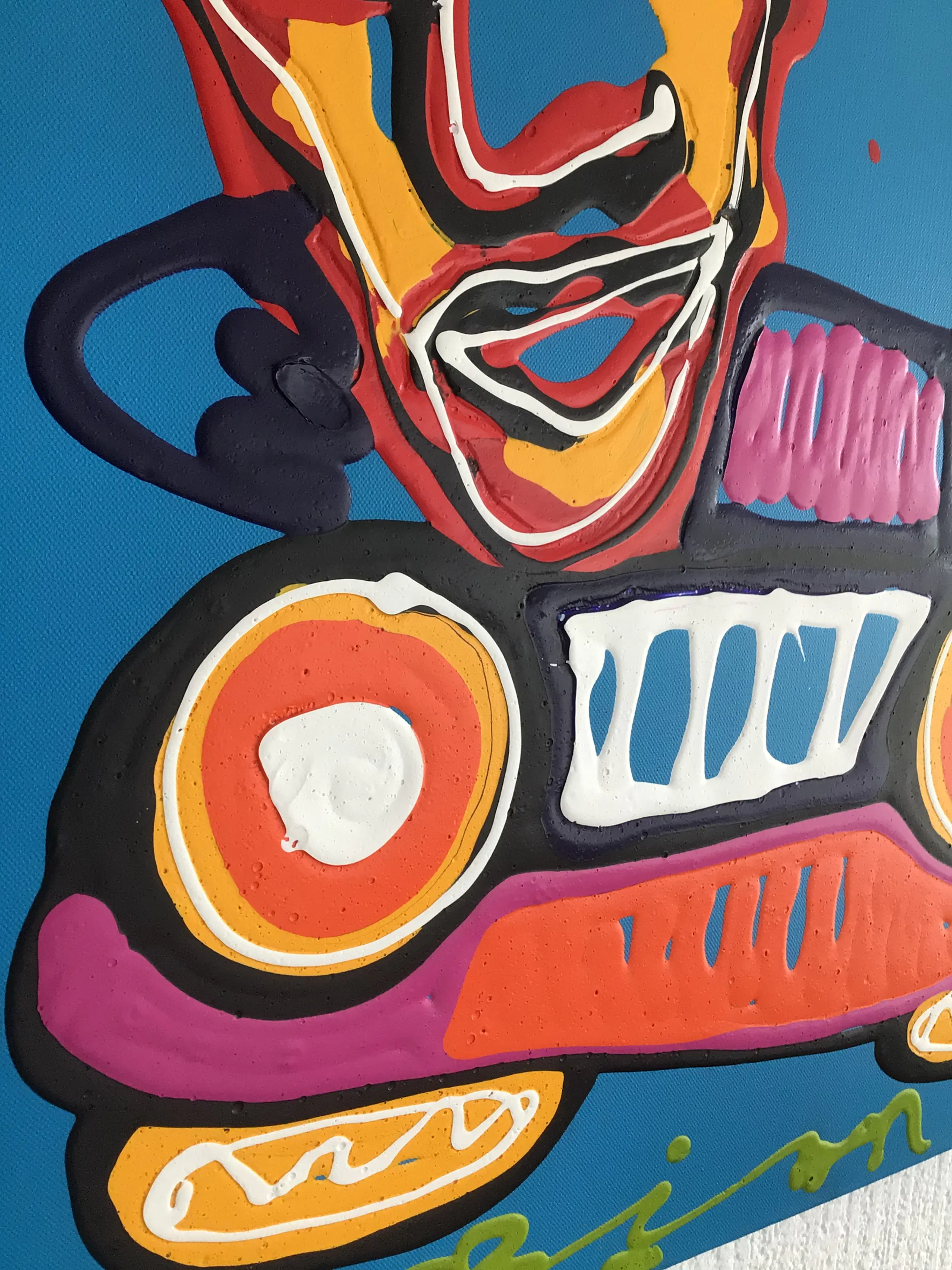 Prachtig origineel Acryl schilderij van Fabian. Leerling van Herman brood geweest. Zit op een houten frame en is 80x 80 cm. Het origineels live nog mooier als opde foto