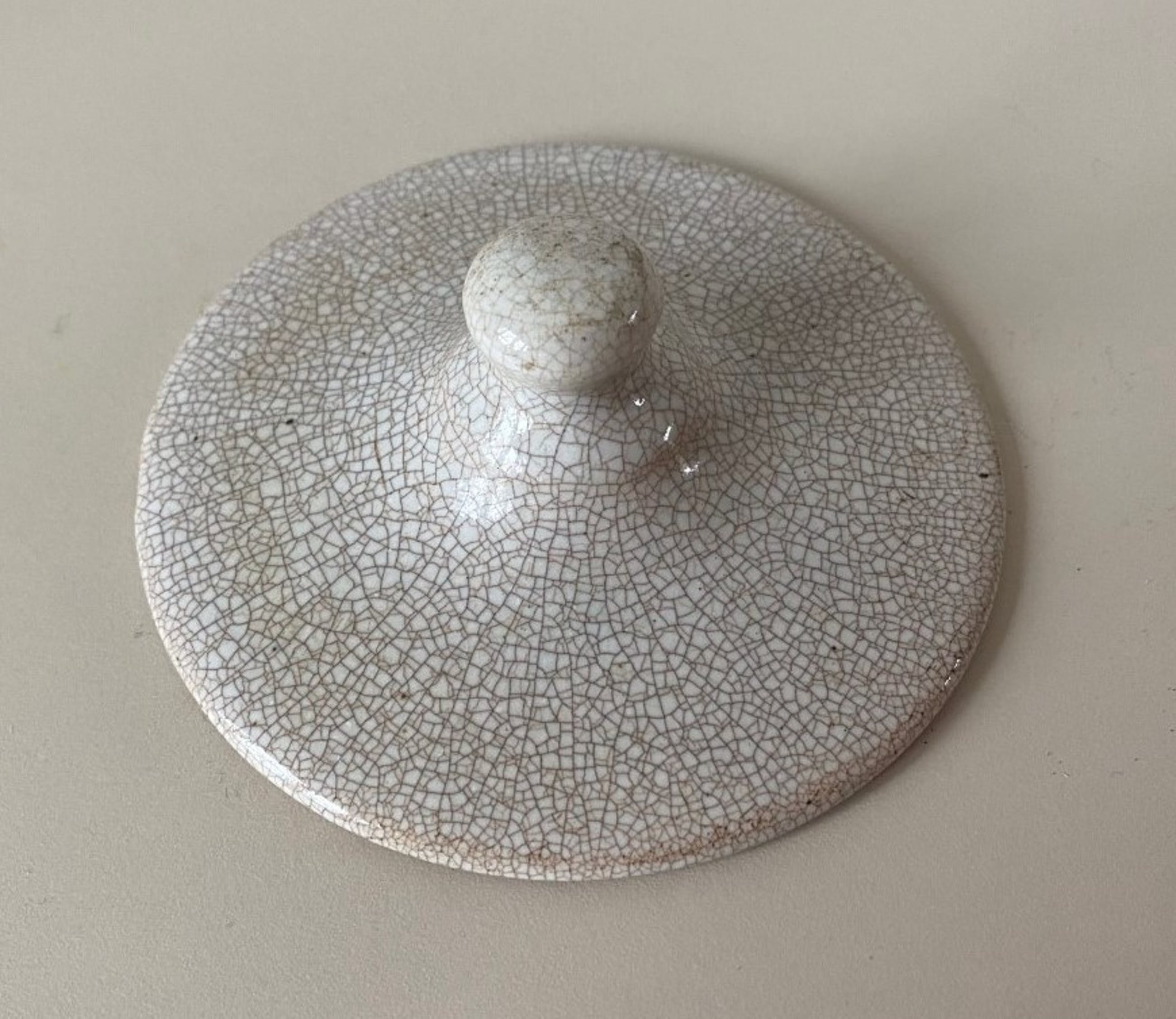 De Cafetierre incluis onderdelen heeft veel craquele, een chipje op de tuit en de deksel om de koffie aan te drukken ook. De suikerpot en het het roomkannetje zijn onbeschadigd