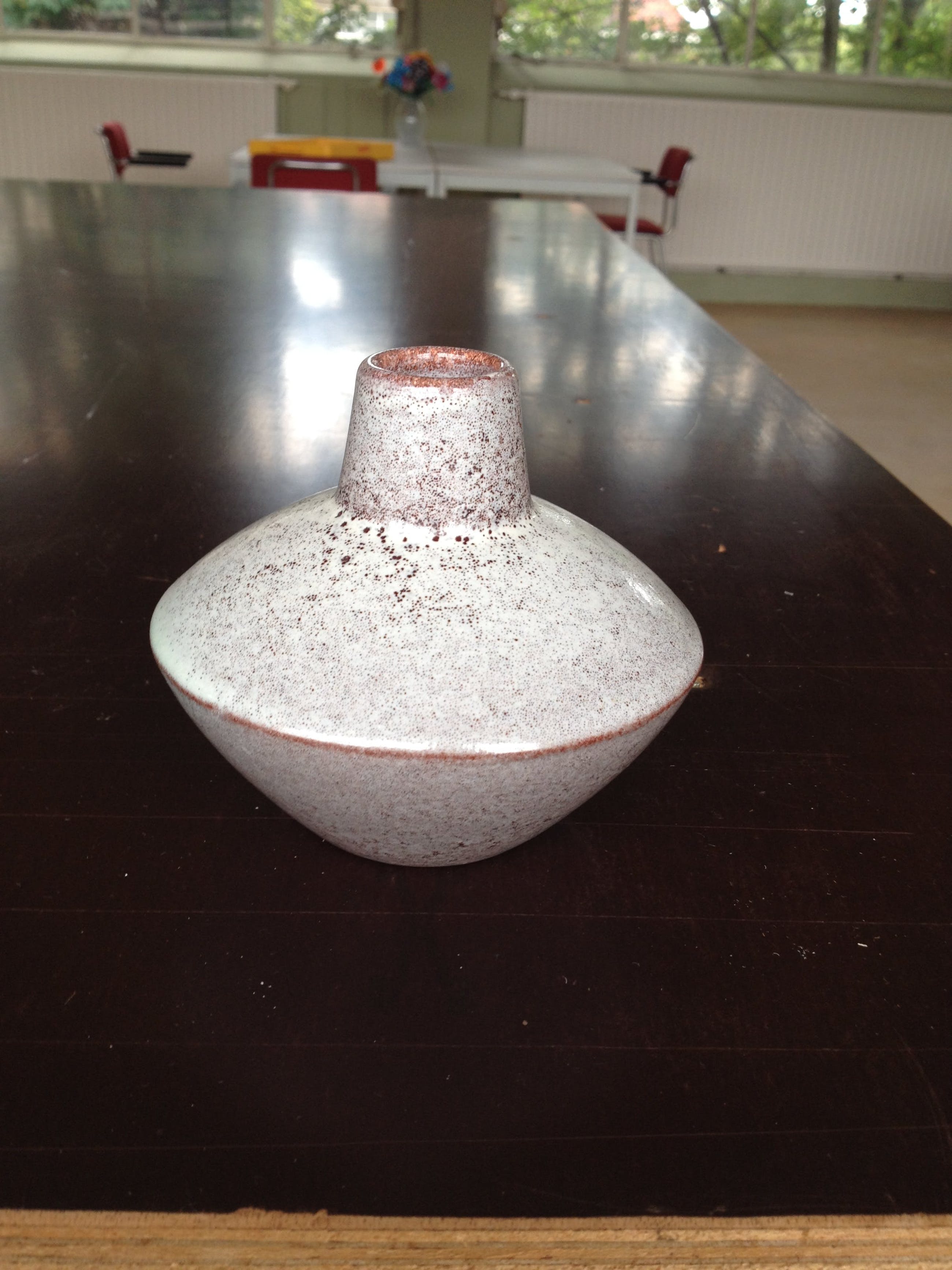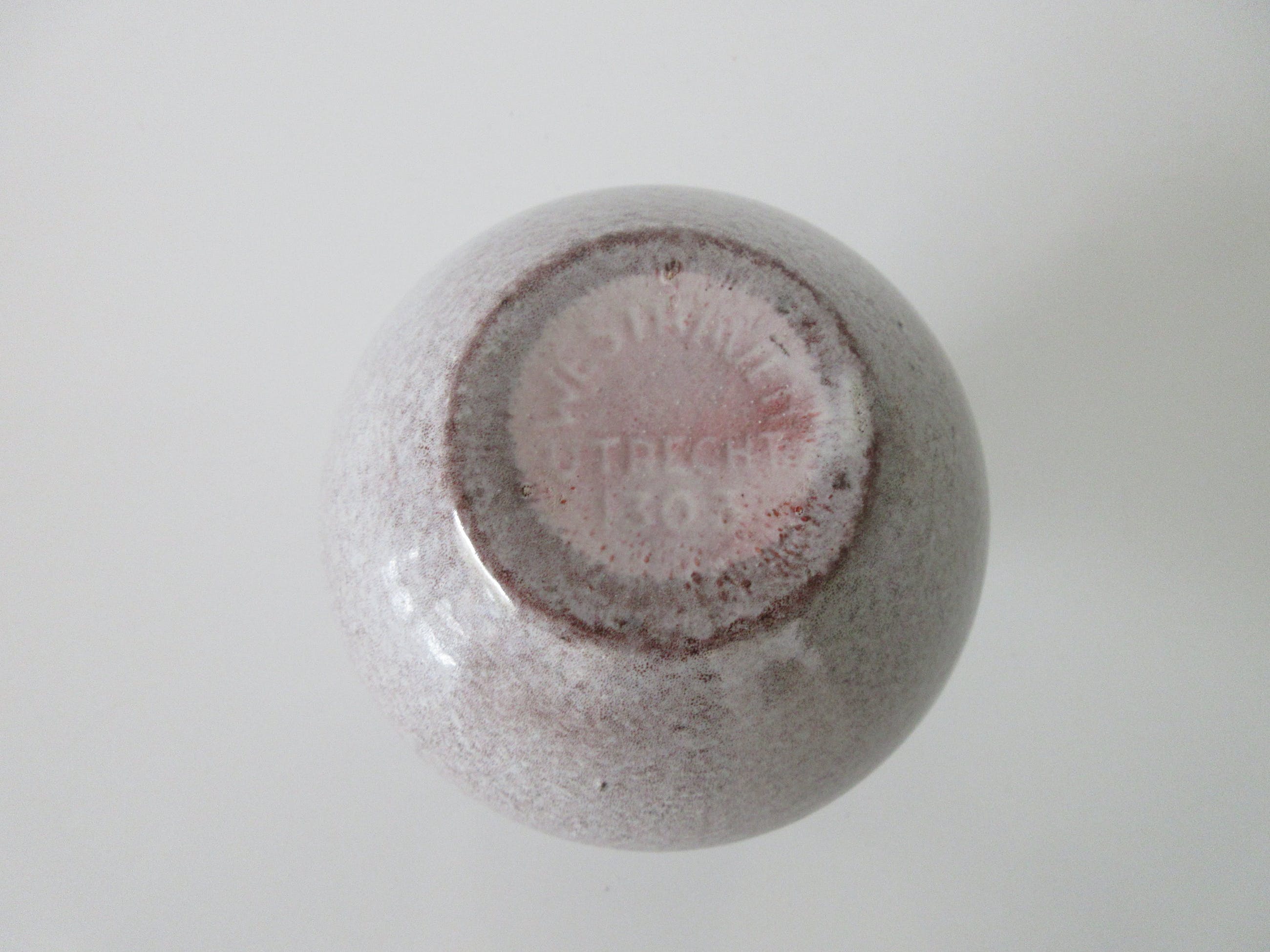 Discusvaasje van Westraven. In prima conditie, heeft aan de zijkant een flinter verder onbeschadigd. Gemerkt en genummerd aan de onderzijde.