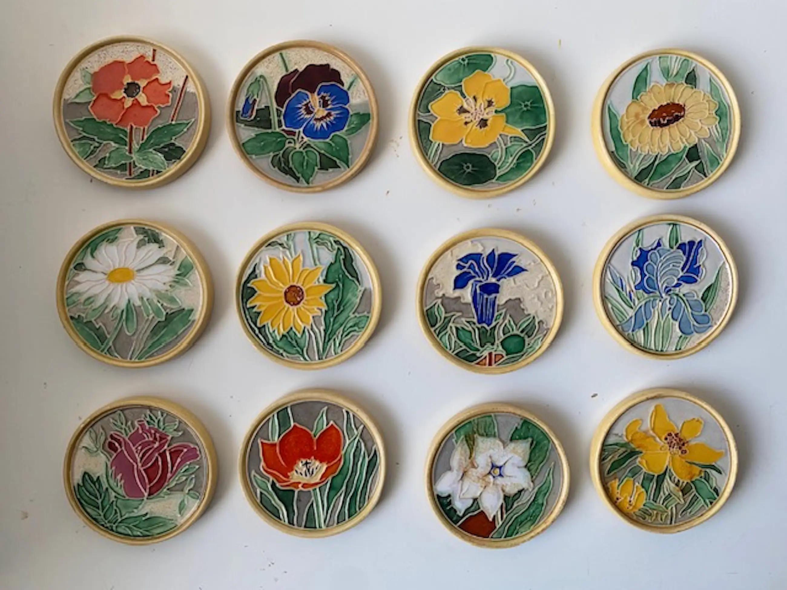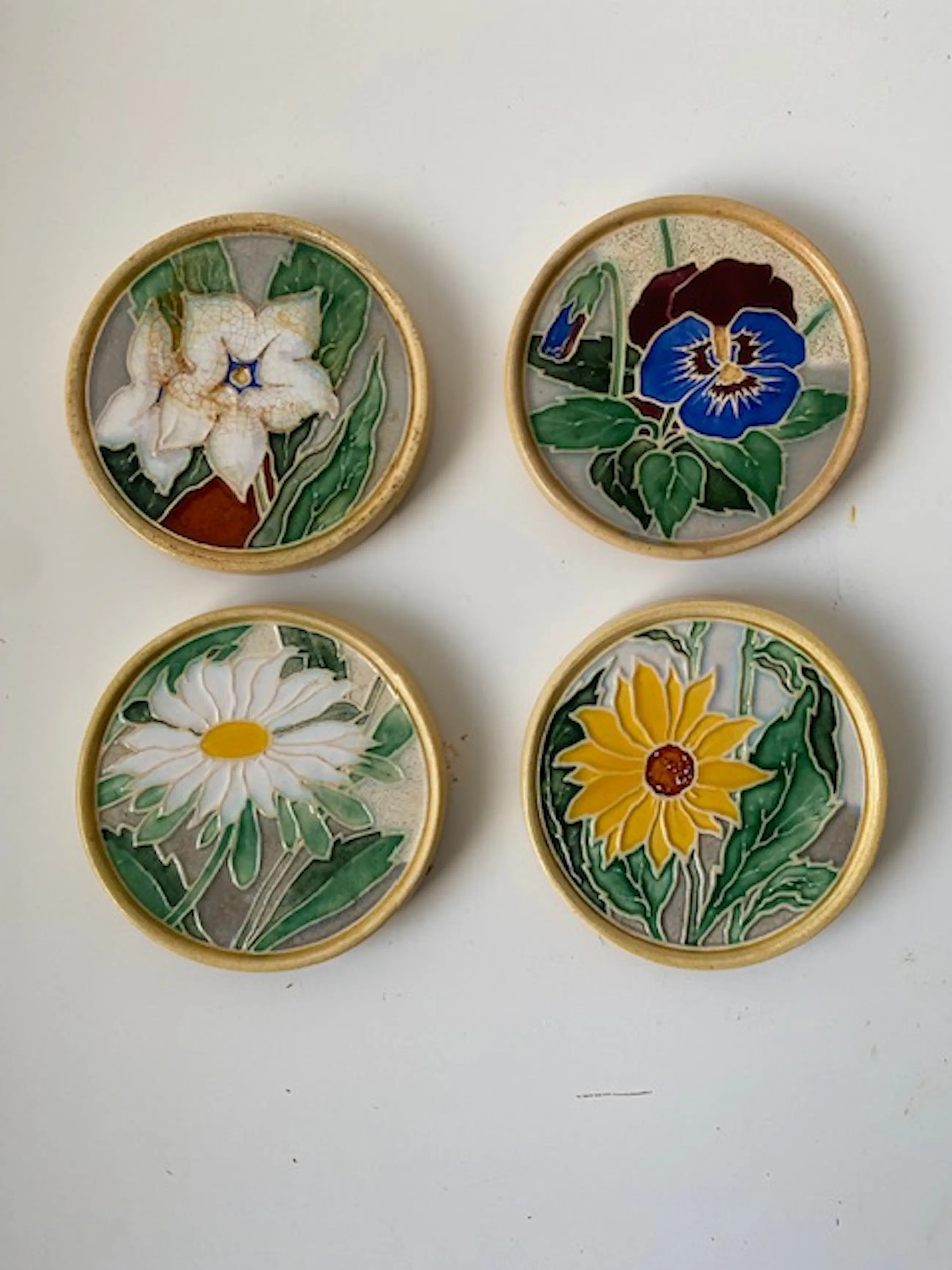 Faience- en Tegelfabriek Westraven - Zeldzaam mooie set polychrome cloisonné onderzetters 1923