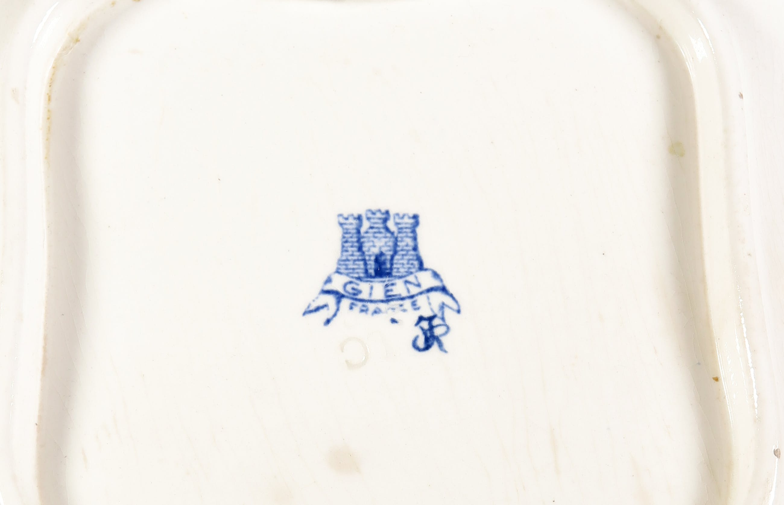 Over het algemeen in goede staat. In de hoek linksonder een barst, met name zichtbaar aan de achterzijde. Tevens sprake van verkleuring onder het glazuur. Het glazuur heeft craquelé. | |||
